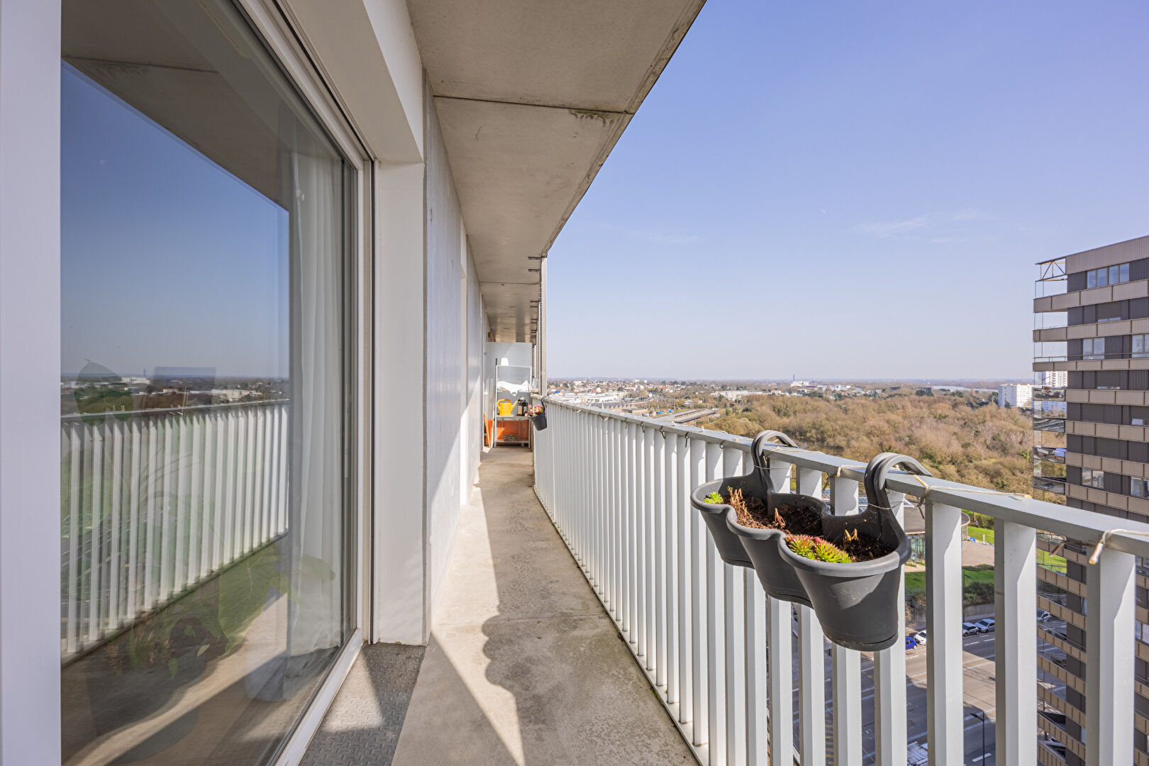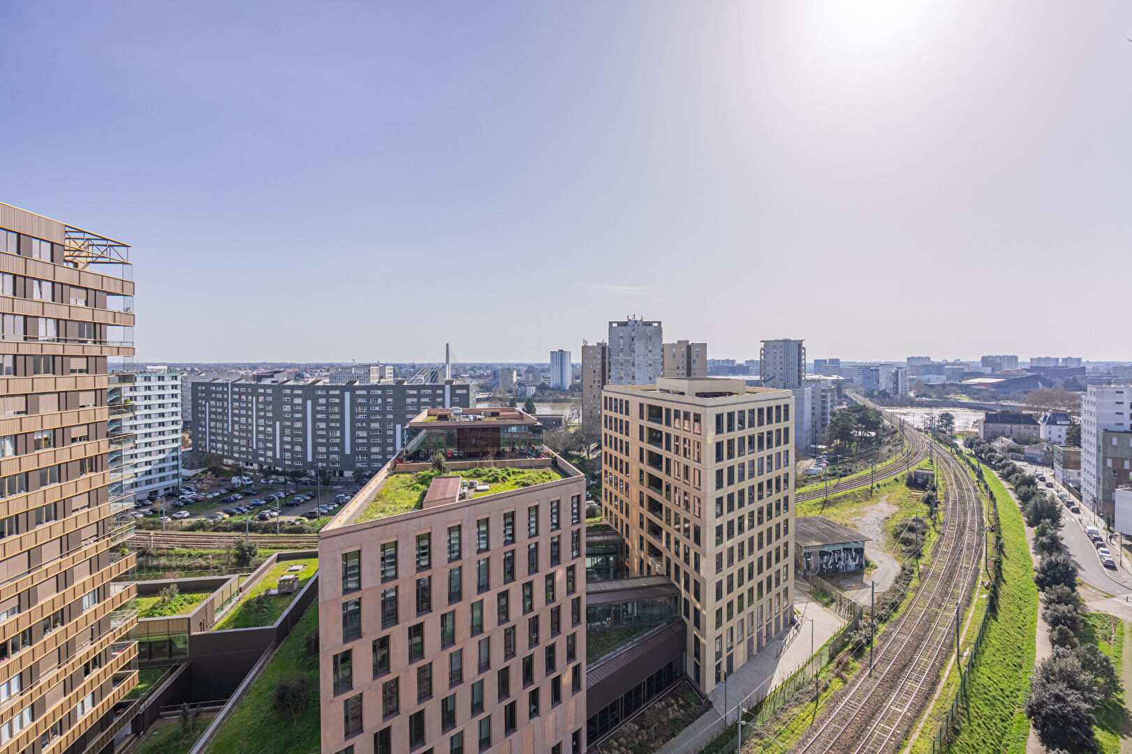 Nantes gare sud Euro Nantes - Résidence Nouvelle Vague Dans une belle résidence BBC de 2014, agréable T2 situé au 14ème étage avec ascenseur, lumineux bénéficiant d'une vue dégagée sur Nantes. Ce logement comprend : une entrée, un séjour donnant sur une terrasse exposée Sud-Est, une cuisine ouverte, deux chambres, une salle d'eau avec emplacement machine à laver et un WC séparé. L'eau chaude, l'eau froide et le chauffage urbain sont compris dans les charges de copropriété. Idéal pour un premier achat ou un investissement locatif, dans un quartier dynamique, avec de nombreux commerces et transports. Les + : l'étage élevé permettant de profiter d'une vue sur la petite Amazonie, et la Loire, ainsi que sa grande terrasse bien exposée.