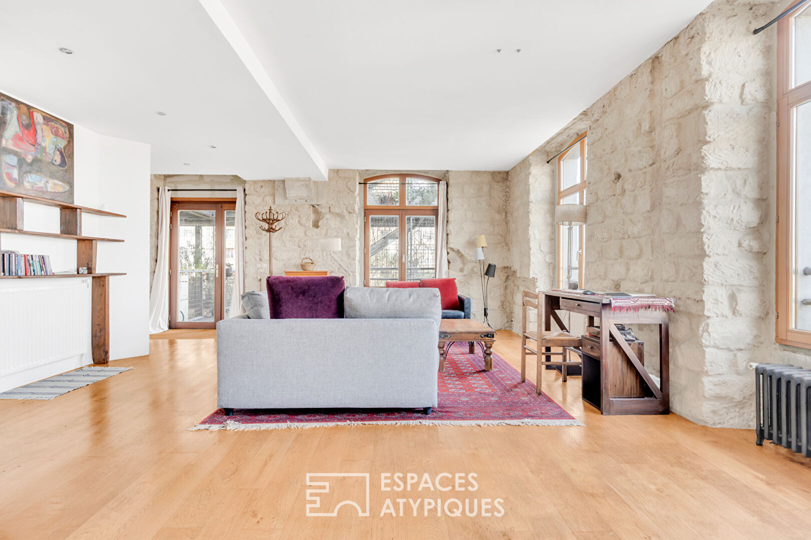 C'est derrière les murs d'une ancienne usine du XIXe siècle, reconvertie avec respect et sobriété, que se cache cet appartement de 108 m² qui conjugue matière, lumière et histoire. Les amateurs de volumes atypiques seront séduits dès l'entrée : L'appartement révèle ici un vaste espace de vie de 64 m² où la pierre apparente dialogue avec les menuiseries en bois et un parquet massif. L'ensemble dégage une atmosphère chaleureuse, presque méditative, renforcée par une belle hauteur sous plafond et une lumière omniprésente filtrée par de grandes fenêtres cintrées. La cuisine ouverte, sobre et fonctionnelle, s'intègre avec discrétion au volume global. Plus loin, un dégagement distribue deux chambres, une salle de bain, un toilette indépendant, ainsi qu'un local de rangement, rare et précieux pour un tel bien. Chaque espace reste lumineux et agréable à vivre, fidèle à l'esprit du lieu. Une place de stationnement extérieure complète l'ensemble. Au quotidien, l'adresse se révèle pratique et bien connectée : Marché, commerces et écoles à 4 minutes à pied Tramway T9 à 5 minutes à pied, reliant la future ligne 15 du Grand Paris en une station RER C ? Les Ardoines à 15 minutes à pied Conservatoire de musique, établissement Épin et autres commodités à proximité Cet appartement s'adresse à ceux qui recherchent une émotion architecturale dans un cadre de vie hors des standards, à mi-chemin entre le loft urbain et la résidence d'artiste. Un lieu rare pour ceux qui osent regarder au-delà des évidences. CLASSE ÉNERGIE : D / CLASSE CLIMAT : D. Estimation des coûts annuel d'énergie du logement : entre 1510 euros et 2110 euros. Prix moyen des énergies indexés au 1er janvier 2021 (abonnements compris) Les informations sur les risques auxquels ce bien est exposé sont disponibles sur le site Géorisques : https://www.georisques.gouv.fr Contact : Lohengrin - 07 67 84 20 57 - Agent Commercial - RSAC : 912 668 753 Créteil Copropriété de 20 lots. Charges annuelles : 1586 euros. Lohengrin Muller (EI) Agent Commercial - Numéro RSAC : 912 668 753 - Créteil.