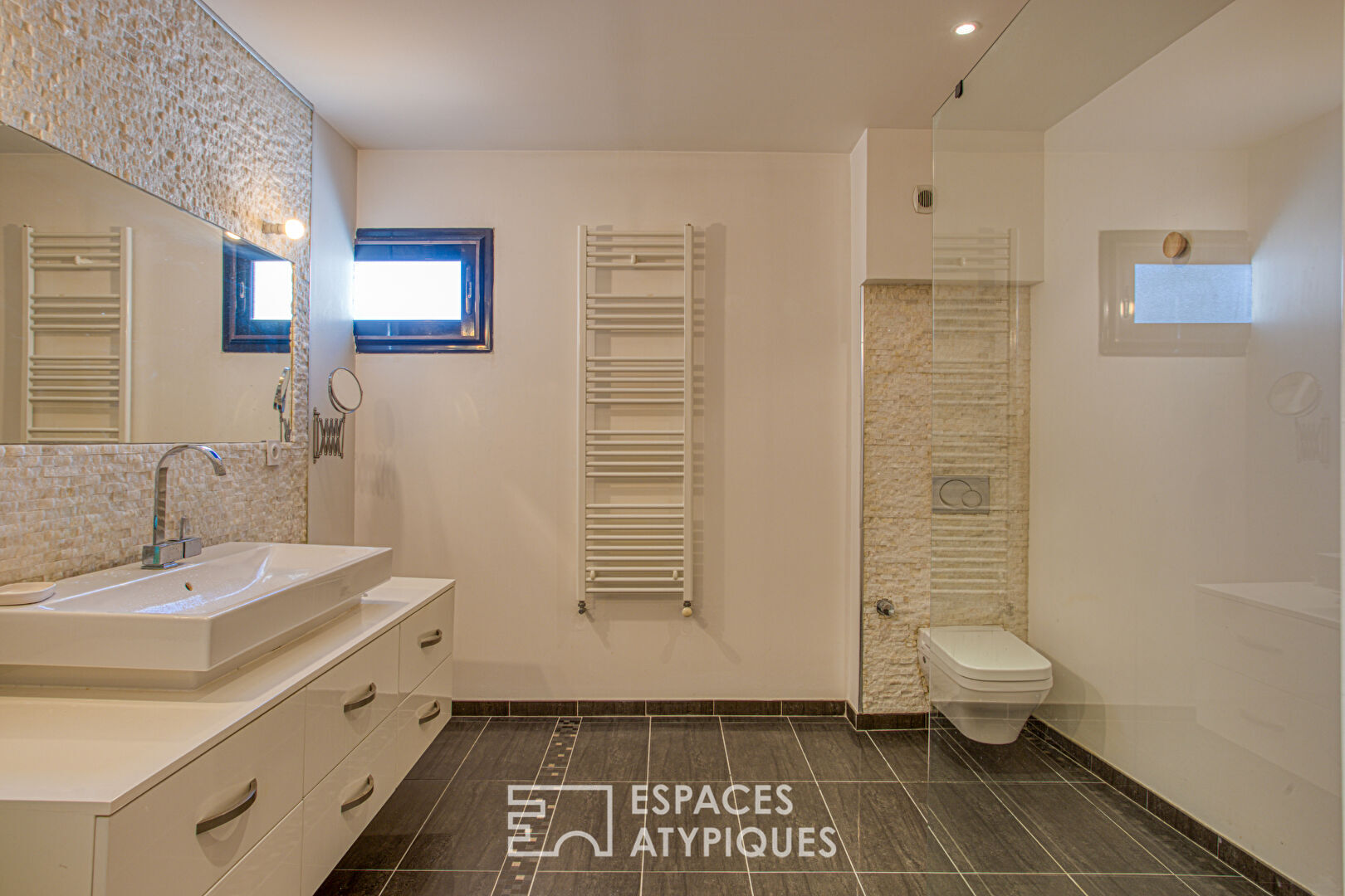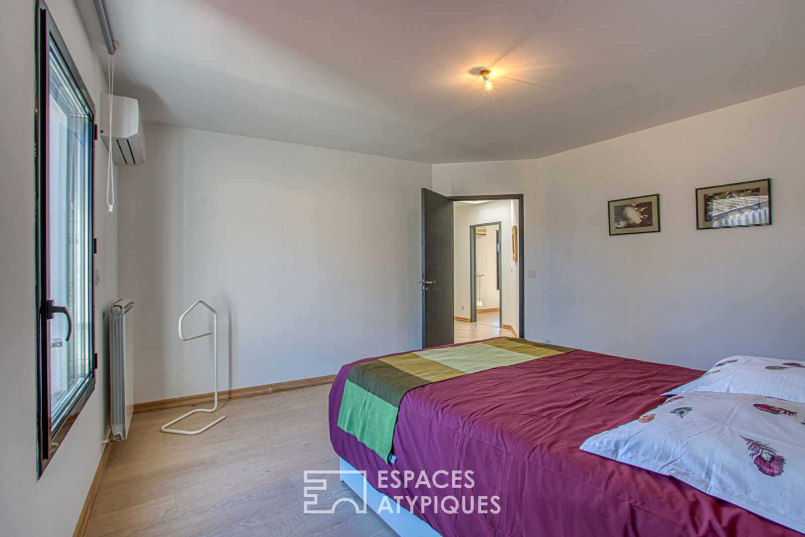 Au coeur d'un quartier en plein essor, à seulement 10 minutes à pied des remparts, ce loft unique se vit comme une maison traditionnelle, avec en prime de superbes volumes et une luminosité remarquable. Dès l'entrée, le premier niveau dévoile une spectaculaire pièce de vie sublimée par 8 mètres de hauteur sous plafond. L'espace s'organise harmonieusement autour d'une cuisine ouverte et d'un vaste séjour baigné de lumière, prolongé par une charmante terrasse en bois, véritable invitation à la détente. Ce niveau accueille également un espace bien-être rare : baignoire balnéo et sauna composent une véritable bulle de relaxation, idéale après une séance de sport dans la pièce attenante. Un garage ainsi qu'une buanderie/cellier complètent parfaitement l'espace jour. A l'étage, vous découvrirez une élégante suite parentale ainsi que deux chambres supplémentaires partageant une salle de bain. Pensé pour pouvoir se vivre entièrement de plain-pied, ce loft a bénéficié d'une rénovation soignée, avec une attention particulière portée au confort thermique. Ancienne salle de danse réhabilitée il y a une dizaine d'années, ce lieu offre aujourd'hui une habitation contemporaine où calme, volumes et douceur de vivre s'harmonisent avec caractère et modernité. CLASSE ENERGIE : C CLASSE CLIMAT : C Estimation des coûts annuels : entre 1 630 euros et 2 260 euros par an Prix moyens des énergies indexés au 1er janvier 2021 Les informations sur les risques auxquels ce bien est exposé sont disponibles sur le site Géorisques: www.georisques.gouv.fr Sarah BARRE (EI) Agent Commercial - Numéro RSAC : 803 866 342 Avignon - Avignon.