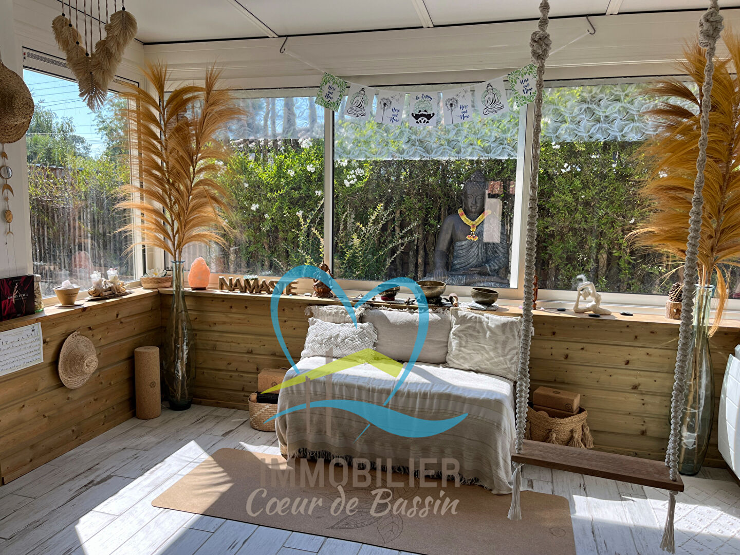 Maison de charme à découvrir à ANDERNOS les bains, dépendances, jardin, Une grande entrée, pour accéder au salon-séjour et son nouveau poêle à granulés pour de douces soirées d'hiver et de belles journées sous la lumière naturelle de sa haute véranda (HSP 4m40) une cuisine aménagée/équipée, un dégagement vers les deux premières chambres avec placards, une salle d'eau et des toilettes indépendantes Un garage carrelé attenant et communicant de 16m2 est à transformer en élégant accès à la troisième chambre avec un point d'eau ouvre des possibilités de création d'une deuxième salle d'eau. Au jardin sans vis à vis, vous trouverez un espace minéralisé et une terrasse bois autour de la maison, puis à l'arrière une dépendance de 15m² isolée par l'extérieur en 2021 et sur le côté un atelier attenant au garage de la maison pour une surface de 22m2 La maison est située dans le quartier très agréable "DES BRUYERES" qui est calme et résidentiel (3.33 % honoraires TTC à la charge de l'acquéreur.)