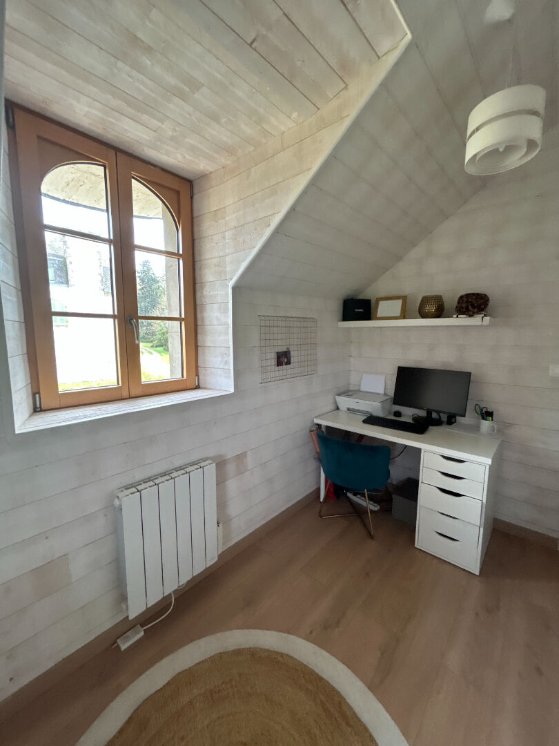 Au coeur du pays Fouesnantais, dans un environnement calme et verdoyant, cette propriété bénéficie d'un emplacement stratégique. A seulement 6 km de la mer, idéalement située entre Quimper et les plages du littoral, elle offre un cadre de vie privilégié, alliant tranquillité et proximité des commodités. Derrière sa silhouette évoquant un petit manoir, cette maison de caractère révèle une architecture authentique mêlant pierres et poutres apparentes. Entièrement rénovée avec goût, elle prend place au sein d'un ancien ensemble soigneusement transformé. Adossée aux anciennes écuries, désormais aménagées en habitation, elle fait face à un petit joyau du patrimoine, chargé d'histoire. L'intérieur, lumineux et chaleureux, marie avec finesse le charme de l'ancien et le confort moderne. Le rez-de-jardin propose une belle pièce de vie d'environ 40 m² réunissant cuisine, séjour et salon dans une atmosphère conviviale, agrémentée d'un poêle à granulés, complétée par un cellier/buanderie et des WC indépendants. A l'étage, un palier dessert une spacieuse chambre de 19 m² avec poutres apparentes, deux chambres de 9 m² ainsi qu'une salle d'eau avec plafond cathédrale, apportant volume et caractère. A l'extérieur, le terrain entièrement clos a été pensé pour allier praticité et détente : cour bitumée pour le stationnement, vaste terrasse carrelée exposée plein sud et agréable jardin facile d'entretien, idéal pour profiter pleinement des beaux jours. Un bien de charme, soigné dans les moindres détails, qui ne laissera pas indifférent. (5.00 % honoraires TTC à la charge de l'acquéreur.)