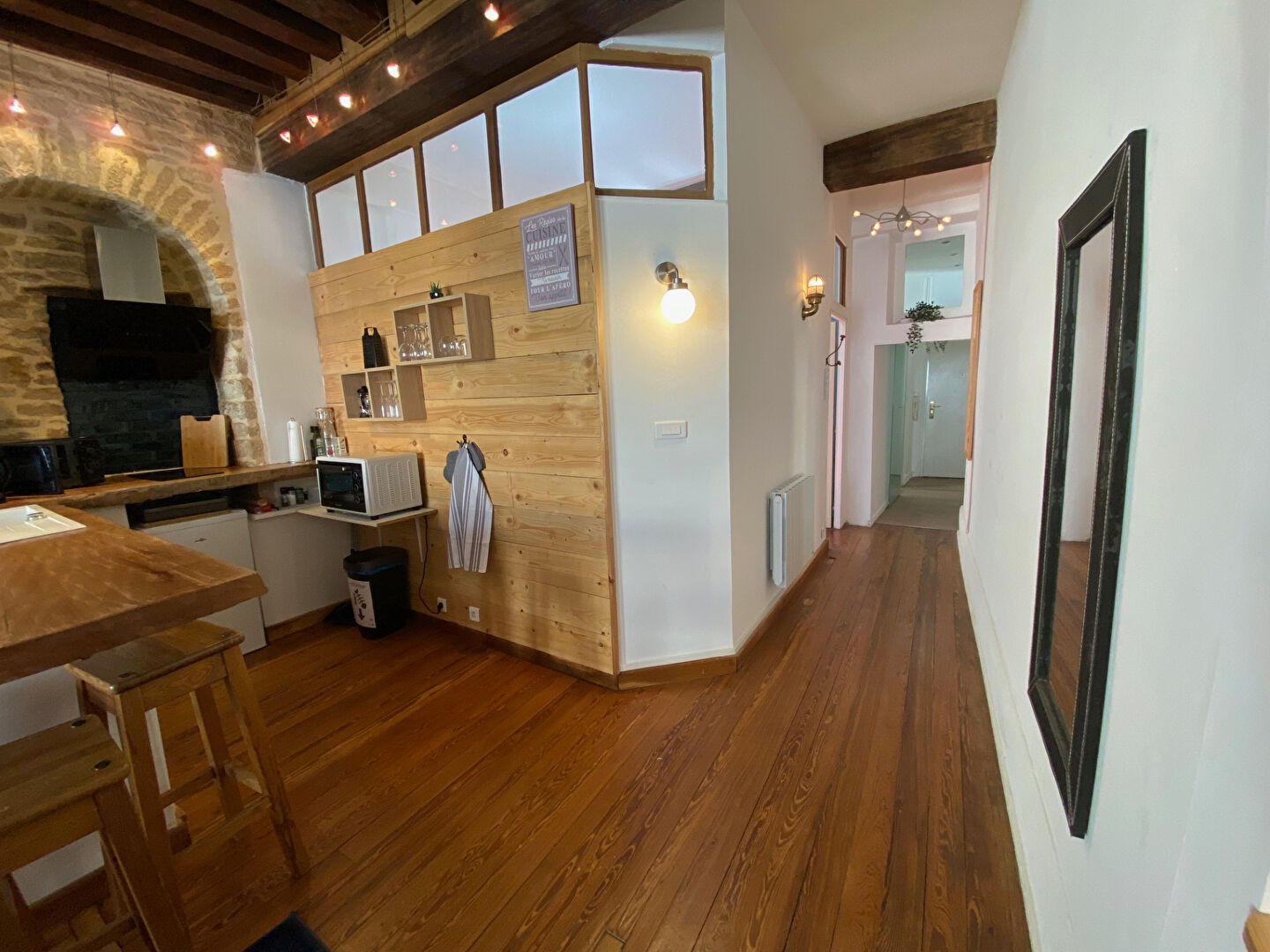 Quartier des antiquaires Magnifique T2 de 48 m² meublé situé au 1er étage dans une petite copropriété ancienne comprenant grande pièce de vie lumineuse avec cuisine ouverte aménagée et équipée, 1 chambre au calme donnant sur cour intérieure, salle-de-douche avec WC. Appartement entièrement rénové avec le charme de l'ancien conservé (poutres, pierres apparentes, parquets anciens). Location meublée .Dépôt de garantie 1500e. DPE : D - LOYER 795 euros. Hono agence 535euros. AGENCE CADR'IMMO 03.80.54.23.10