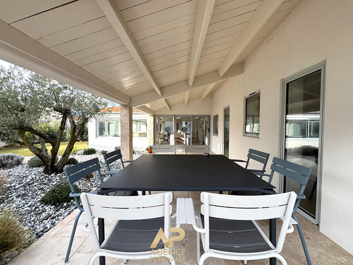Agence Principale La Rochelle vous présente aujourd'hui : Le Clé en Main en Bord de Mer ! Située à Yves, dans le secteur prisé des Boucholeurs, cette maison de 117 m² entièrement rénovée entre 2023 et 2024 offre une alliance parfaite entre modernité et confort. A deux pas de l'océan, elle profite d'un environnement calme et d'une exposition Sud idéale. L'espace de vie, vaste et lumineux, s'articule autour d'un double séjour et d'une cuisine de standing avec îlot central, entièrement équipée. Côté nuit, la maison dispose de trois chambres, dont une suite parentale avec dressing et douche à l'italienne, ainsi qu'un bureau fonctionnel (pouvant être aménagé en chambre) et une buanderie optimisée. L'extérieur sans aucun vis-à-vis, dévoile une piscine chauffée, une terrasse couverte ainsi qu'un jardin. Les plus : - Eclairage automatique (extérieur) - Un garage avec porte motorisée - Deux places de stationnement avec bornes de recharge électrique - Des prestations haut de gamme - Plusieurs mode de chauffage (climatisation réversible, système gainable, poêle) - Un dispositif complet d'alarme et de vidéosurveillance Contactez-nous dès à présent pour organiser une visite ! (4.36 % honoraires TTC à la charge de l'acquéreur.) Julien HUGUET (EI) Agent Commercial - Numéro RSAC : - .