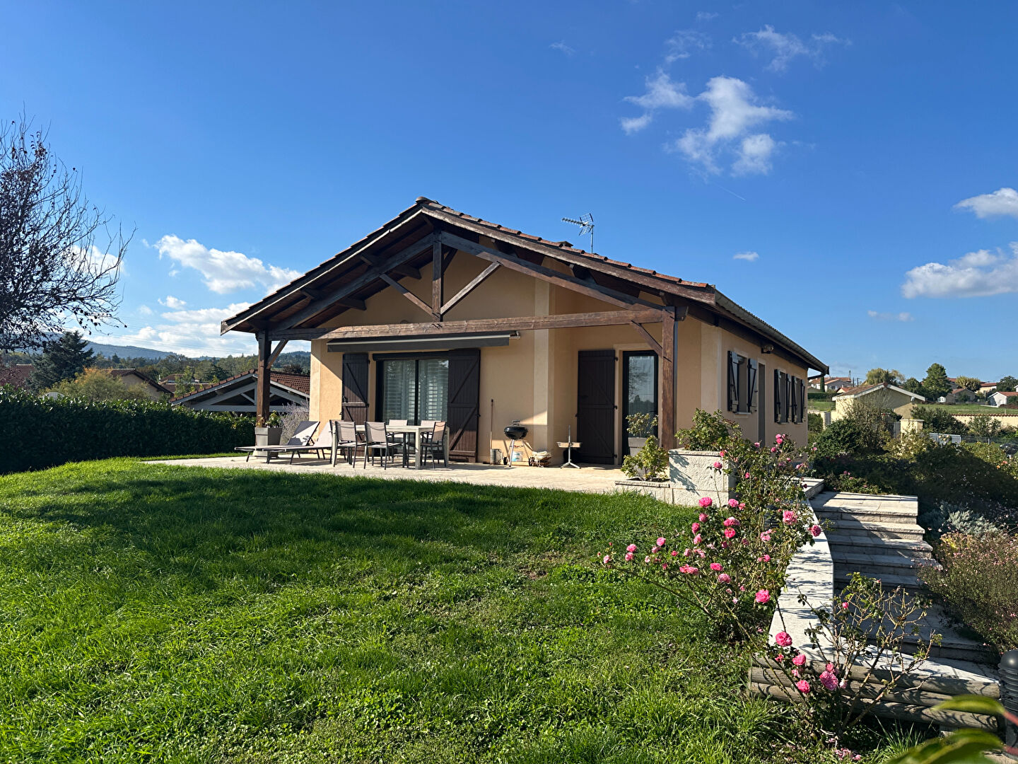 A Vaugneray, à proximité immédiate des transports, écoles et commerces, découvrez cette villa parfaitement entretenue de 146 m² habitables + annexes, sans travaux à prévoir. Elle offre un séjour cathédrale lumineux de 46 m² avec cuisine équipée ouverte sur une grande terrasse bénéficiant d'une vue panoramique sur les Monts du Lyonnais, 3 grandes chambres, salle de bains avec douche et baignoire, WC indépendant. En rez-de-chaussée : espace buanderie, cave à vin, chambre avec salle d'eau + WC et pièce détente/salle de sport, garage double de 47 m². Le tout sur un terrain clos et plat de 1 550 m² sans vis-à-vis avec piscine enterrée 10 x 5 m, pool house et grande terrasse bois. Un emplacement recherché pour sa qualité de vie et sa proximité immédiate de Lyon. Vous envisagez également une vente sur Vaugneray ou l'Ouest lyonnais ? Contactez-nous pour une estimation confidentielle. Visite sur rendez-vous chez Sélection Immobilier à Grezieu La Varenne au 04.37.20.05.82.