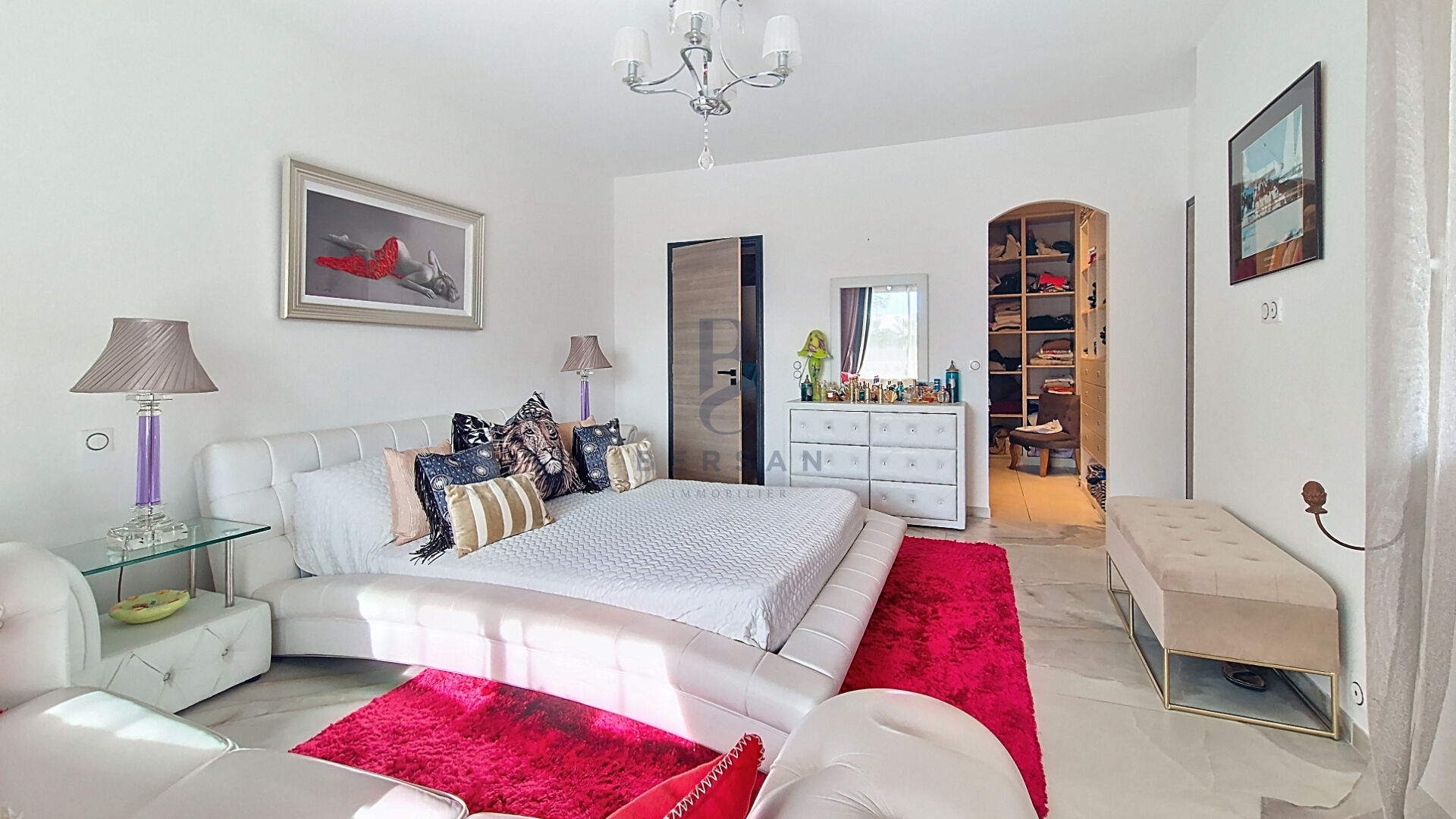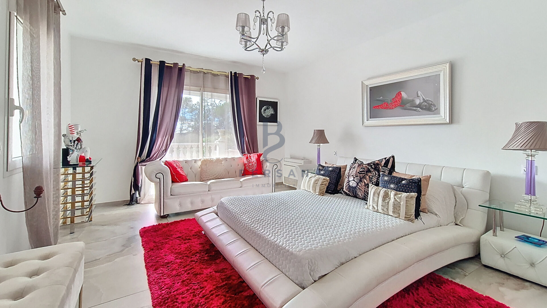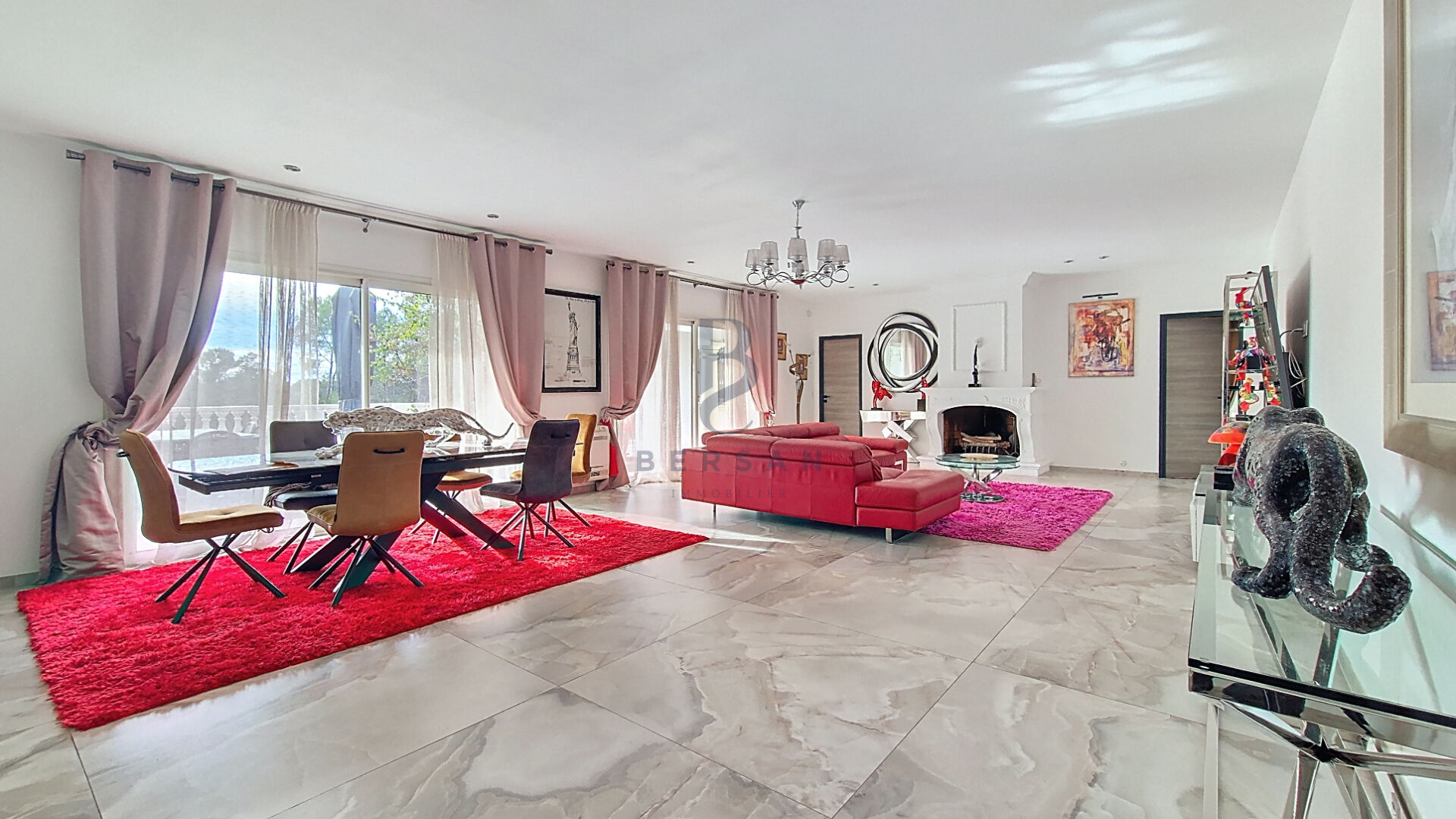 Votre agence BERSAN Immobilier Valescure vous invite à découvrir cette élégante villa de prestige avec piscine située au sein d'un domaine privé et sécurisé, s'étendant sur une parcelle de plus de 5000 m² . Située dans un quartier très recherché, cette villa spacieuse se dresse au coeur d'un cadre verdoyant. Bénéficiant d'une exposition idéale, elle est inondée de lumière naturelle et offre une vue panoramique exceptionnelle grâce à sa position en hauteur. La villa est agencée sur deux niveaux. Le rez-de-chaussée s'ouvre sur un hall d'entrée qui mène à un vaste séjour avec cheminée. Vous y trouverez également une cuisine moderne entièrement équipée donnant sur agréable terrasse couverte, un WC séparé, ainsi qu'une chambre de maitre avec salle d'eau, WC et dressing. Un vaste bureau, pouvant servir de chambre supplémentaire si besoin. A l'étage, trois grandes chambres, chacune avec sa propre salle d'eau, vous attendent (l'une avec baignoire et WC), offrant des espaces de rangement généreux (24 m², 18 m², 16 m²) et un WC séparé. Au rez-de-chaussée, un studio indépendant de 24 m² est à disposition, idéal pour la location ou pour héberger une personne à charge. Un grand garage de plus de 45 m² et une cuisine d'été ajoutent encore plus de confort à cette propriété. Cette villa de 2008 propose des prestations haut de gamme : climatisation réversible dans toutes les pièces, pompe à chaleur au sol (chaud et froid), cheminée, double vitrage, baies vitrées à galandage, piscine à débordement au sel, sécurisée et chauffée, vaste terrasse de 150 m², terrain de pétanque et portail électrique. Une propriété sans travaux à prévoir, offrant une qualité de vie exceptionnelle dans un environnement sécurisé, tout en restant proche des plages et des commodités. L'ensemble de l'équipe de l'agence BERSAN Immobilier reste à votre service pour vous apportez de plus amples informations.