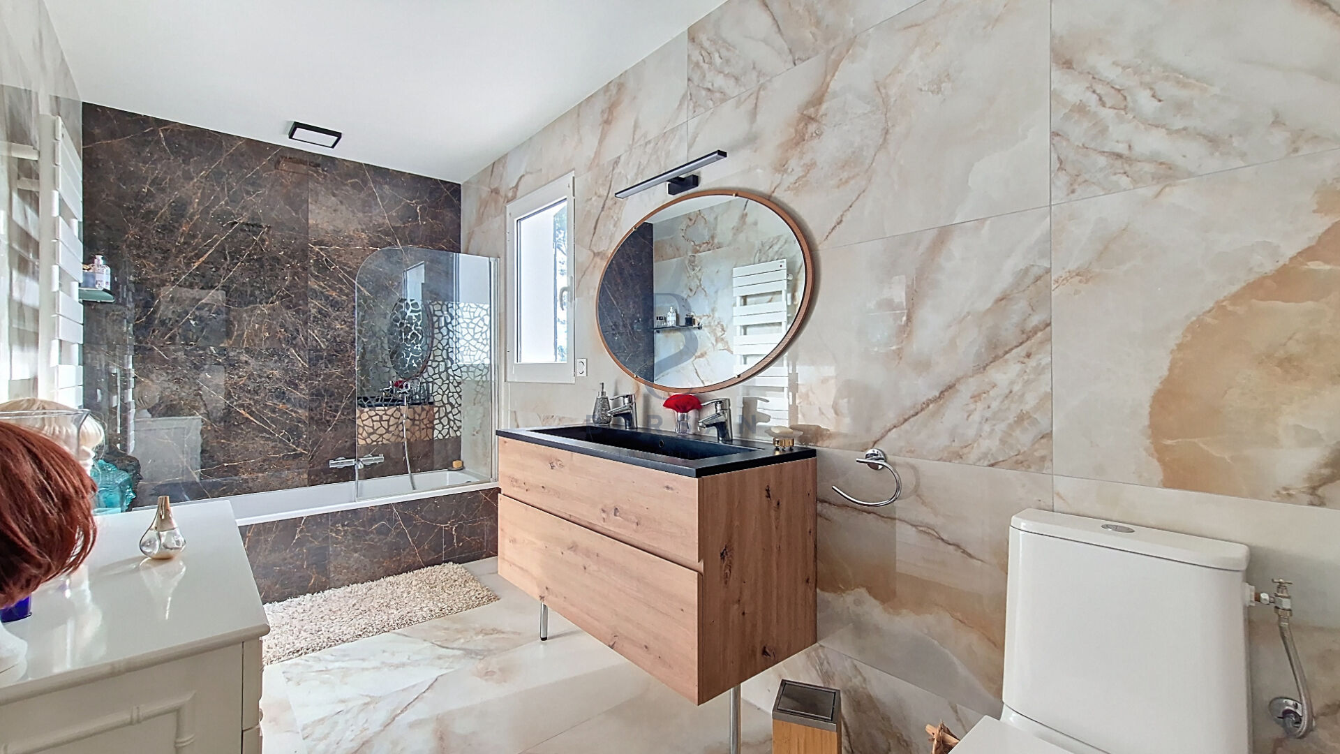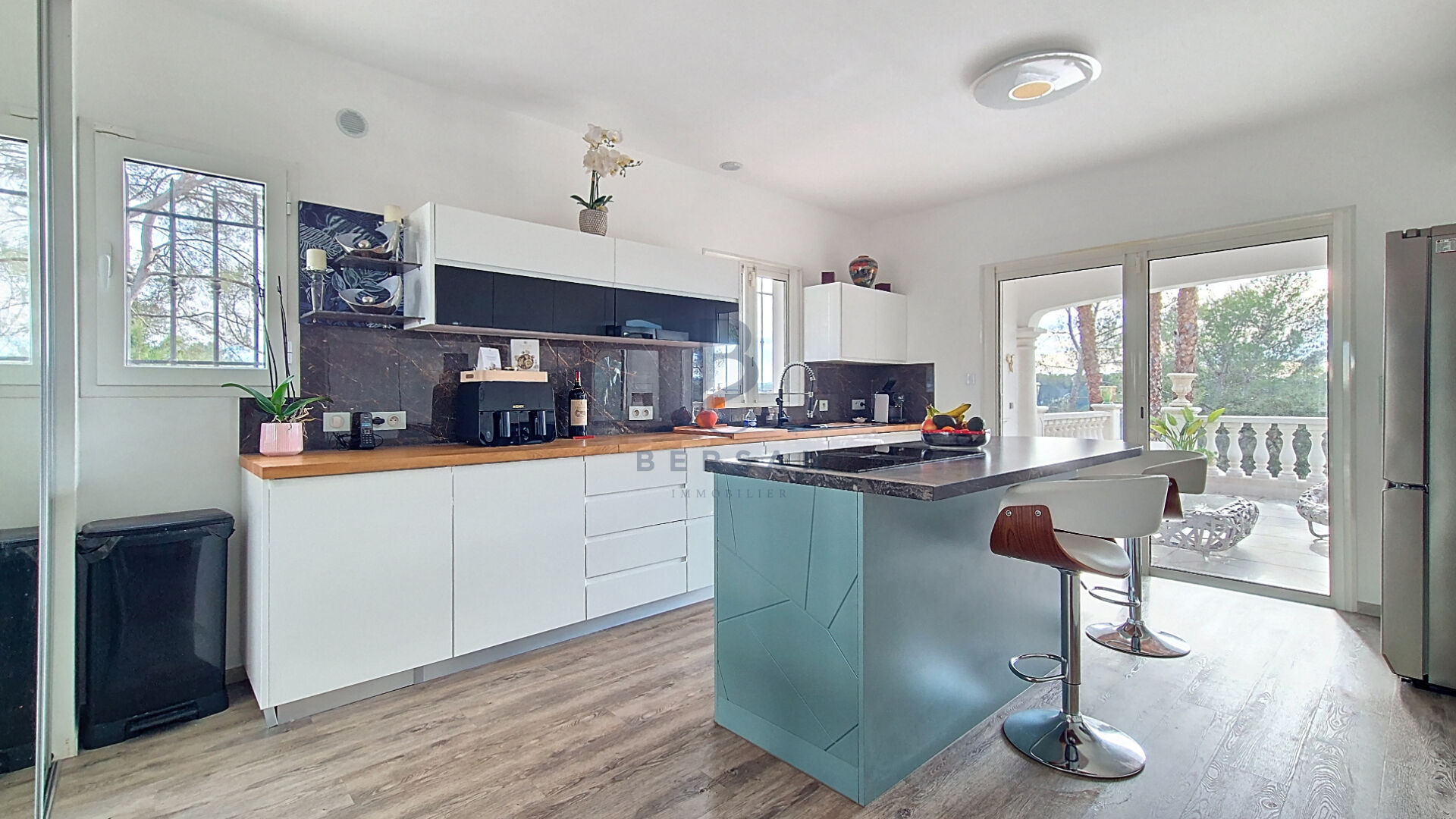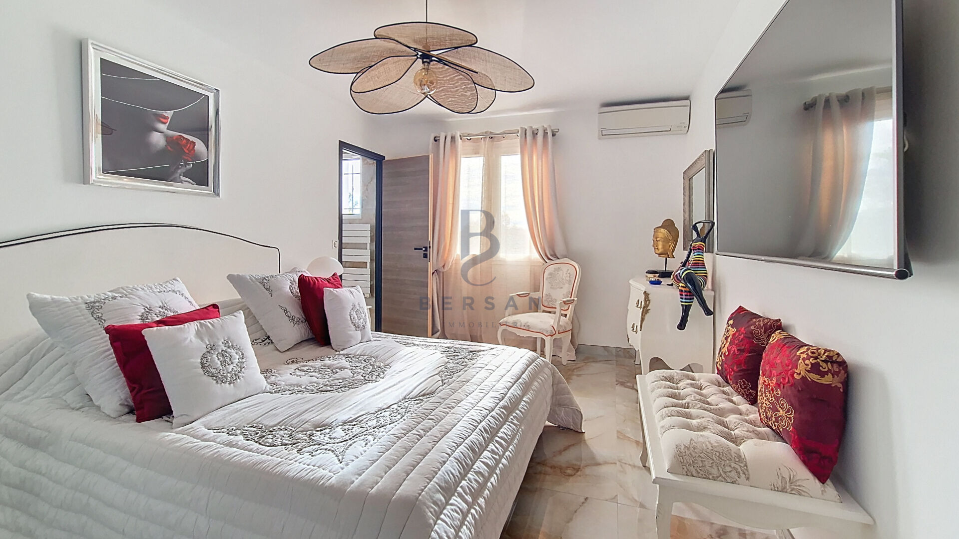 Votre agence BERSAN Immobilier Valescure vous invite à découvrir cette élégante villa de prestige avec piscine située au sein d'un domaine privé et sécurisé, s'étendant sur une parcelle de plus de 5000 m² . Située dans un quartier très recherché, cette villa spacieuse se dresse au coeur d'un cadre verdoyant. Bénéficiant d'une exposition idéale, elle est inondée de lumière naturelle et offre une vue panoramique exceptionnelle grâce à sa position en hauteur. La villa est agencée sur deux niveaux. Le rez-de-chaussée s'ouvre sur un hall d'entrée qui mène à un vaste séjour avec cheminée. Vous y trouverez également une cuisine moderne entièrement équipée donnant sur agréable terrasse couverte, un WC séparé, ainsi qu'une chambre de maitre avec salle d'eau, WC et dressing. Un vaste bureau, pouvant servir de chambre supplémentaire si besoin. A l'étage, trois grandes chambres, chacune avec sa propre salle d'eau, vous attendent (l'une avec baignoire et WC), offrant des espaces de rangement généreux (24 m², 18 m², 16 m²) et un WC séparé. Au rez-de-chaussée, un studio indépendant de 24 m² est à disposition, idéal pour la location ou pour héberger une personne à charge. Un grand garage de plus de 45 m² et une cuisine d'été ajoutent encore plus de confort à cette propriété. Cette villa de 2008 propose des prestations haut de gamme : climatisation réversible dans toutes les pièces, pompe à chaleur au sol (chaud et froid), cheminée, double vitrage, baies vitrées à galandage, piscine à débordement au sel, sécurisée et chauffée, vaste terrasse de 150 m², terrain de pétanque et portail électrique. Une propriété sans travaux à prévoir, offrant une qualité de vie exceptionnelle dans un environnement sécurisé, tout en restant proche des plages et des commodités. L'ensemble de l'équipe de l'agence BERSAN Immobilier reste à votre service pour vous apportez de plus amples informations.