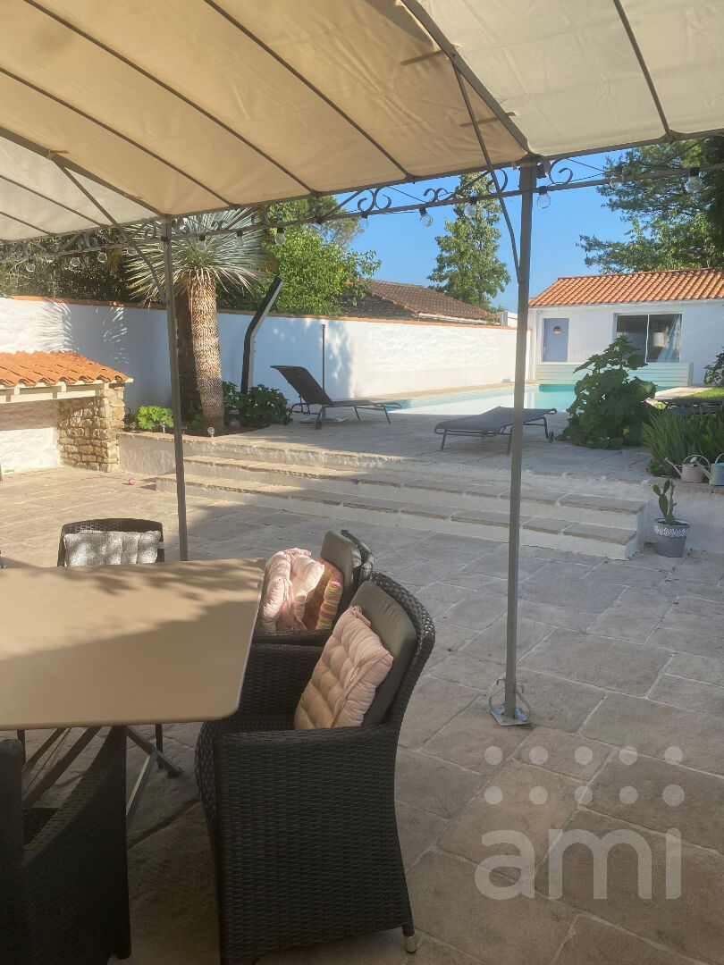NIORT Sainte-Pezenne, jolie maison ancienne rénovée, 187 m² habitables, comprenant au RDC salon, cuisine équipée/pièce repas, salle d'eau/wc, garage. A l'étage 5 chambres, salle de bains, wc, dressing. Beau terrain arboré de 1200 m² environ, avec piscine chauffée et grande terrasse, salle de sport, dépendance. Ouv PVC double vitrage. Parking 4 voitures. Au calme, très bon état. (3.90 % honoraires TTC à la charge de l'acquéreur.)