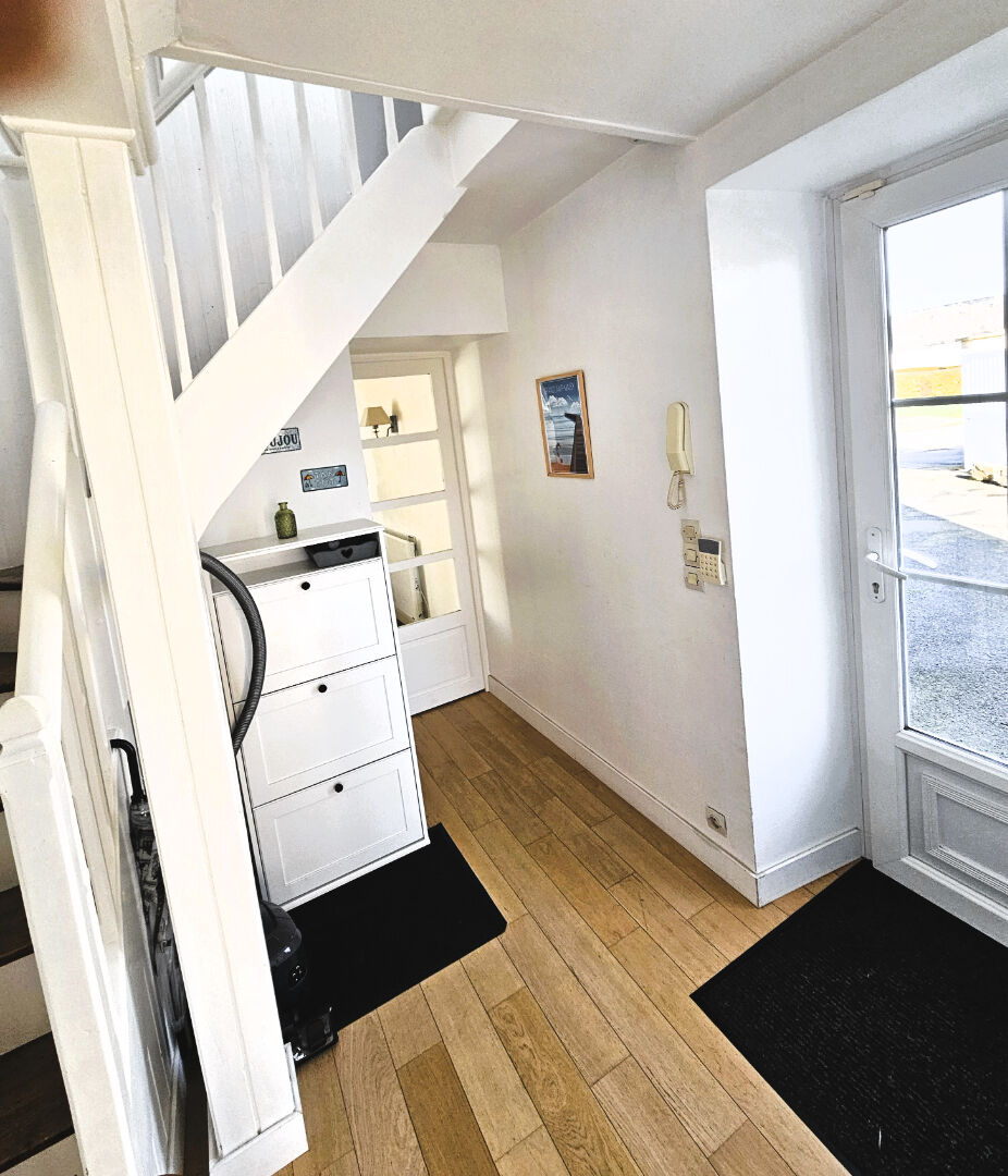 MH Immobilier vous propose à Grandcamp-Maisy, cette charmante maison de 155m², avec 5 chambres où l'ancien et le moderne sont en douce harmonie. Le tout sur une parcelle parfaitement close et bitumée de 500m² . La proximité des plages du débarquement, vingt minutes de BAYEUX et 50 minutes de CAEN/aéroport donne un attrait historique particulier à ce bien...nous sommes environ à 800m du port de Grandcamp et des commerces. Au rdc : Une entrée vous invite d'une part sur le lumineux séjour et sa cuisine ouverte aménagée et équipée, puis d'autre part sur un salon d'hiver avec cheminée insert et une buanderie avec douche et wc. Au 1er : un couloir dessert trois chambres dont une grande de 20m2, et une salle de bain avec wc . Au 2e : 2 chambres mansardées. Tout à l'égout, double vitrage pvc , portail automatique, terrasse, etc. Etat impeccable ! décoration soignée ! Agence : 02 32 44 76 70 / Agent immobilier 06 51 35 78 73 Nous vous rappelons que conformément à l'article L. 561-5 du Code monétaire et financier, une pièce d'identité de tous les visiteurs vous sera demandée avant la visite. Les informations sur les risques auxquels ce bien est exposé sont disponibles sur le site Géorisques : www.georisques.gouv.fr.