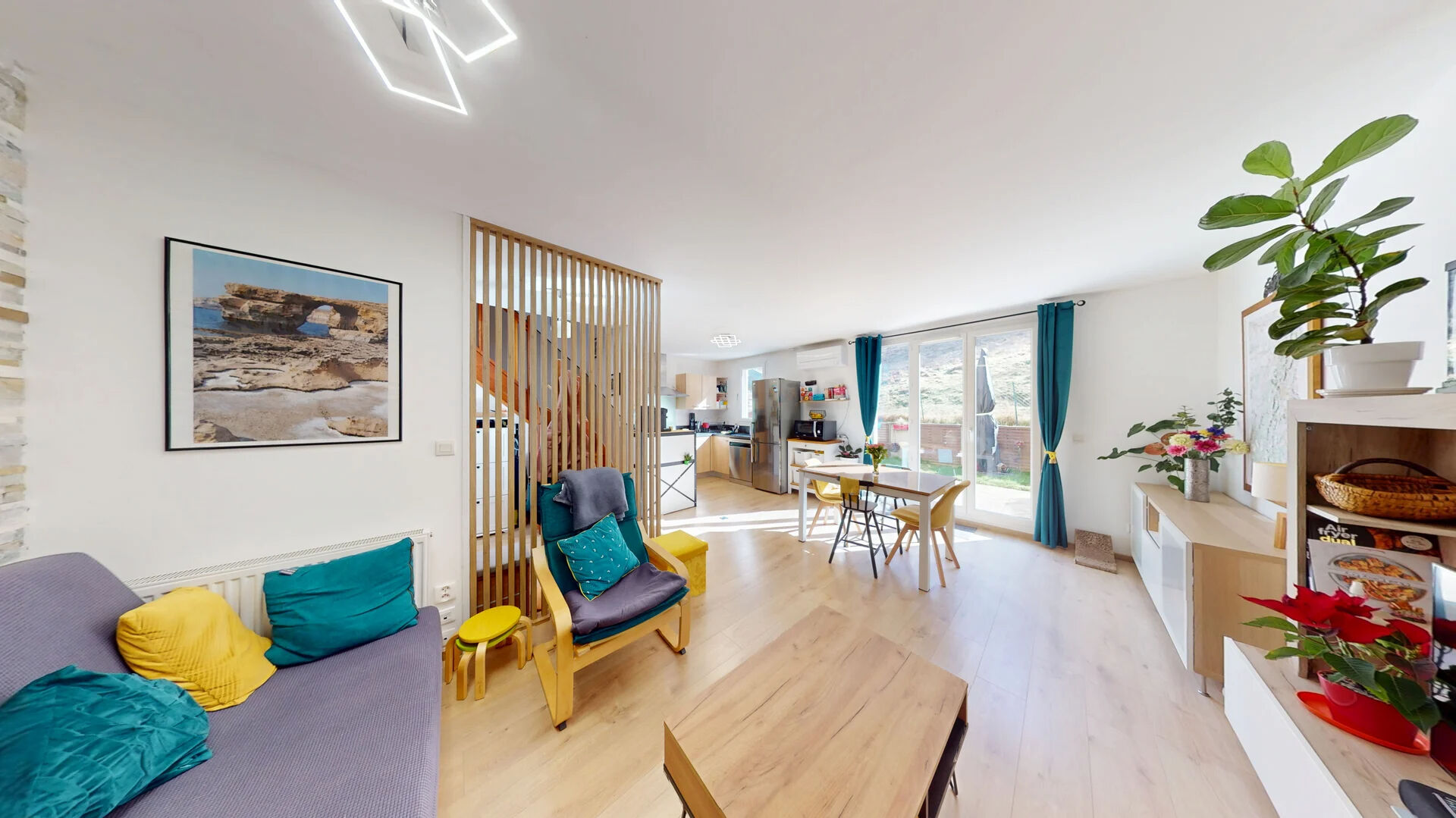 En exclusivité chez Gaya Immobilier. Au premier étage et dernier, un appartement duplex de type T4, surface 75.34m2, en Rez de Jardin Au rez-de-chaussée vous trouverez une entrée, WC, un séjour double, une cuisine aménagée et équipée ouverte sur le séjour, ainsi qu'une terrasse de 27 m2 environ avec un petit jardin. A l'étage, vous avez une suite parentale avec une salle d'eau, deux chambres, Une Salle de Bains avec WC et un dégagement. L'étage est traversant Idéalement situé, les transports, commerces, écoles se trouvent à proximité . Année de construction 2009. L'appartement comprend une place de parking. Un garage fermé de 15 m2 en sus. Copropriété de 37 lots - dont 15 lots habitation. Charges annuelles : 2340 euros. Christophe MONNIER (EI) Agent Commercial - Numéro RSAC : - .