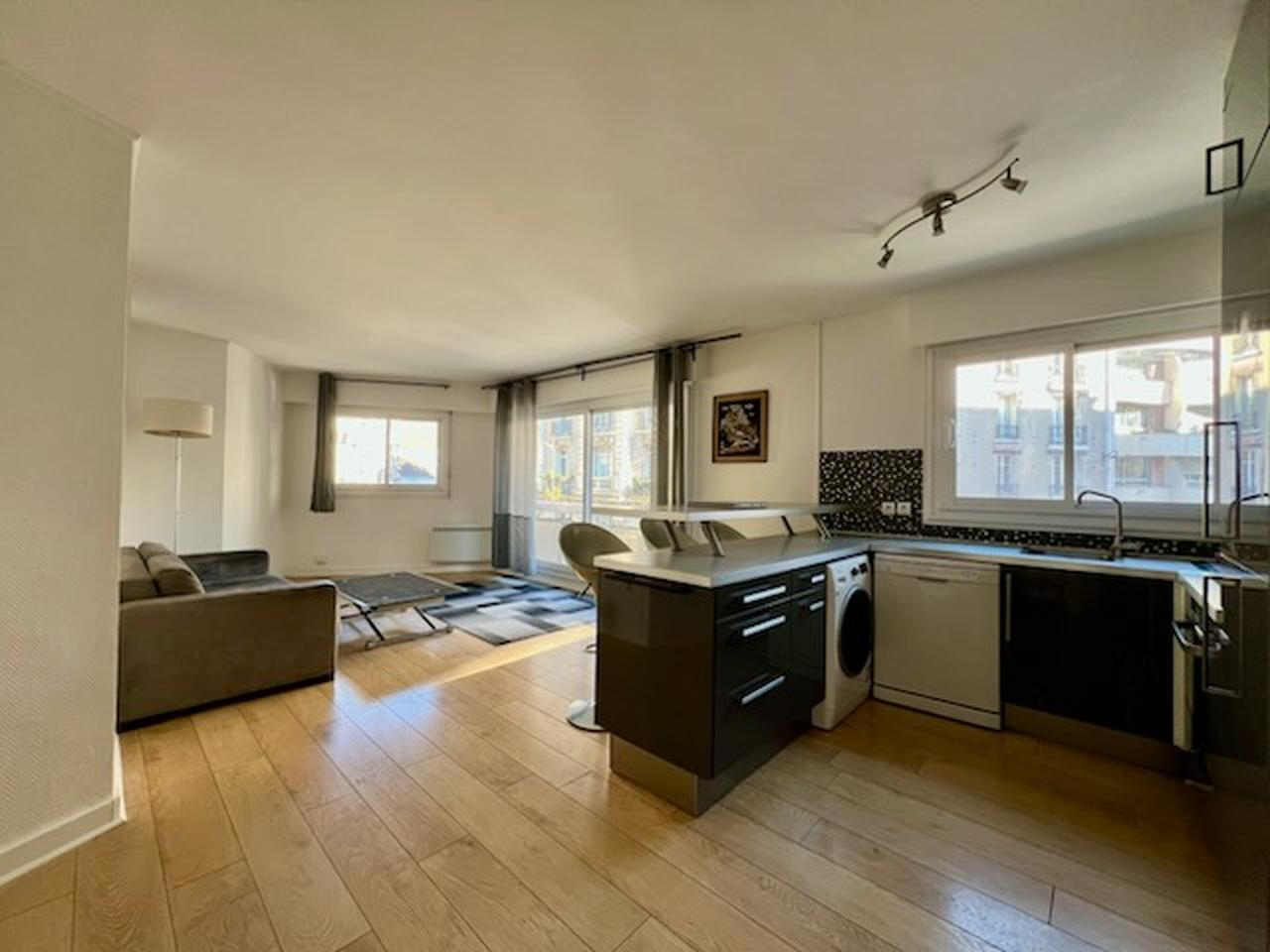 CONTACT UNIQUEMENT PAR MAIL. PARIS 15ème - Rue Desnouettes - Métro Porte de Versailles. Appartement de Type 2 MEUBLE de 50.77m² situé au 2ème étage d'un immeuble récent. Composé comme suit : entrée, séjour avec balcon, cuisine ouverte aménagée et équipée, chambre, salle de bains, W.C séparés. Eau chaude et chauffage individuels électriques. Disponible de suite.