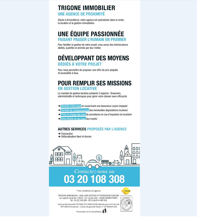 | Agence | TRIGONE IMMOBILIER Armentieres Voir toutes les annonces |