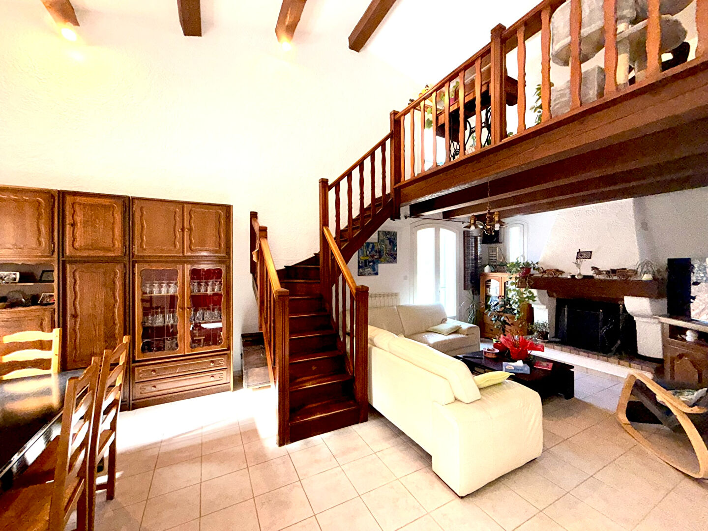 Villa traditionnelle de type 6 d'environ 153m². Elle se compose, au rez-de-chaussée, d'une entrée desservant un spacieux espace de vie avec cheminée ouverte, d'une cuisine entièrement équipée, ainsi que d'un couloir menant à l'espace nuit comprenant deux chambres, une salle d'eau et des WC . A l'étage, une mezzanine pouvant faire office de bureau, trois chambres supplémentaires et une vaste salle de bains et des wc indépendant complètent l'ensemble. Une cave, un garage avec atelier viennent parfaire ce bien. L'ensemble est implanté sur un terrain d'environ 1 460 m².