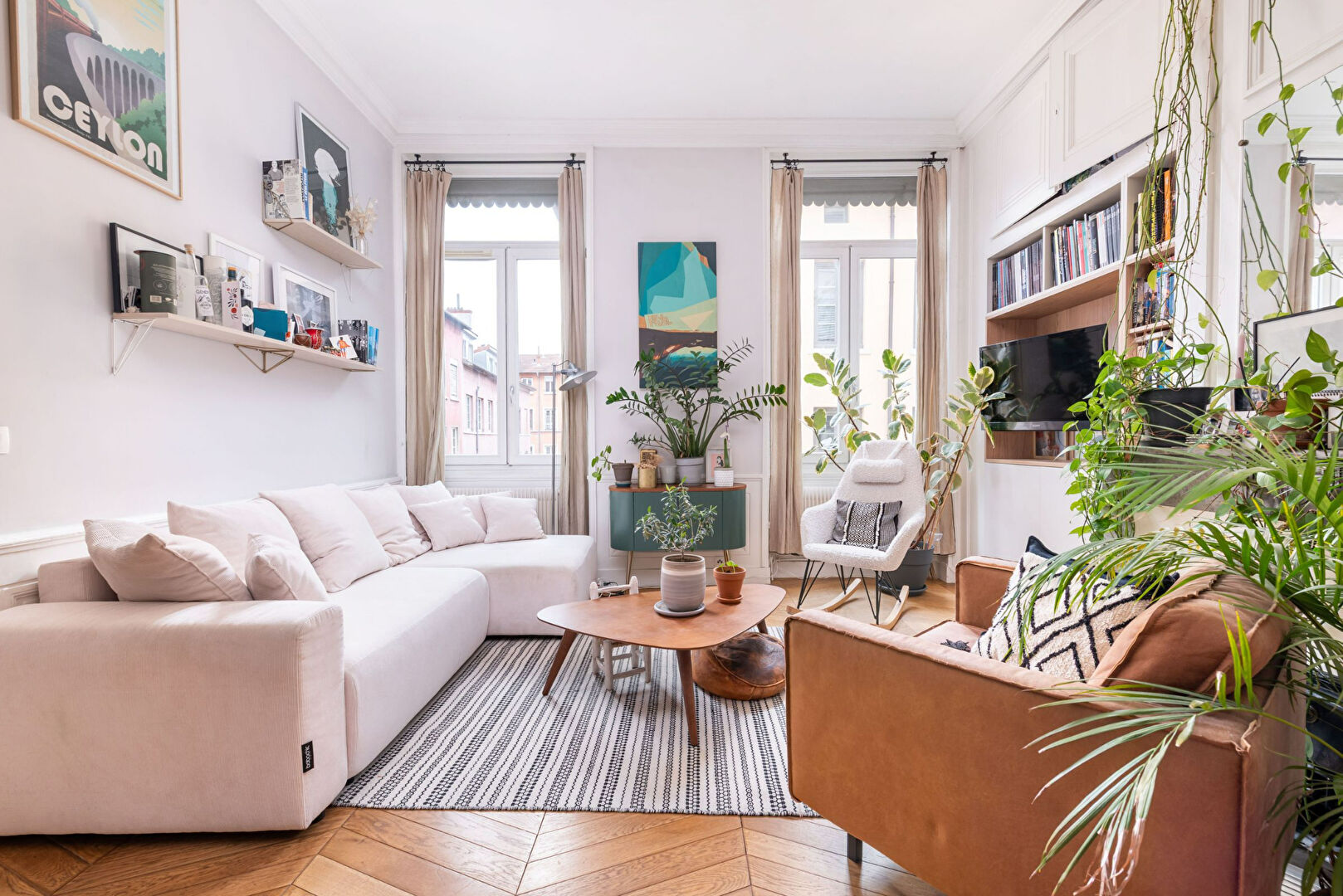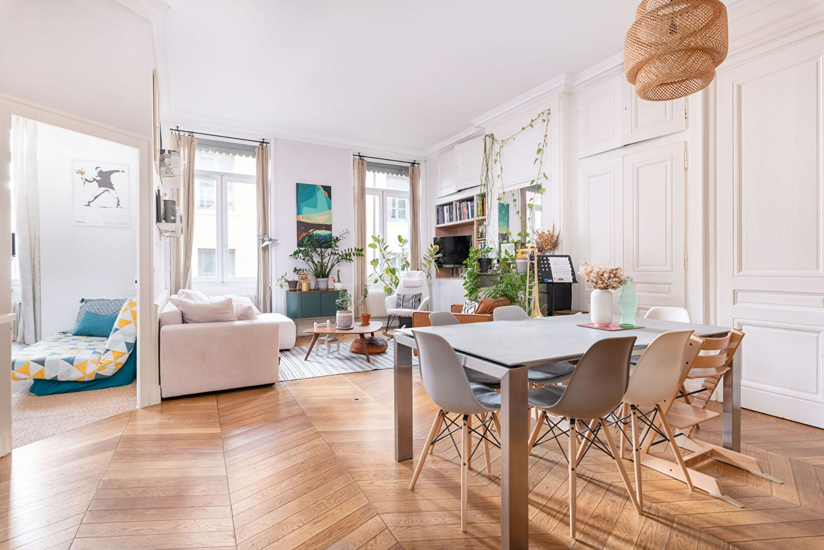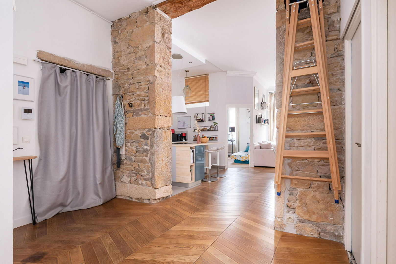 Haut des Pentes - Entre Cour des Voraces et Villa Villemanzy, à 150 mètres du métro Croix-Paquet, au 4e étage avec ascenseur d'un immeuble de 1850, cet appartement 4 pièces de charme développe 89.52 m² Carrez (93.61 m² utiles) en situation traversante nord-sud. Parquet point de Hongrie, cheminée, moulures, boiseries, pierres apparentes et belles hauteurs sous plafond réunissent les codes du bel ancien, auxquels répondent les aménagements plus actuels de la cuisine et de la salle de bains. Il se compose d'une entrée, d'une cuisine aménagée ouverte sur un séjour bénéficiant de deux hautes fenêtres exposées plein sud, d'une première chambre en sud, de WC indépendants, d'une salle d'eau et de deux chambres sur cour intérieure. Surfaces optimisées, rangements, circulation fluide, généreuses entrées de lumière naturelle : l'ensemble compose un cadre de vie particulièrement chaleureux où authenticité et modernité coexistent avec justesse. Un bien de caractère en somme, destiné aux amateurs d'ancien souhaitant que leur intérieur associe charme et confort, au coeur d'un des quartiers ayant contribué à façonner l'âme du Lyon historique. Copropriété de 48 lots - dont 31 lots habitation. (Pas de procédure en cours). Charges annuelles : 1620.32 euros.