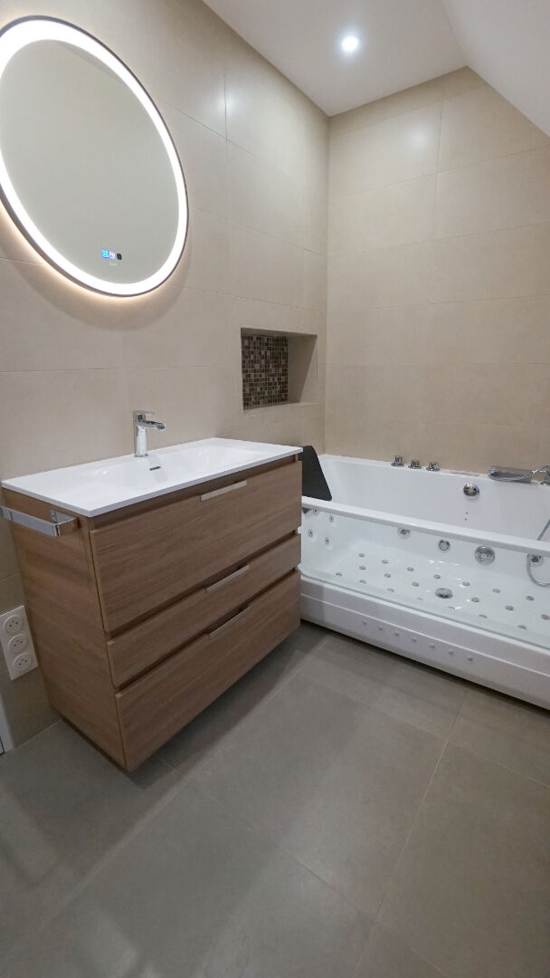 Idéalement située, à proximité des commodités tout en bénéficiant d'un environnement calme, cette maison édifiée sur sous-sol total saura vous séduire par ses beaux volumes et la qualité de ses prestations. Au rez-de-chaussée, une entrée s'ouvre sur une spacieuse pièce de vie d'environ 65 m², lumineuse, avec cuisine ouverte aménagée et un accès direct à la terrasse. Vous y trouverez également une chambre ainsi qu'une salle d'eau récente. A l'étage, le palier dessert trois chambres confortables, dont une avec dressing, ainsi qu'une seconde salle de bains. Le sous-sol total propose une salle de sport isolée et chauffée, une buanderie et un garage. L'ensemble est implanté sur un terrain clos de murs d'environ 903 m², agrémenté d'une dépendance aménageable et d'un carport. (4.04 % honoraires TTC à la charge de l'acquéreur.)