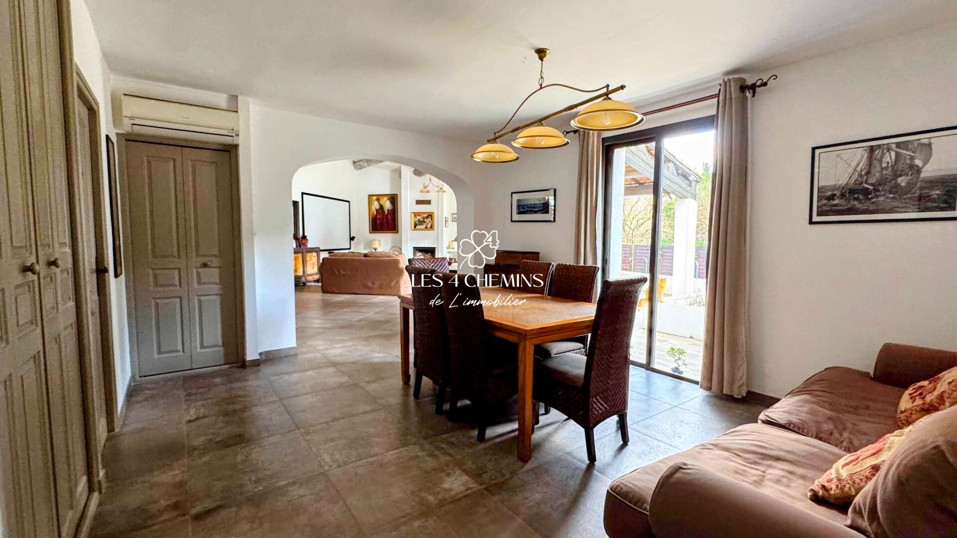 Les 4 Chemins de l'Immobilier vous propose cette magnifique maison à vendre à Châteauneuf-le-Rouge, en grande partie de plain-pied, à seulement 15 minutes d'Aix-en-Provence, dans un environnement calme, résidentiel et très recherché, avec une vue superbe sur le cengle et sur la montagne Sainte-Victoire. Cette villa familiale d'environ 194 m² habitables séduit immédiatement par ses volumes généreux, sa luminosité et la qualité de son cadre de vie. Idéalement conçue pour une famille, elle offre 5 pièces principales dont 4 chambres confortables, alliant parfaitement confort moderne et fonctionnalité. Le coeur de la maison s'articule autour d'un vaste séjour lumineux d'environ 80 m² avec cheminée, véritable espace de vie convivial et chaleureux, idéal pour recevoir. La cuisine indépendante aménagée s'accompagne d'un cellier et d'une buanderie, apportant un vrai confort au quotidien. Le rez-de-chaussée propose également une suite parentale avec dressing et salle d'eau, et deux chambres supplémentaires ainsi qu'une salle d'eau indépendante. A l'étage, une chambre avec salle de bain privative bénéficie d'un accès direct à une terrasse offrant une vue panoramique sur la Sainte-Victoire, un véritable atout pour profiter de moments de détente dans un cadre naturel d'exception. Côté prestations, la maison dispose d'un système de chauffage performant avec climatisation réversible par pompe à chaleur, complété par un chauffage électrique, garantissant confort et maîtrise énergétique, fenêtres double-vitrage alu. Implantée sur un terrain paysagé de 1 639 m², cette propriété propose un extérieur soigné et parfaitement aménagé : piscine, pool-house, terrain de pétanque, espaces détente et jardin arboré. Un véritable lieu de vie pensé pour profiter pleinement du climat provençal, entre moments de convivialité, loisirs et relaxation. Son emplacement stratégique constitue un atout majeur : transports en commun et ramassage scolaire à 5 minutes à pied, commerces de proximité (boulangerie, épicerie, pharmacie), restaurants, médecins, ainsi que crèche, école maternelle et primaire et médiathèque accessibles en 20 minutes à pied et 3 minutes en voiture. Une situation idéale pour une vie de famille sereine à proximité immédiate d'Aix-en-Provence. Une opportunité unique sur le marché immobilier de Châteauneuf-le-Rouge, idéale en résidence principale comme en résidence secondaire. Contactez dès maintenant LES 4 CHEMINS DE L'IMMOBILIER pour organiser une visite et découvrir ce bien d'exception. Prix de vente : 980 000 euros, honoraires agence à la charge du vendeur. DPE : D ? GES : A Estimation des coûts annuels d'énergie : entre 2 250 euros et 3 080 euros par an (années de référence 2021, 2022, 2023, abonnements compris). Les informations sur les risques auxquels ce bien est exposé sont disponibles sur le site Géorisques : georisques.gouv.fr