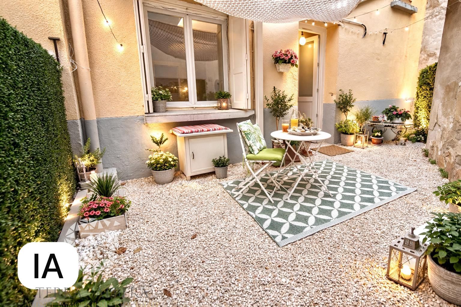oUn T2 de 31 m2 en rez-de-chaussée avec chambre séparée, salle d'eau et jardin privatif de 16 m2