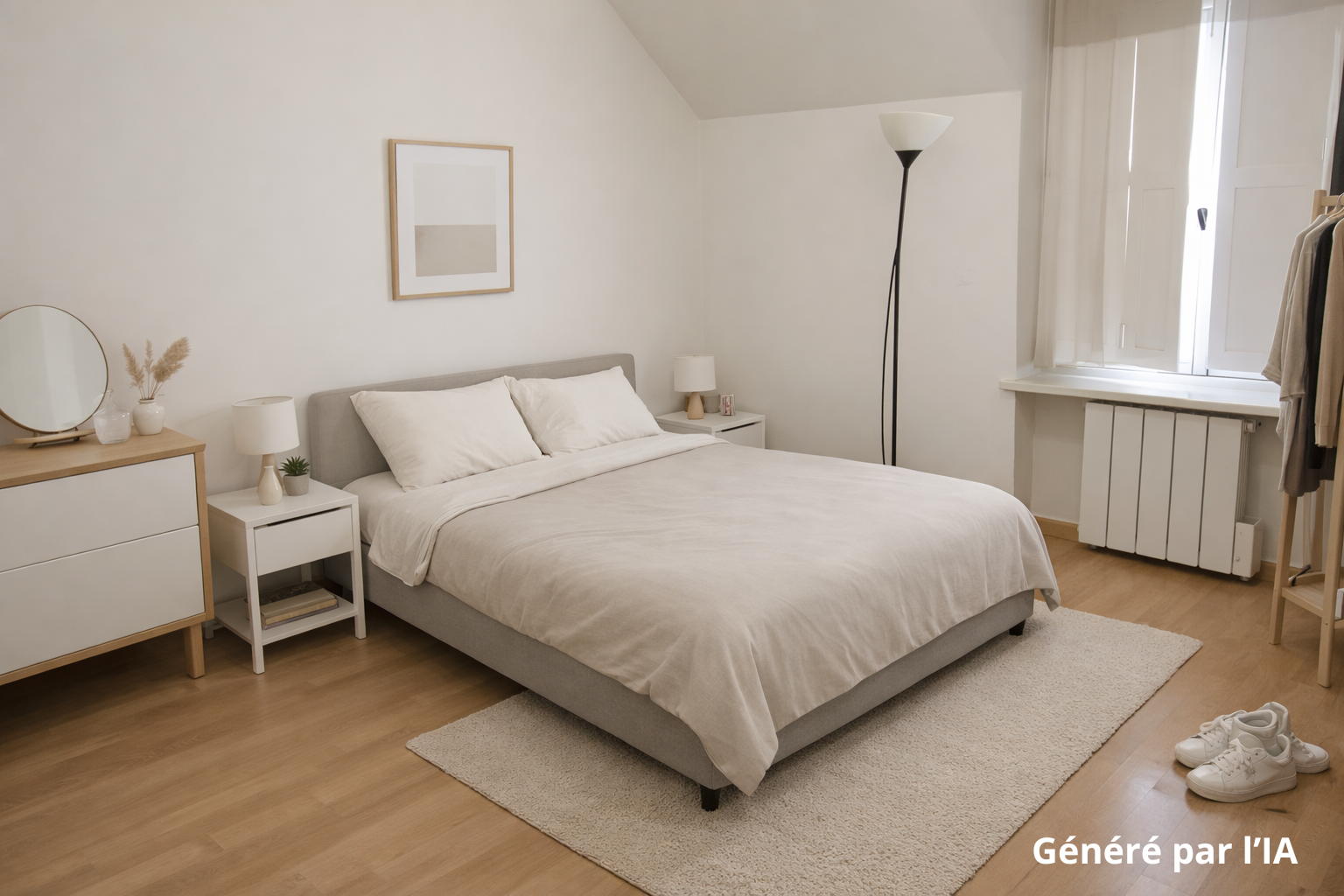 Il se compose d'une entrée, d'une cuisine séparée, d'un salon séjour, de deux chambres, et d'une salle de bains avec toilettes séparées.