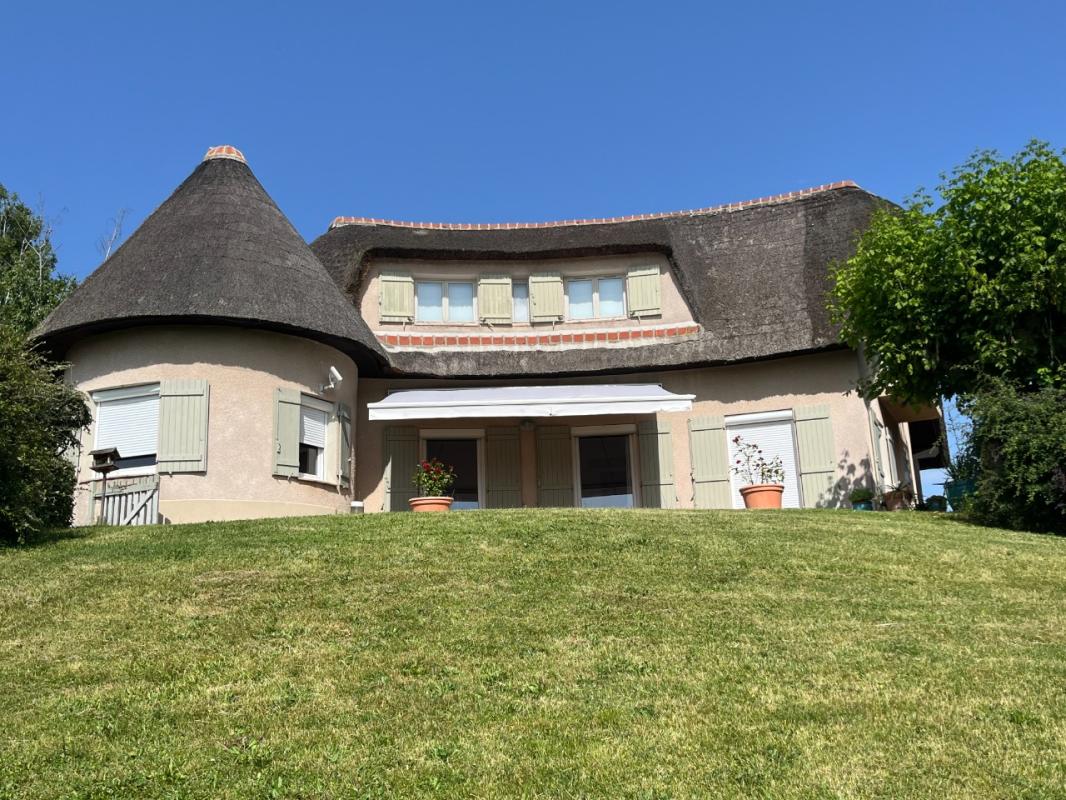 Baignée de lumière, cette chaumière dispose au rez de chaussée d'un vaste séjour de 45 m2 ouvrant sur terrasse ouest, cuisine équipée, une chambre en suite , à l'étage mezzanine avec coin salon , 2 chambres avec point d'eau, salle de bains, wc.