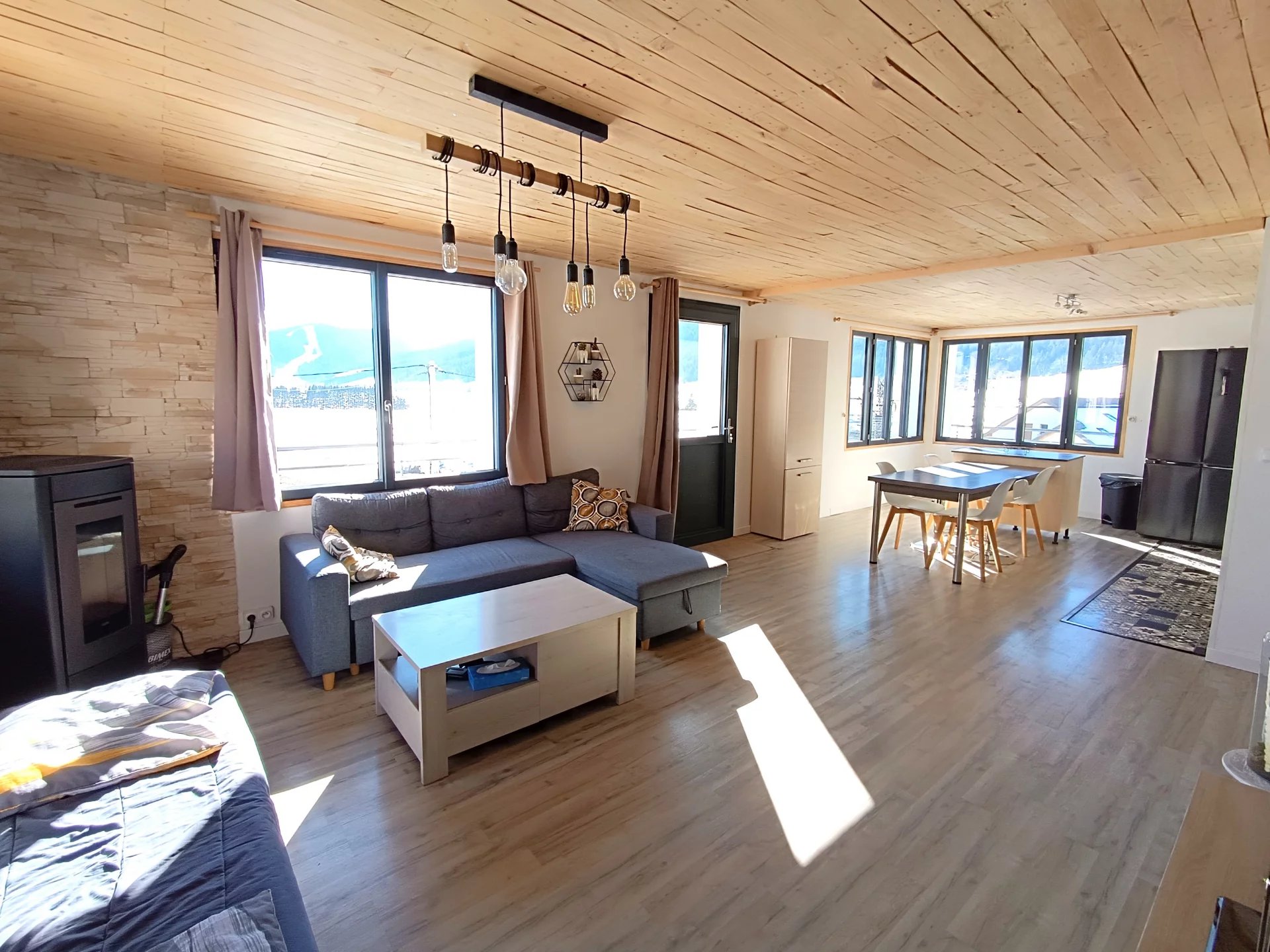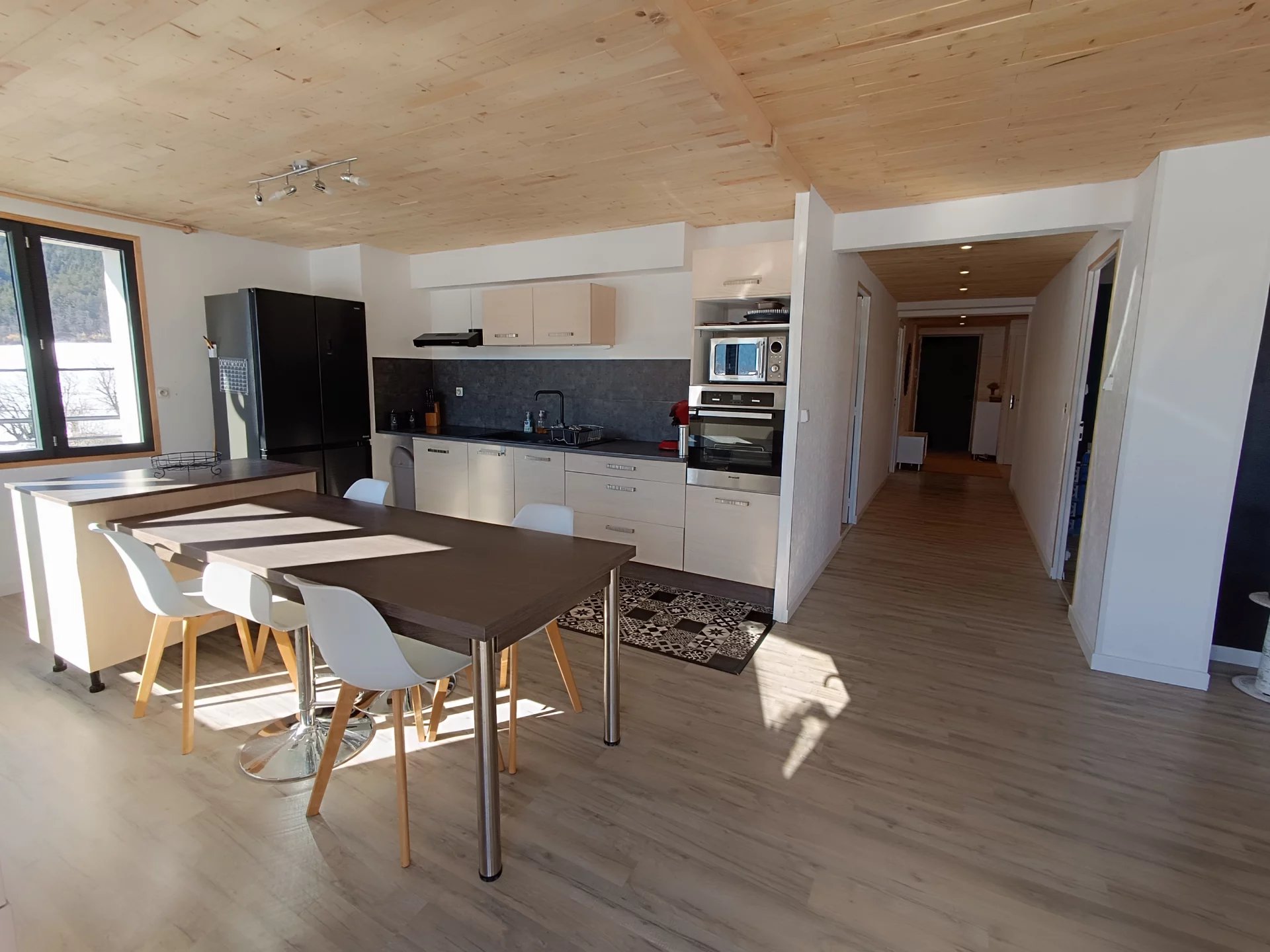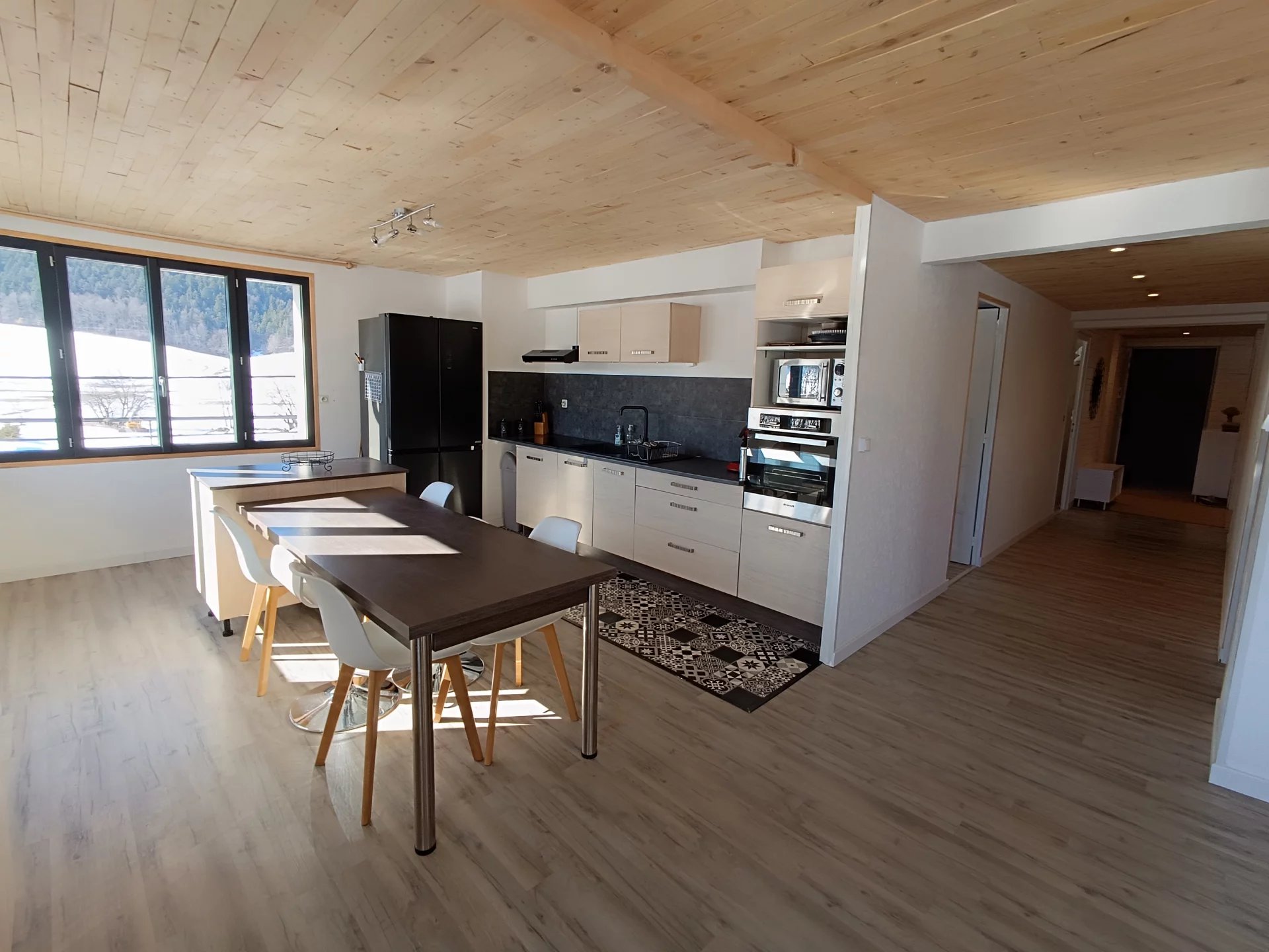 Autrans Méaudre en Vercors (38112) . ESPACE IMMO 38 ( Karine o6 01 07 02 55 )vous propose à la vente ce spacieux appartement de plus de 113m2 ,avec garage ,stationnement et cellier . Situé au 2ème étage d'une petite copropriété de 6 lots ,cet appartement lumineux, chaleureux et fonctionnel bénéficie de nombreux avantages : -Belle vue montagnes -Proximité des pistes de ski de fond et voie douce -De beaux espaces -Une triple exposition (Sud, Est et Ouest ) -De nombreux espaces de rangement. -Garage d'environ 20m2 plus grand cellier sur palier -Grand balcon -Un DPE en C notamment grâce à une isolation extérieure . Il se compose d'une entrée très spacieuse ,d'une petite buanderie ,d'un bureau ,de 3 grandes chambres dont une avec balcon ,d'une salle de douche fonctionnelle ,d'un wc séparé et d'un beau séjour avec cuisine équipée de plus de 31m2,donnant sur balcon Sud . Cette pièce est baignée de lumière grâce à ses grandes fenêtres ( double vitrage à isolation renforcée). les ouvertures donnent sur les montagnes ,offrant une très belle vue dégagée . L'appartement est chauffé principalement grâce à un poêle à granulés tout neuf et des radiateurs électriques récents. Les charges de copropriété sont faibles ( Environ 955€/an ou 80€/mois ). Taxe foncière : 1205€ /an Idéal pour famille ! N'hésitez pas à me contacter si vous souhaitez obtenir plus de renseignements ! PRIX de vente 309.000€ honoraires agence inclus à la charge du vendeur . Une procédure est actuellement en cours dans la copropriété et les documents concernant cette dernière sont tenus à disposition . Cette annonce immobilière a été rédigée par Karine GOYOT , agent commerciale mandataire immobilier immatriculée au RSAC de Grenoble sous le numéro 415296797. Les informations sur les risques auxquels est exposé ce bien sont disponible sur Géorisques : www://géorisques.gouv.fr