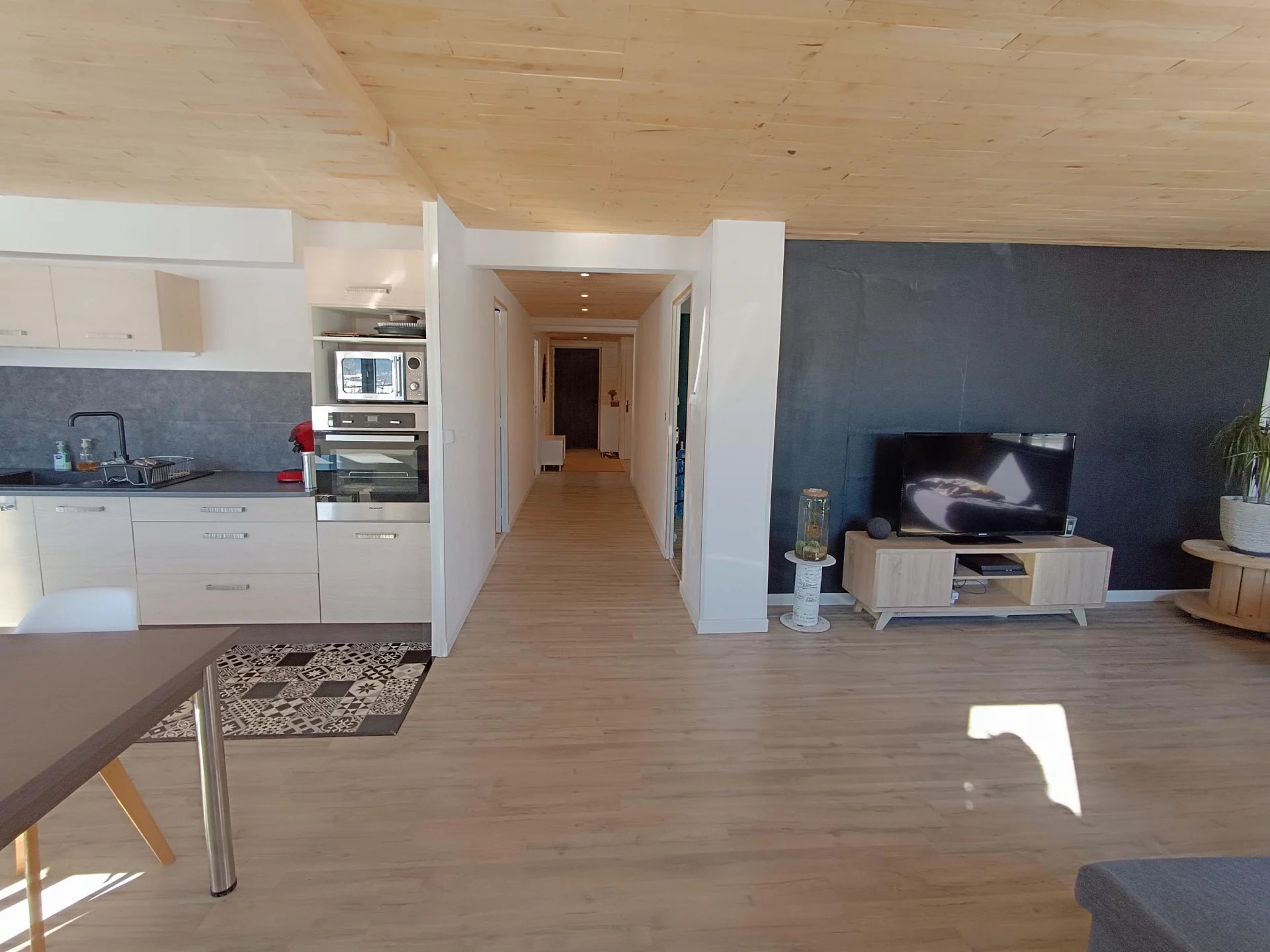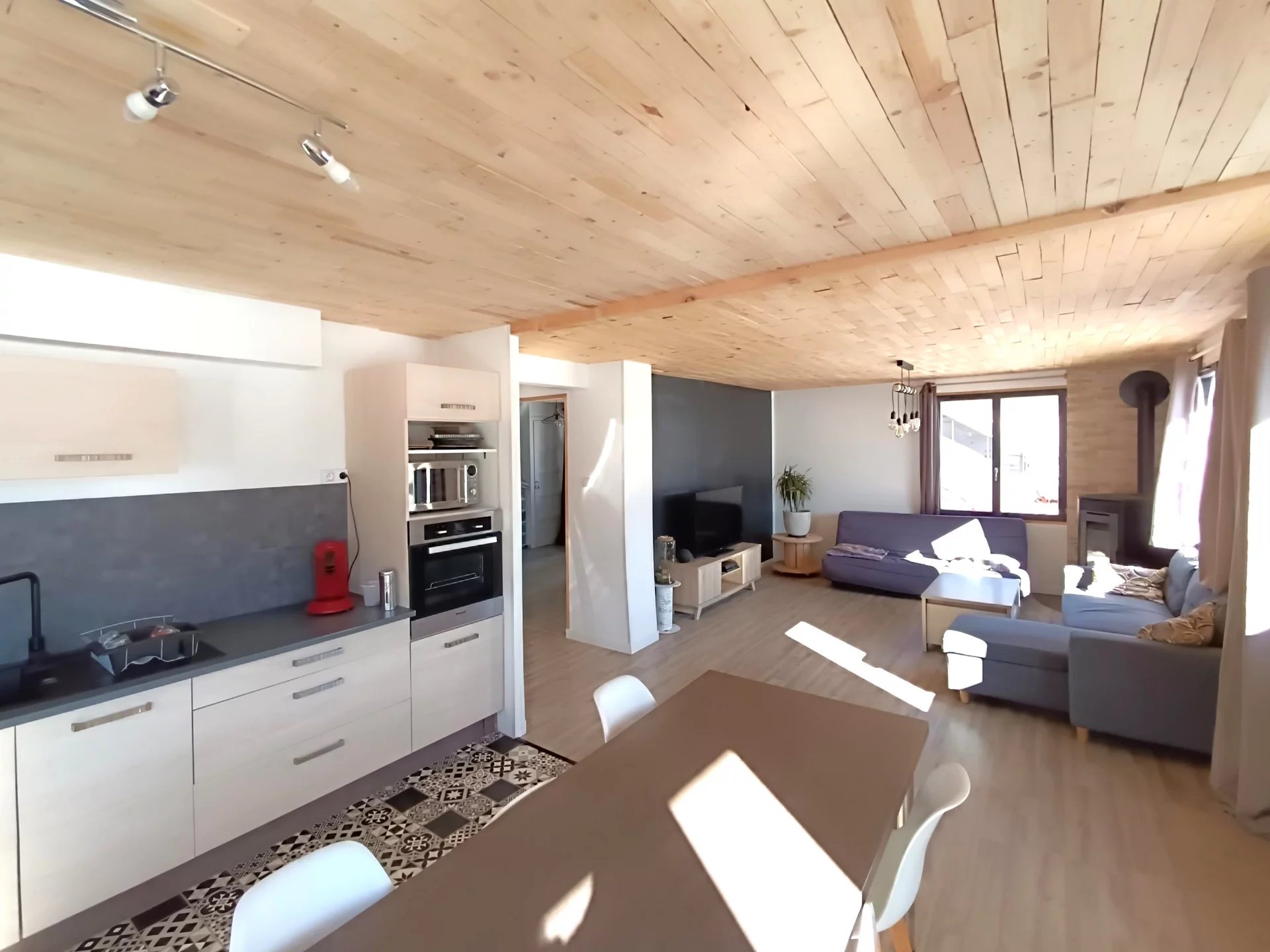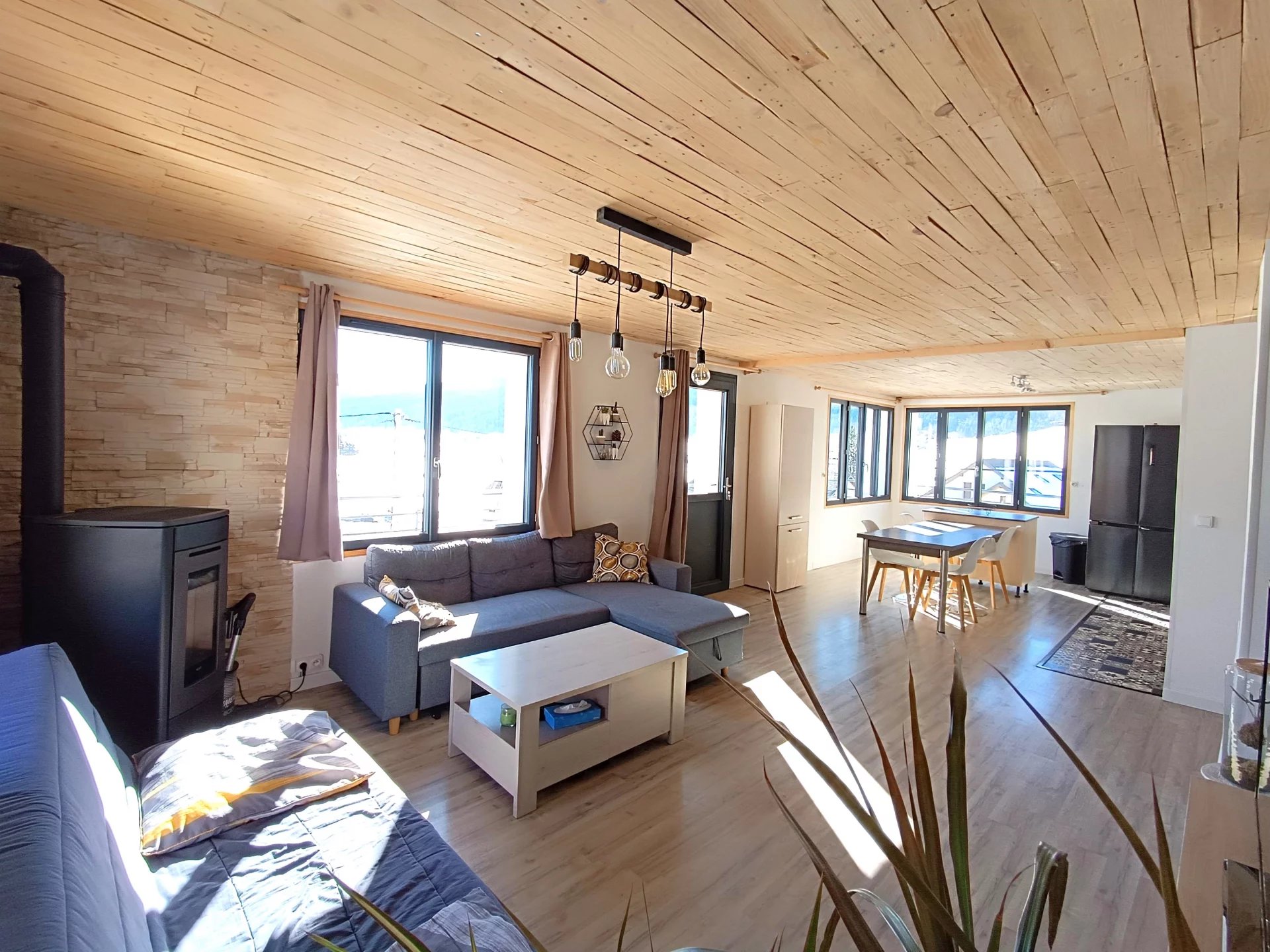 Autrans Méaudre en Vercors (38112) . ESPACE IMMO 38 ( Karine o6 01 07 02 55 )vous propose à la vente ce spacieux appartement de plus de 113m2 ,avec garage ,stationnement et cellier . Situé au 2ème étage d'une petite copropriété de 6 lots ,cet appartement lumineux, chaleureux et fonctionnel bénéficie de nombreux avantages : -Belle vue montagnes -Proximité des pistes de ski de fond et voie douce -De beaux espaces -Une triple exposition (Sud, Est et Ouest ) -De nombreux espaces de rangement. -Garage d'environ 20m2 plus grand cellier sur palier -Grand balcon -Un DPE en C notamment grâce à une isolation extérieure . Il se compose d'une entrée très spacieuse ,d'une petite buanderie ,d'un bureau ,de 3 grandes chambres dont une avec balcon ,d'une salle de douche fonctionnelle ,d'un wc séparé et d'un beau séjour avec cuisine équipée de plus de 31m2,donnant sur balcon Sud . Cette pièce est baignée de lumière grâce à ses grandes fenêtres ( double vitrage à isolation renforcée). les ouvertures donnent sur les montagnes ,offrant une très belle vue dégagée . L'appartement est chauffé principalement grâce à un poêle à granulés tout neuf et des radiateurs électriques récents. Les charges de copropriété sont faibles ( Environ 955€/an ou 80€/mois ). Taxe foncière : 1205€ /an Idéal pour famille ! N'hésitez pas à me contacter si vous souhaitez obtenir plus de renseignements ! PRIX de vente 309.000€ honoraires agence inclus à la charge du vendeur . Une procédure est actuellement en cours dans la copropriété et les documents concernant cette dernière sont tenus à disposition . Cette annonce immobilière a été rédigée par Karine GOYOT , agent commerciale mandataire immobilier immatriculée au RSAC de Grenoble sous le numéro 415296797. Les informations sur les risques auxquels est exposé ce bien sont disponible sur Géorisques : www://géorisques.gouv.fr