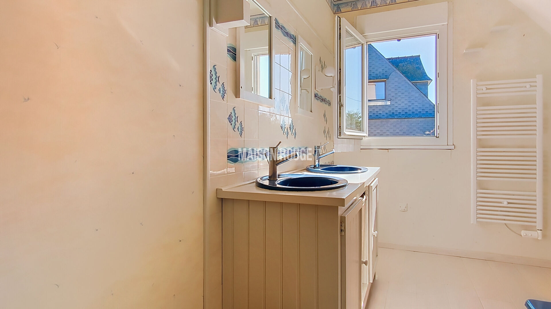 Maison néo-bretonne avec vue rivière à La Roche Jaune L'agence Maison Rouge Tréguier vous propose à la vente cette authentique maison néo-bretonne idéalement située à La Roche Jaune, charmant petit port de pêche et ostréicole réputé pour sa cabane à huîtres et son atmosphère maritime préservée, offrant un cadre de vie rare entre rivière, nature et littoral. Édifiée sur un terrain généreux de 1 150 m², cette maison développe environ 125 m² habitables et séduit immédiatement par son environnement paisible et sa vue dégagée sur la rivière avec une exposition Est, idéale pour profiter pleinement de la lumière du matin et des levers de soleil sur l'eau. Le sous-sol semi-enterré accueille un garage, une buanderie ainsi qu'un atelier, offrant un espace fonctionnel et appréciable pour le rangement, le bricolage ou les activités nautiques à proximité immédiate du port. Au premier niveau, la maison dévoile une grande pièce de vie chaleureuse agrémentée d'un poêle, baignée de lumière grâce à de larges baies vitrées ouvertes sur la rivière, créant une véritable connexion entre l'intérieur et le paysage. La cuisine séparée permet une organisation conviviale et indépendante. Une chambre avec sa salle d'eau privative complète ce niveau. Le second étage propose trois chambres supplémentaires, une salle de bain ainsi qu'un espace mezzanine lumineux et cosy, parfait pour un coin lecture, un bureau ou un espace détente . Le chauffage est assuré par un système électrique en complément du poêle. L'assainissement est individuel et non conforme. Un léger rafraîchissement est à prévoir, laissant l'opportunité de personnaliser les espaces et de révéler tout le potentiel de cette maison au caractère typiquement breton. Cette propriété conviendra parfaitement à une résidence principale familiale, à une maison de vacances au bord de l'eau ou à un projet de résidence secondaire dans un environnement authentique et recherché des Côtes-d'Armor. Pour plus de renseignements ou pour organiser une visite, contactez nous. Prix : 415 960 euros Valérie ALCALAY (EI) Agent Commercial - Numéro RSAC : 813 879 905 - SAINT BRIEUC.