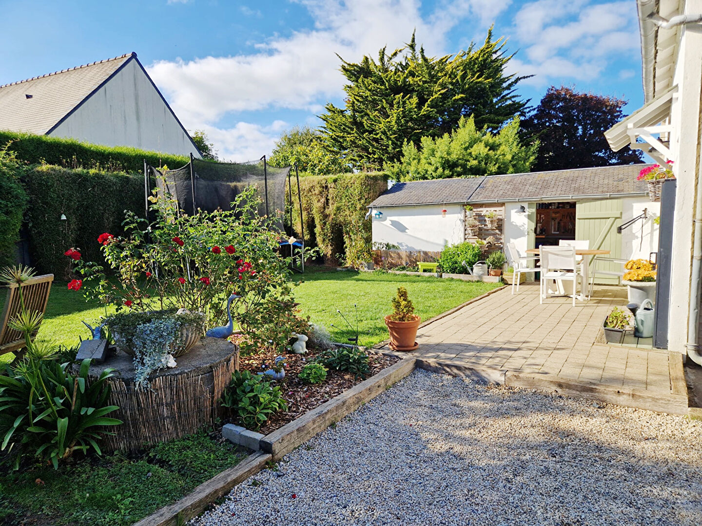 A VENDRE, PORDIC, 600m du bourg et 10mn plage, belle maison de caractère sur 535m2 de terrain clos et arboré, comprenant : entrée, salon/séjour avec poêle, cuisine indépendante aménagée et équipée avec coin repas, ouvrant sur terrasse et jardin au S/O, wc; au 1er étage : palier, 2 belles chambres, salle de bains avec wc; au 2ème : palier, 2 chambres, salle d'eau avec wc, grenier, en dépendances : un abri jardin, un bucher et 2 stationnements sur cour fermée, BELLE RÉNOVATION, CALME et ENSOLEILLÉE, CHARME. (3.99 % honoraires TTC à la charge de l'acquéreur.)