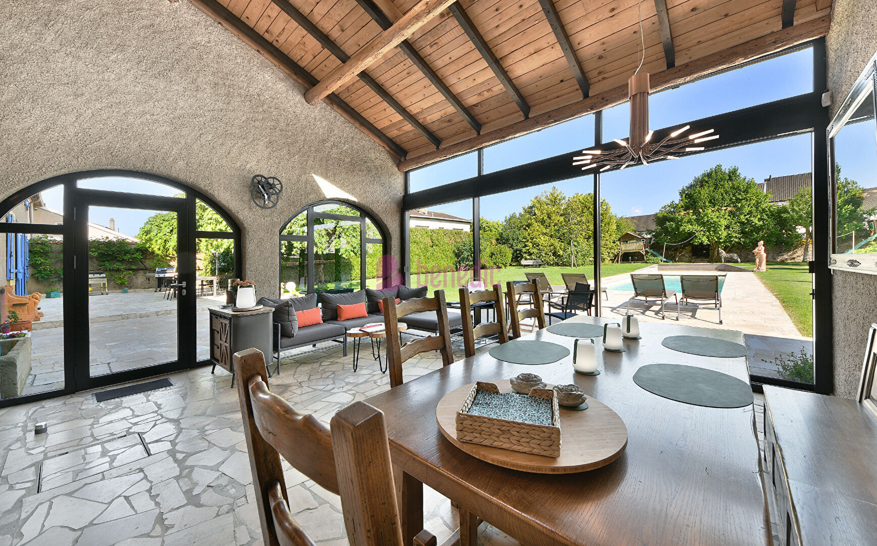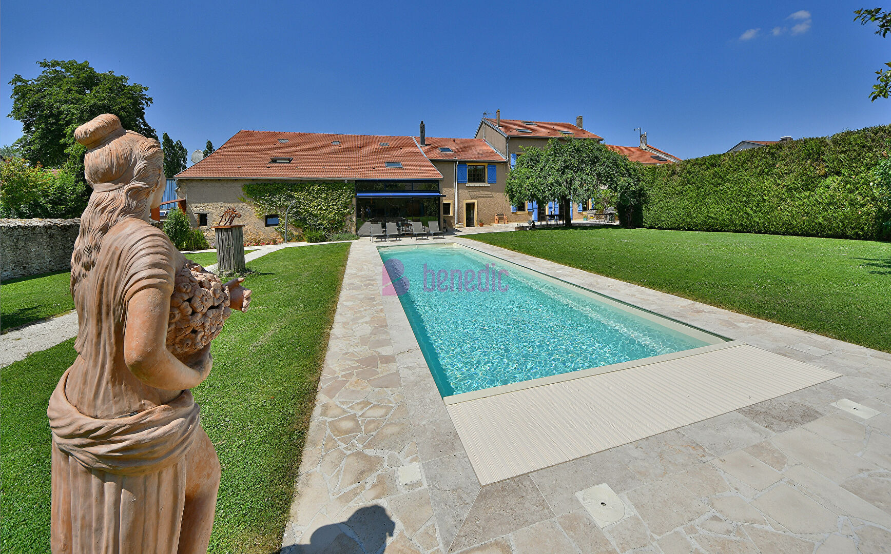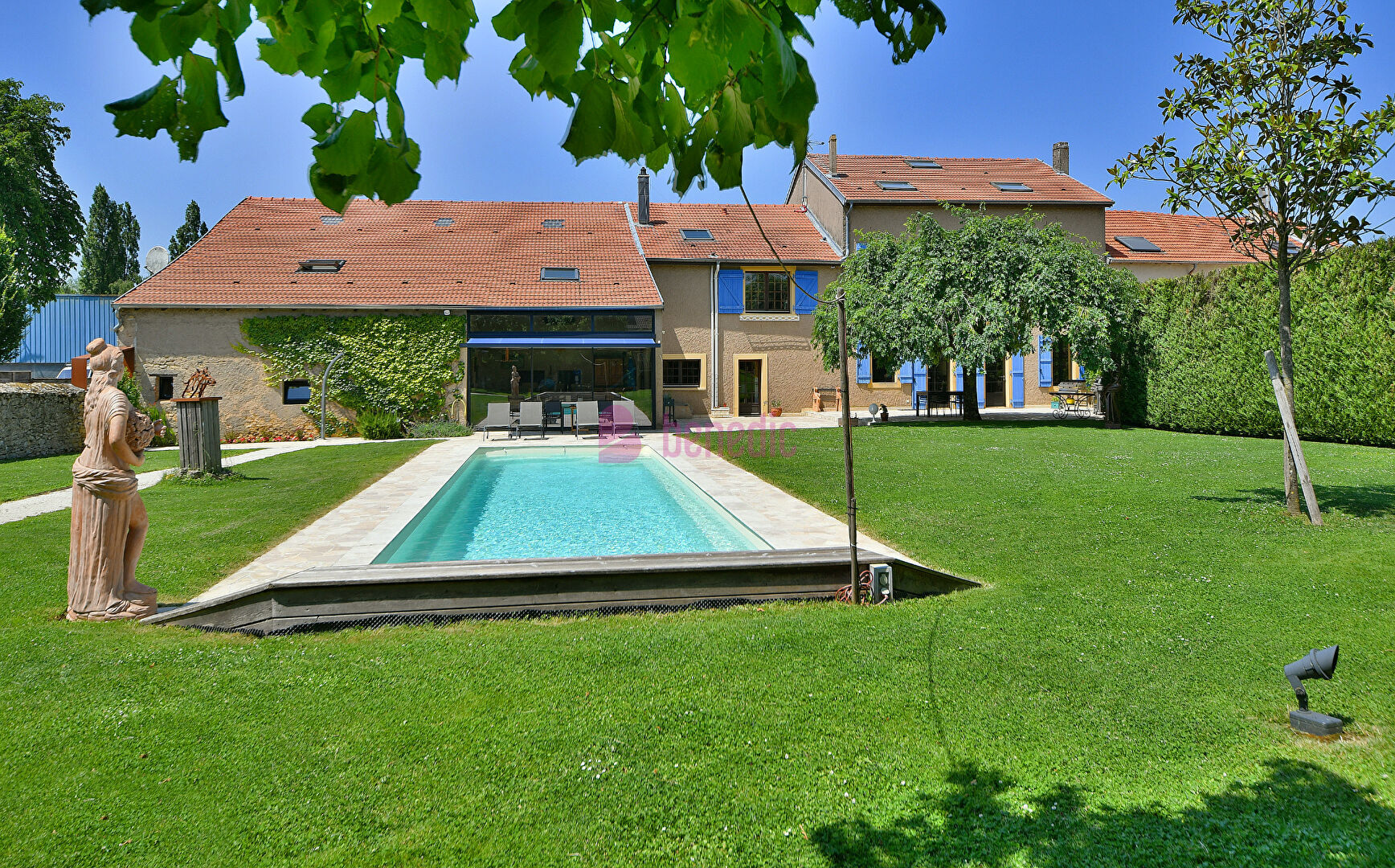 A seulement quelques minutes de Metz et proche du Luxembourg, au coeur du charmant village de Gravelotte, cette propriété d'exception prend place sur un terrain de 24 ares. Ancienne bâtisse entièrement réhabilitée, elle offre 365m² de surface habitable où authenticité et modernité se mêlent harmonieusement. Avec son vaste jardin paysagé, sa piscine et ses nombreuses possibilités d'aménagement, cette demeure s'adresse aux personnes en quête d'un cadre de vie privilégié. Dès l'entrée, un hall spacieux accueille un espace bureau et mène vers une pièce de vie en enfilade composée d'un salon et d'une salle à manger baignés de lumière. Une cuisine séparée aux finitions soignées préserve le charme de l'ancien avec ses éléments en bois et son agencement convivial. Ce niveau dispose également de deux WC, d'une salle d'eau et d'une buanderie fonctionnelle. Amoureux d'équitation, en prolongement, une extension abrite une cuisine d'été donnant accès aux anciennes écuries pouvant accueillir jusqu'à 9 chevaux ainsi qu'à une salle de sport. Cet espace offre un potentiel d'aménagement unique, idéal pour une activité professionnelle ou un projet de réhabilitation sur mesure. A l'étage, la suite parentale bénéficie de sa propre salle de bain avec baignoire et douche. Deux autres chambres se partagent une élégante salle d'eau. Sous les toits, le dernier niveau dévoile une surface mansardée de 100 m², actuellement aménagée en bibliothèque, mais pouvant être repensée selon les envies et les besoins (possibilité de 3 chambres, une salle d'eau et WC). A l'extérieur, le jardin arboré et paysagé offre un cadre verdoyant et intimiste, rythmé par de nombreux espaces de détente. La piscine s'intègre parfaitement dans ce décor naturel, tandis qu'un terrain de pétanque vient compléter ces lieux propices à la convivialité. Une véranda climatisée permet de profiter pleinement de la vue sur le jardin en toute saison, prolongeant ainsi agréablement les espaces de vie. Un appartement indépendant, composé d'un séjour avec vue sur le jardin, d'une cuisine équipée, d'une chambre, une salle d'eau avec WC et d'une mezzanine (pouvant faire chambre ou bureau), vient parfaire ce bien aux multiples atouts. Idéal pour loger des invités en toute autonomie ou envisager un projet locatif. Alliant volumes généreux, cachet et modularité, cette propriété représente une opportunité rare sur le marché. Une demeure où chaque espace a été pensé pour conjuguer confort, élégance et possibilités d'aménagement. Points + : - Cadre idyllique - A 10 minutes de Metz - Volumes et possibilités d'aménagement multiples. - DPE : C - Espaces d'équitation privé Pour plus d'informations, Contactez-moi! Romain (5.26 % honoraires TTC à la charge de l'acquéreur.)