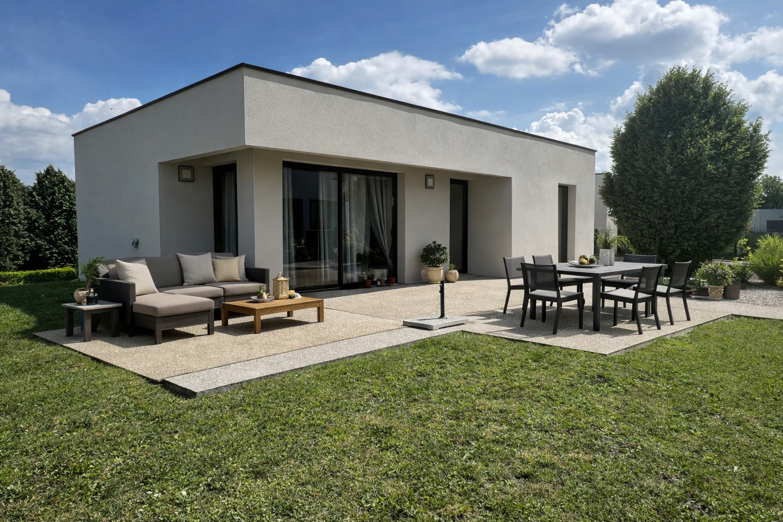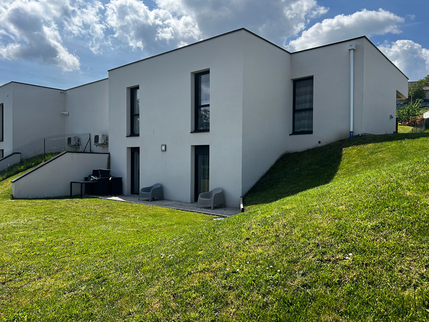 Rare sur la marché !!! Maison de 2019, aux lignes contemporaines dans secteur résidentiel proche de toutes commodités. Composée au premier niveau d'une pièce de vie lumineuse de 50 m² avec cuisine ouverte et accès de plain pied à une très belle terrasse, deux chambres (12m²) avec placard, une salle de bain et un wc indépendant. Second niveau disposant de deux autres chambres (11 m²) avec placard, accès direct au jardin et une salle d'eau/wc. Garage de 21m² et emplacement de stationnement complète la description. Jardin entièrement clos de 550m². Chauffage avec pompe à chaleur ( coût à l'année pour le chauffage et la production d'eau chaude entre 760 et 1090 Euros). Menuiserie alu et volants roulants motorisés. Profitant d'un emplacement stratégique tant pour le calme, les transports ou les services, cette belle maison saura vous charmer par ses nombreux atouts.