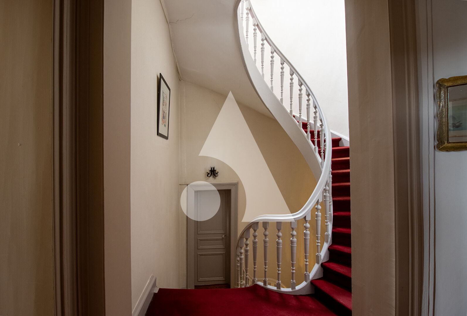 VALENCIENNES | PROPRIÉTÉ BOURGEOISE D'EXCEPTION 357 m² Située dans l'un des secteurs les plus prisés de Valenciennes , cette remarquable maison individuelle édifiée en 1903 développe 357 m² habitables au coeur d'une superbe parcelle ensoleillée, à l'abri des regards. Derrière sa façade culminant à 17 mètres de hauteur, cette demeure de caractère conjugue avec élégance le cachet de l'architecture bourgeoise et des prestations haut de gamme. Les volumes y sont rares : 4 mètres de hauteur sous plafond sur l'ensemble de la maison, moulures, proportions harmonieuses et matériaux nobles confèrent à l'ensemble une présence et une distinction incomparables. L'entrée, spectaculaire, s'étend sur 25 m² et affirme immédiatement le standing du lieu. La double distribution indépendante permet d'envisager aisément l'installation d'une activité libérale ou professionnelle, avec la possibilité d'un bureau bénéficiant d'un accès privatif. Les pièces de réception offrent des volumes généreux et une grande fluidité. Le salon-séjour de 40 m², baigné de lumière, peut s'ouvrir sur un somptueux bureau de 25 m² doté d'une bibliothèque monumentale sur mesure. Une vaste cuisine familiale, élégamment aménagée, s'ouvre directement sur une magnifique terrasse carrelée de 75 m², véritable prolongement extérieur des espaces de vie, idéale pour recevoir dans un cadre privilégié. L'espace nuit propose cinq chambres aux dimensions remarquables, dont une suite parentale d'environ 40 m² avec salle de bain. Une chambre de 22 m² complète cet ensemble, tandis que les autres chambres développent entre 13 et 18 m², offrant confort et intimité. A l'extérieur, les espaces parfaitement exposés profitent d'un ensoleillement optimal. Un garage motorisé d'environ 33 m² permet d'accueillir aisément deux véhicules. Cette propriété rare, entièrement individuelle, s'adresse aux amateurs de biens d'exception recherchant volumes, élégance et emplacement stratégique. Dossier complet, photographies et informations complémentaires sur demande. SIMON LIBOUR 07 81 40 37 13 Simon LIBOUR (EI) Agent Commercial - Numéro RSAC : 953500980 - Valenciennes.