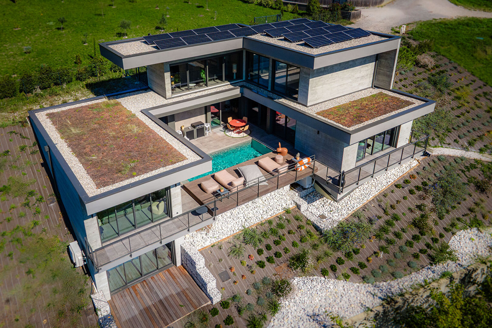 Exclusivité - Villa contemporaine avec vue panoramique A seulement 8 minutes du centre-ville de Chambéry, sur les hauteurs, découvrez cette superbe villa contemporaine de 175 m² habitables et plus de 100 m² d'annexes, offrant une vue imprenable sur les montagnes environnantes. Conçue avec des matériaux haut de gamme et pensée pour nécessiter peu d'entretien, elle propose un espace de vie moderne et fonctionnel. Le niveau principal se compose d'une cuisine ouverte sur un vaste salon-séjour de 65m2 baigné de lumière, donnant accès à une terrasse avec piscine et vue panoramique, ainsi qu'une suite parentale avec salle d'eau et WC. En rez-de-jardin, vous trouverez une seconde suite avec salle d'eau, une cave aménagée, une buanderie, une chaufferie, un vaste dressing et le local technique de la piscine. Un garage double et une cour privative complètent ce bien d'exception. La villa peut être proposée entièrement meublée et décorée, pour une installation immédiate. Un cadre unique, une vue à couper le souffle, et un confort clé en main. François Picollier (EI) Agent Commercial - Numéro RSAC : 841 755 416 - Chambery.