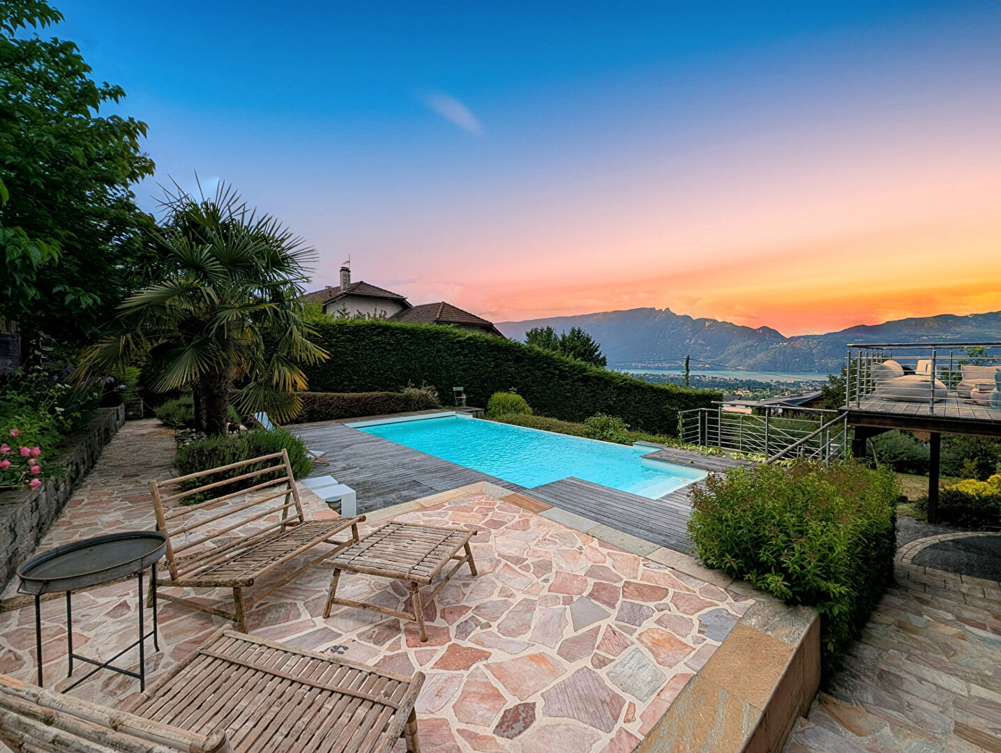 Chalet d'exception avec vue panoramique sur le lac et les montagnes. Situé sur les hauteurs d'Aix-les-Bains, dans le charmant village de Pugny-Chatenod, ce chalet de 220 m², érigé sur un terrain constructible de 1700 m², offre un cadre de vie unique avec une vue imprenable sur le lac et les montagnes environnantes. Des espaces généreux et lumineux : Niveau de vie : Une pièce à vivre spacieuse et lumineuse de 70 m², idéale pour des moments conviviaux, avec une cuisine contemporaine entièrement équipée. Deux terrasses indépendantes orientées côté lac prolongent cet espace, offrant des vues spectaculaires. Une chambre, un WC et une salle d'eau complètent ce niveau. Étage supérieur : Une vaste suite parentale avec espace bureau, parfaite pour combiner confort et fonctionnalité. Sous-sol complet et pratique : Un garage spacieux, une chambre supplémentaire, un WC et de nombreux espaces de rangement se trouvent au sous-sol, répondant à tous vos besoins pratiques. L'aménagement bien pensé du terrain vous fait bénéficier d'une parking pour véhicule, de nombreuses terrasse, d'une chalet de jardin et d'une belle piscine 8x4m sans vis à vis. Un cadre rare et privilégié : Ce chalet, mêlant charme naturel et confort moderne, bénéficie d'une localisation exceptionnelle, offrant tranquillité, luminosité et une vue panoramique. François Picollier (EI) Agent Commercial - Numéro RSAC : 841 755 416 - Chambery.