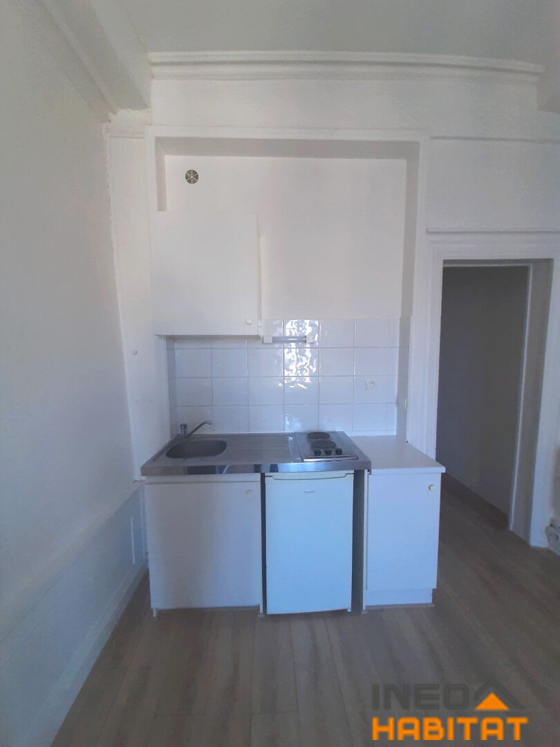 Au 3ème étage sans ascenseur d'un immeuble de caractère, un studio comprenant: Une entrée, une pièce principale avec cheminée décorative, kitchenette équipée (plaques, réfrigérateur, meubles), une salle d'eau avec placard, WC. Chauffage individuel électrique, eau froide collective (compris dans provisions sur charges). Disponible le 01/04/2026 - NOUVELLE VERSION : DPE : CLASSE ENERGIE : E - CLASSE CLIMAT : C - Montant estimé des dépenses annuelles d'énergie pour un usage standard : Entre 710 euros et 1000 euros (prix moyen des énergies indexées en 2021, 2022, 2023). Loyer mensuel 512 euros dont provision sur charges (régularisation annuelle): 30 euros (copropriété dont eau froide collective) DG : 482 euros. Honoraires à la charge du locataire : 244 euros dont 56 euros TTC pour l'état des lieux d'entrée. Les informations sur les risques auxquels ce bien est exposé sont disponibles sur le site Géorisques : https://www.georisques.gouv.fr/