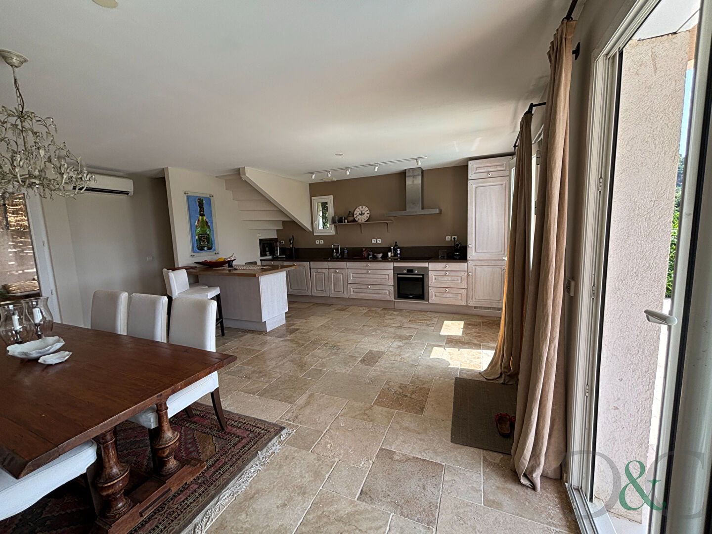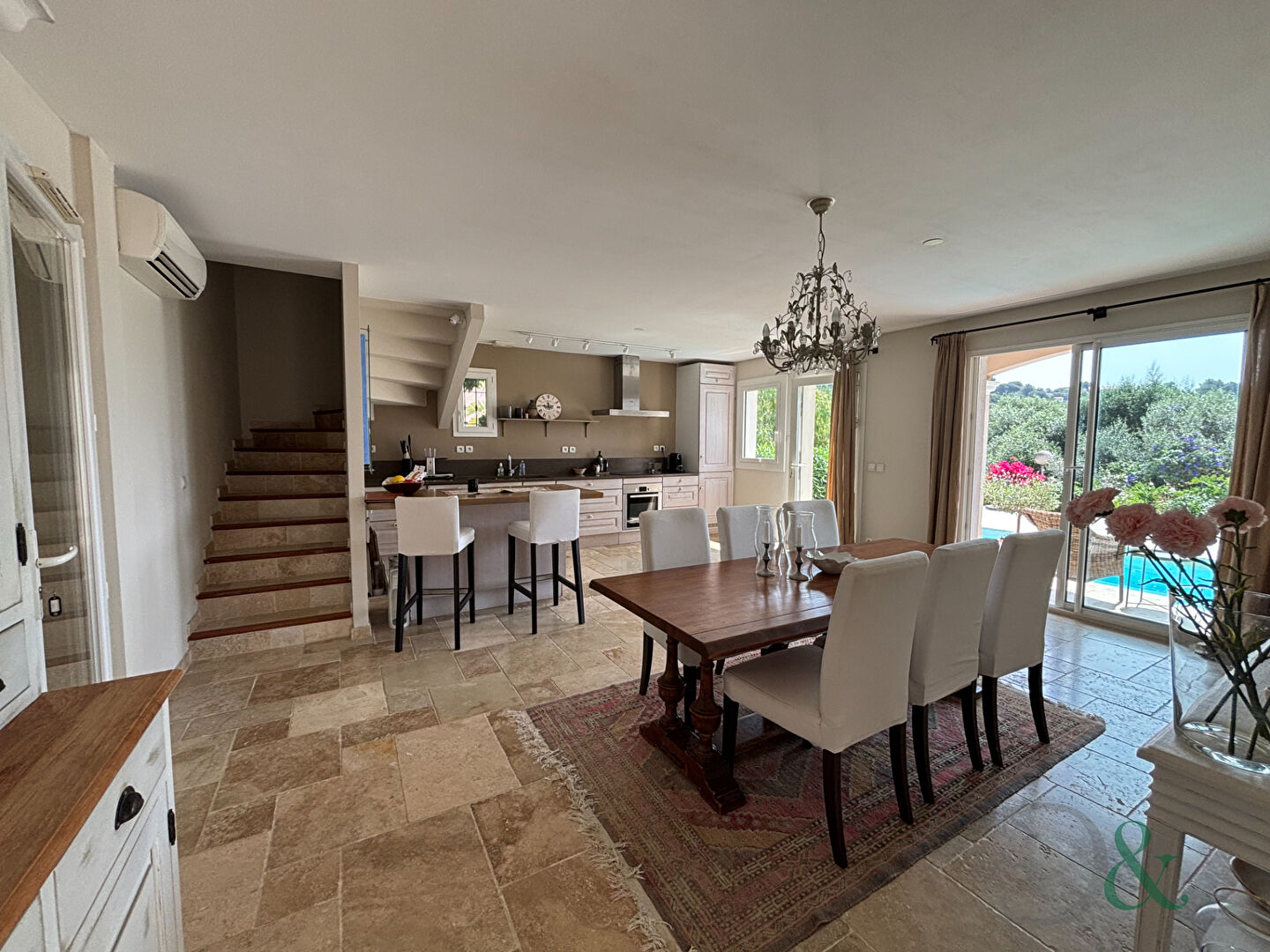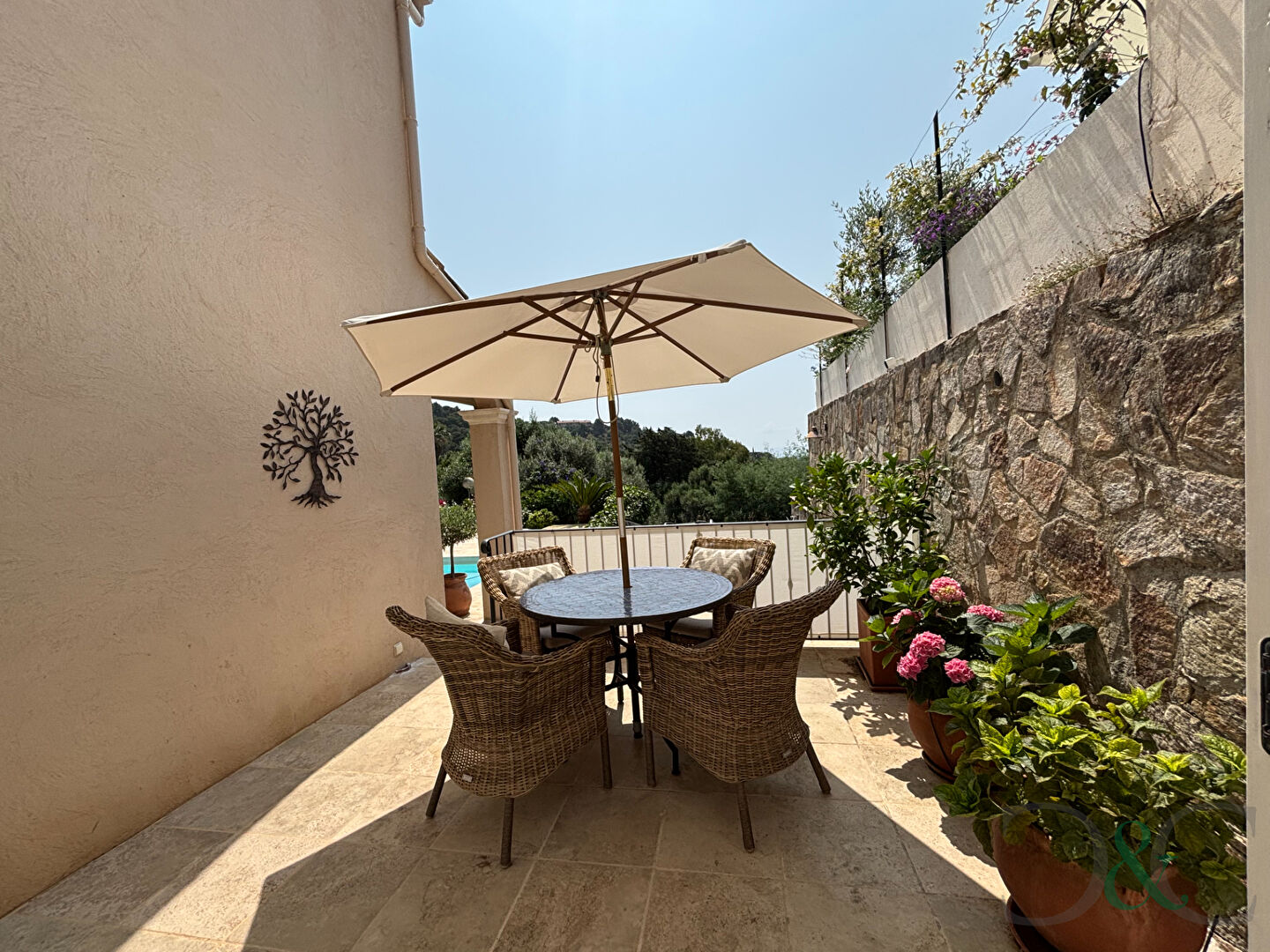 Bormes les Mimosas A vendre. Cette villa récente avec piscine se situe à cinq minutes à pied de tous les commerces du Pin de Bormes, idéalement située pour vivre à l'année. Trés ensoleillée elle offre un bel espace de plain -pied composé de la salle à manger et de la cusine ouverte ainsi que d'un salon attenant avec terrasse. Une chambre d'appoint, des toilettes invités et des rangements completent ce niveau. A l'étage on découvre deux chambres offrant une joile vue mer, des rangements, une salle d'eau et des toilettes . Bel espace exterieur offrant de nombreux espaces de détente autour de la piscine. Parking exterieur avec borne electrique, villa trés bien entretenue et entiérement climatisée sans aucun travaux à prévoir. Cellieret Coates Bormes 0494010201 (4.17 % honoraires TTC à la charge de l'acquéreur.)