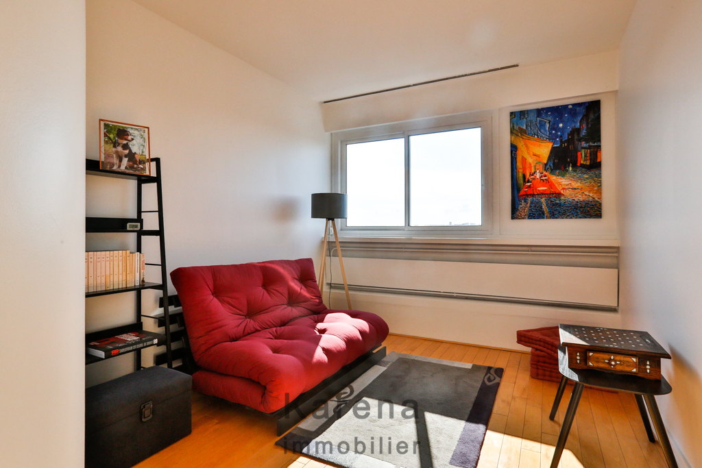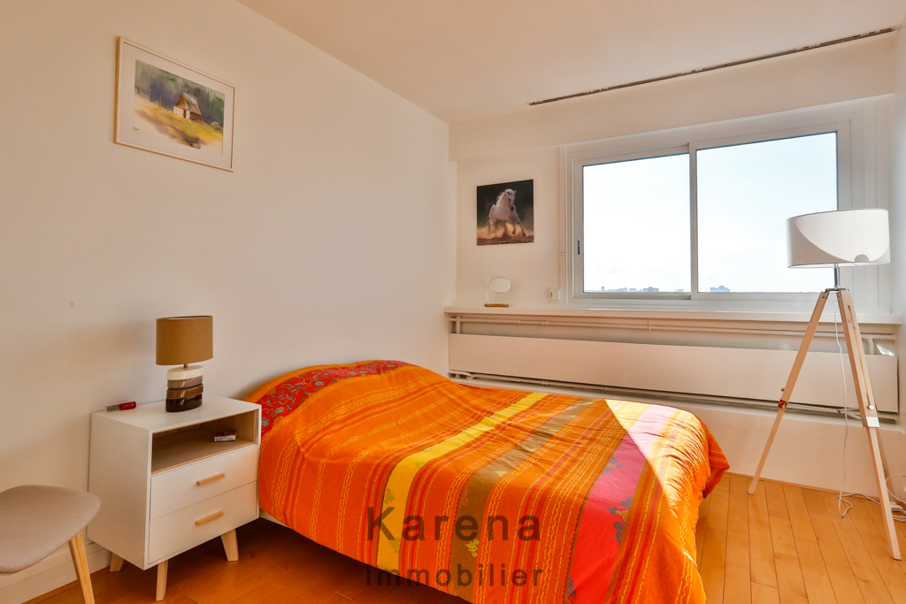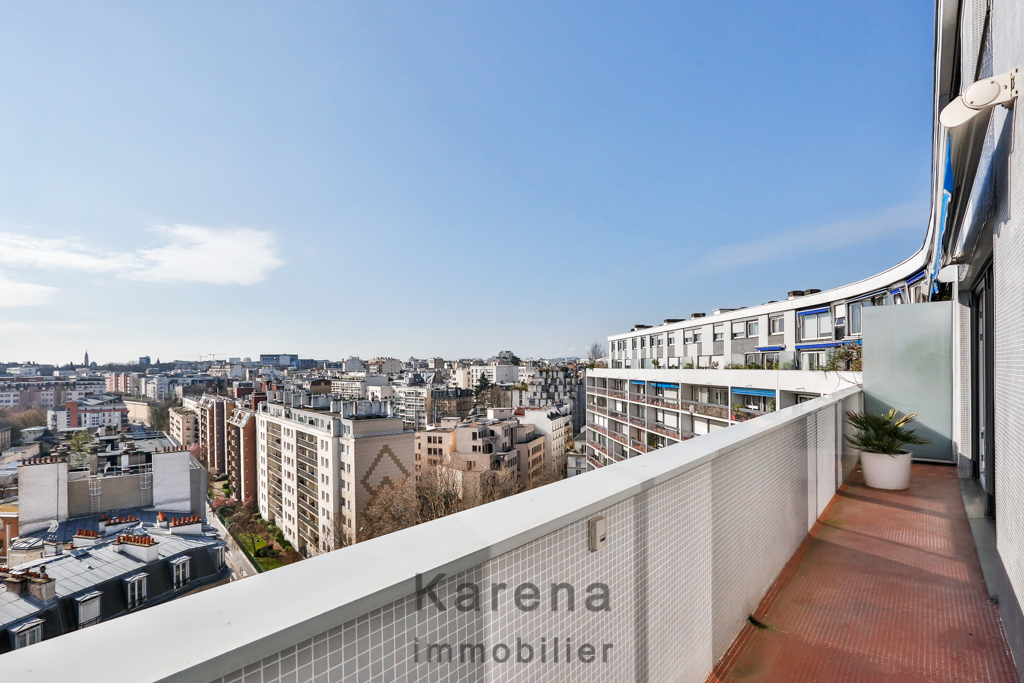 Exclusivité Karena immobilier, proche Denfert-Rochereau, nous vous proposons un appartement en duplex au 12ème et dernier étage plein Sud et sans aucun vis à vis. L'appartement est composé d'une entrée, un séjour ouvrant sur un balcon de 10 m², une cuisine séparée et des WC séparés. Au 13ème étage trois chambres, une salle de bains, une salle d'eau et des WC. Une cave complète ce bien. 3 places de parking sont vendues en sus pour 45000 euros (3.90 % honoraires TTC à la charge de l'acquéreur.) Copropriété de 120 lots. Charges annuelles : 6400 euros.