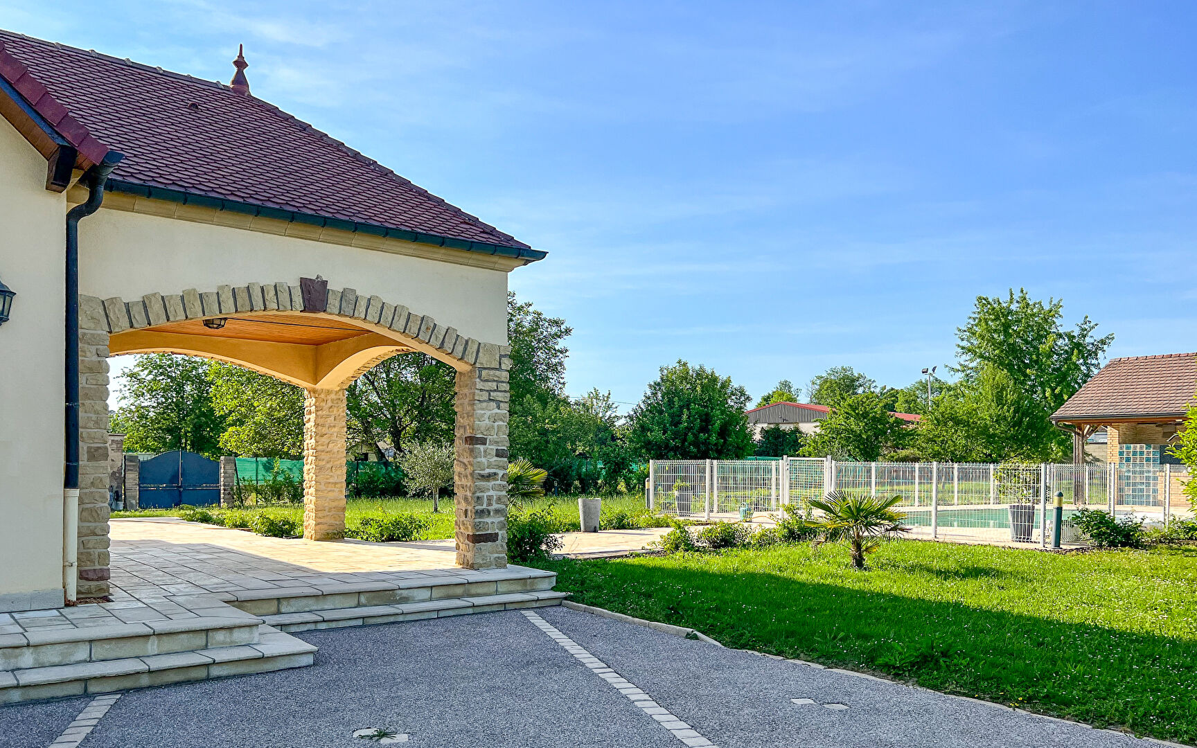 PRESTATIONS D'EXCEPTION POUR CETTE MAISON AVEC PISCINE A JUSSEY Maison de caractère en pierres blanches de Bourgogne de très belle construction (2000) à 30min de VESOUL ou LUXEUIL, sur sous-sol complet et 53 ares de parc. A l'arrière, à l'abri de tout regard, la piscine chauffée vous invite à la détente, autour de son BBQ, en attendant l'été. ENTRE PIERRES BLANCHES ET POUTRES EN CHÊNE Dès le seuil de l'entrée, les pierres blanches extérieures laissent place aux poutres anciennes, carrelages haut-de-gamme et luminosité, à toute heure de la journée. Une superbe cuisine de marque, un salon-séjour avec insert agrémentent ces espaces de vie confortables. Accès extérieur également via la véranda, en rotonde, intégrée au bâti. Chauffage au sol sur l'ensemble de ce rez-de-chaussée. Un bureau, une suite parentale avec wc, salle de bain et 4 autres chambres à l'étage, avec sdb/wc et mezzanine. 180m² au total, pour ces 2 niveaux. Idéal pour une famille. QUAND LES PRESTATIONS JOUENT LA SEDUCTION Prestations de qualité: construction traditionnelle en agglos béton avec armatures; finitions voûtes, murs et encadrements en pierre de Bourgogne; doubles vitrages bois, volets ALU, dalles béton, véranda ALU; poutres et escalier en chêne ancien, chauffage au sol; sous-sol complet avec chaufferie PAC, garage double et portes sectionnelles, coin sauna; petites tuiles écailles pour la toiture. Piscine chauffée PAC électrolyse avec pool house. Four à pain/pizza en briques réfractaires. Terrasse en pierres, avec sa douche extérieure et WC. Le tout sur 5349 m² de terrain clos de mur en pierres, avec portail motorisé. Entrée en pierres banches sculptées. En bout de petite ville de JUSSEY, avec tous commerces, écoles, gare et commodités. Rives de Saône à 500m de la maison. Marina à Port-sur-Saône. A voir rapidement, pour les plus exigeants ! Prix baissé. Sylvie du WELZ (EI) Agent Commercial - Numéro RSAC : 493 231 039 - BESANCON.