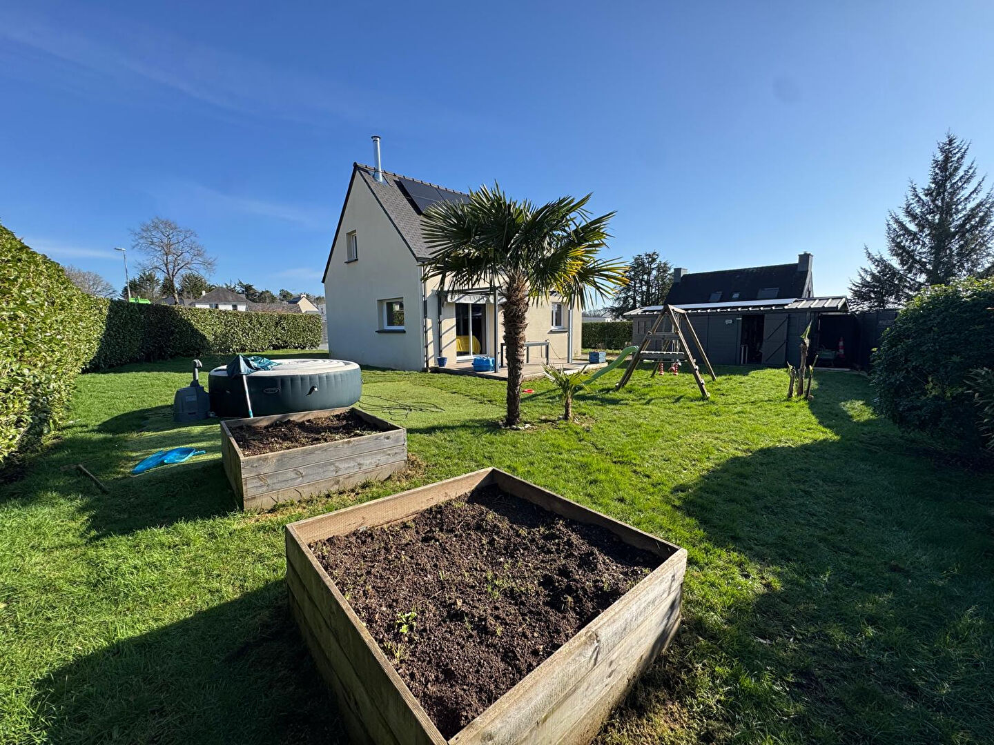 BZH Habitation vous propose en exclusivité cette magnifique maison contemporaine située sur la commune de Sulniac, une commune dynamique et recherchée pour sa qualité de vie. Appréciée pour son tissu associatif actif, ses commerces de proximité et ses écoles, Sulniac offre un cadre de vie idéal pour les familles comme pour les actifs. Vous profitez également d'une situation stratégique avec un accès rapide aux grands axes en direction de Nantes et Rennes, tout en restant à seulement 15 minutes de Vannes et de son bassin d'emploi. Implantée sur un terrain clos, arboré et soigneusement paysager, cette maison récente et parfaitement entretenue séduit dès les premiers instants par ses lignes contemporaines et la qualité de ses prestations. Elle développe une belle pièce de vie lumineuse, ouverte sur une cuisine aménagée et équipée, créant un espace convivial et fonctionnel idéal pour recevoir famille et amis. La terrasse exposée plein sud prolonge naturellement cet espace vers l'extérieur et permet de profiter pleinement des beaux jours dans un environnement calme et agréable. Le rez-de-chaussée propose également une chambre avec placard intégré, une salle d'eau moderne, des WC séparés ainsi qu'un espace buanderie pratique pour une organisation optimale du quotidien. A l'étage, vous découvrirez trois chambres supplémentaires avec placards, parfaitement adaptées à une vie de famille ou à un projet de télétravail, ainsi qu'une salle de bain fonctionnelle. A l'extérieur, la propriété bénéficie d'un grand abri de jardin d'environ 20 m², offrant un espace de stockage confortable pour les équipements, le mobilier de jardin ou les outils. Le terrain entièrement clos garantit sécurité et intimité, tout en proposant un cadre verdoyant et soigné. Cette maison à vendre à Sulniac se distingue également par son installation énergétique de dernière génération avec panneaux solaires couplés à un système de stockage sur batterie, un véritable atout pour maîtriser vos consommations et valoriser votre investissement sur le long terme. Moderne, propre et parfaitement entretenue, cette maison n'attend plus que vos valises et mérite d'être découverte sans tarder. Elle représente une opportunité rare sur le secteur, idéale pour une résidence principale alliant confort, performance énergétique et qualité de vie. Pour plus d'informations ou pour organiser une visite de cette maison en exclusivité à Sulniac, contactez-nous dès maintenant. Les informations sur les risques auxquels ce bien est exposé sont disponibles sur le site Géorisques : www.georisques.gouv.fr