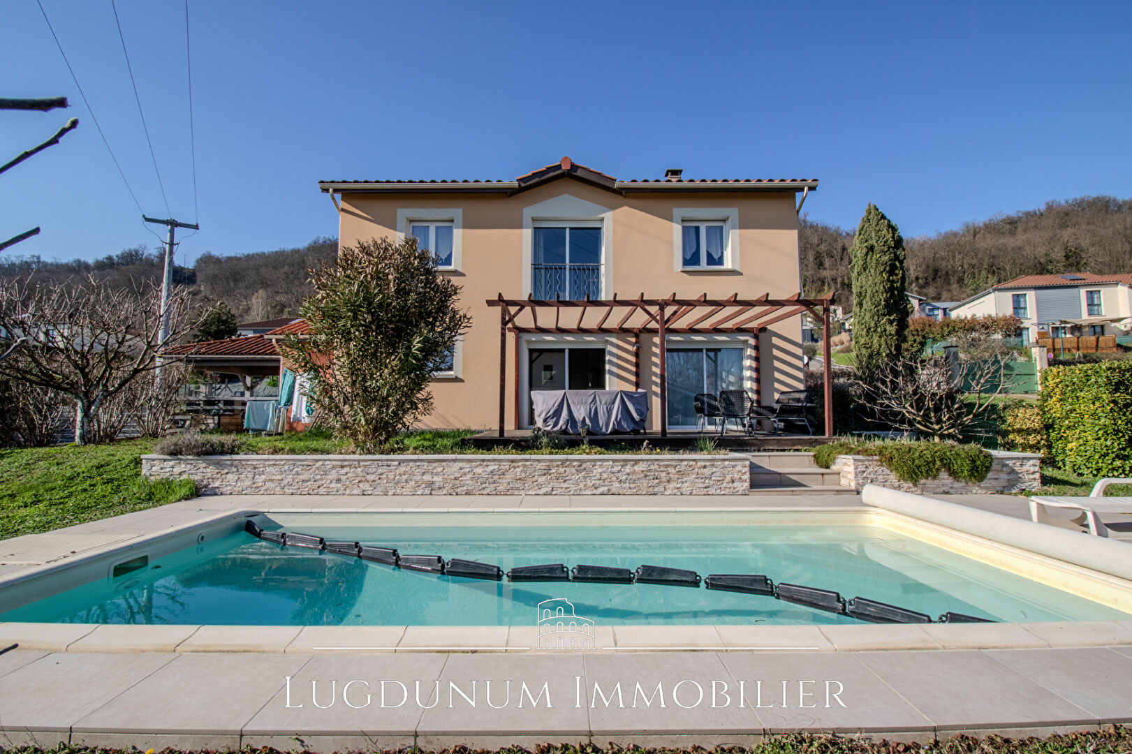 Lugdunum Immobilier vous présente en exclusivité cette propriété situé Rue Victor Hugo sur la commune de Miribel. Cette maison récente de 2010 est idéalement situé dans un environnement calme et verduré. Ce bien dispose d'une surface totale de 140 M2 habitable et très bien aménagée avec son grand salon / cuisine ouvert sur le jardin et sa magnifique piscine. Elle est composée de 5 chambres de belle taille avec rangements, d'une salle d'eau et d'un grande salle de bains composée d'une baignoire et d'une douche. Concernant la qualité de vie au sein de cette maison, elle est optimale grâce aux nombreux éléments tels que la climatisation réversible, le poêle à bois et son chauffe-eau thermodynamique. Ces éléments permettent une très faible consommation ( DPE B). De plus, des panneaux solaires ont été installés. Parcelle totale est de 800 M2. Pour toute information, merci de me contacter au 06.x20.x98.x20.x92 ou par mail via l'annonce.