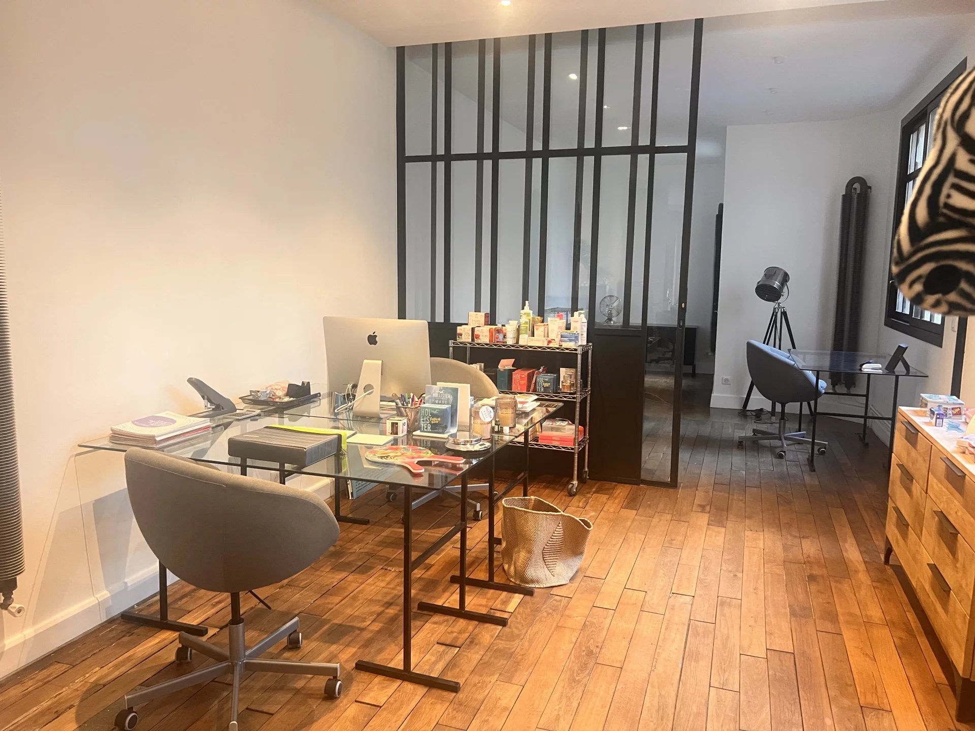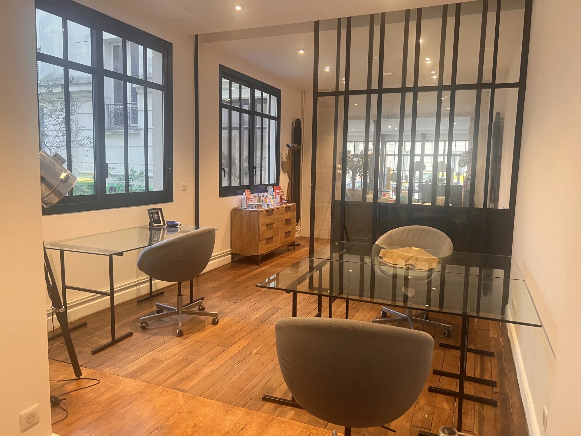 PARIS 19E AU PIED DU PARC DES BUTTES 15 POSTES DE BUREAUX DANS UN BEL ESPACE AVEC DOUBLE ACCES TRAVERSANT POSSIBILITE DE LOUER DE 2 15 POSTES DE TRAVAIL SELON LES AMENAGEMENTS.BEAU VOLUME AVEC HAUTEUR SOUS PLAFOND. AU SOUS SOL A PARTAGER UN ESPACE RÉUNION AVEC WC SALLE DE DOUCHE ET CUISINE METRO BOLIVAR LIGNE 7B - COLONEL FABIEN LIGNE 2 BUS 75 - 48 CHAUFFAGE INDIVIDUEL GAZ