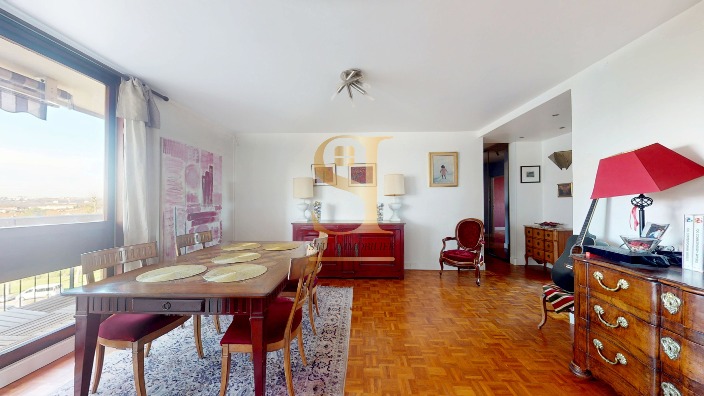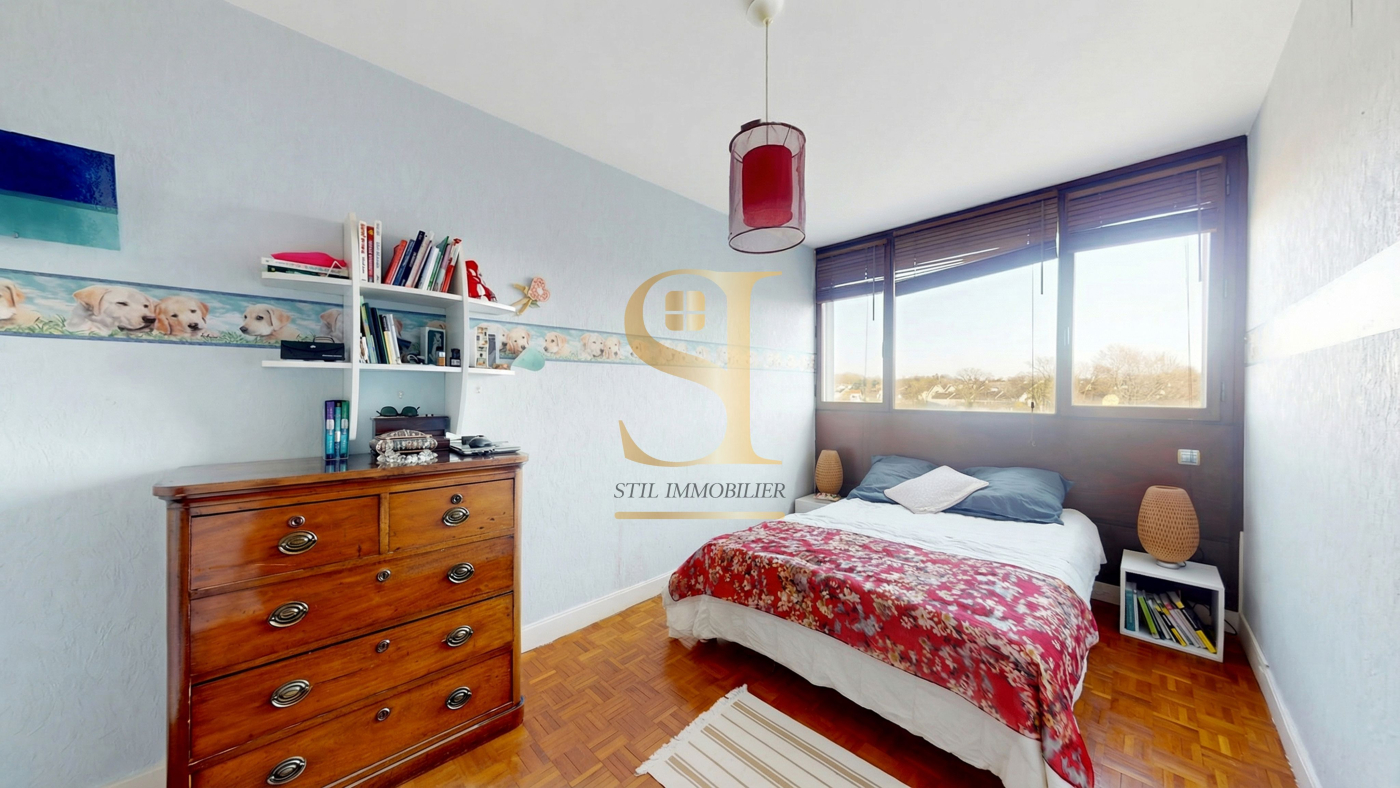 Il se compose d'une entrée avec placard, d'un double séjour de 29 m² donnant sur un balcon filant avec vue arborée, de trois chambres avec rangements, d'une cuisine indépendante avec séchoir attenant, d'une salle de bain et de toilettes séparés avec douche.