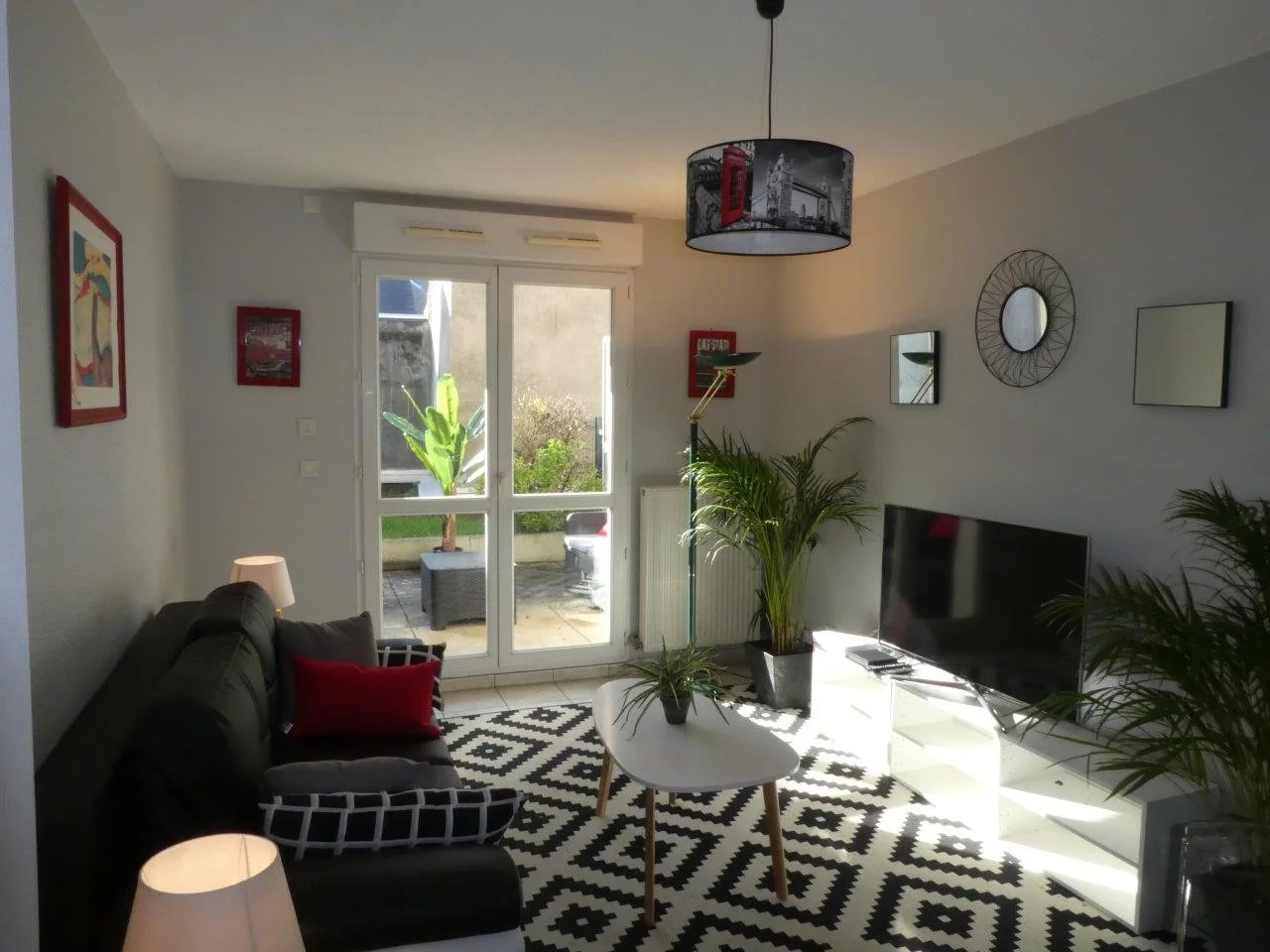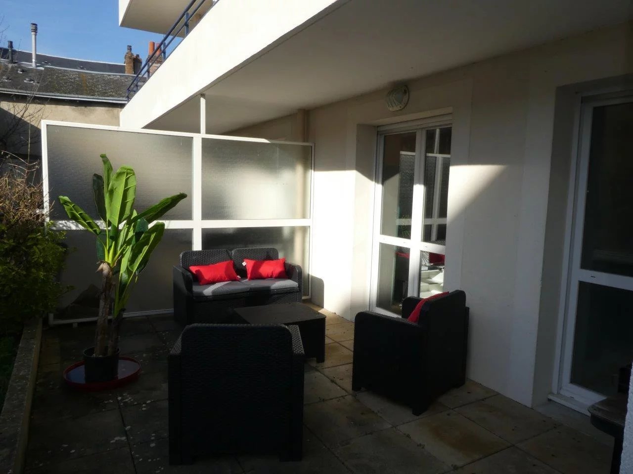 Très Rare ! Dans l'hyper centre, à proximité immédiate de la place du Martroi, superbe T2 meublé exposé sud comprenant : Entrée séparée, séjour donnant sur une terrasse et jardin privatif, cuisine aménagée et équipée, dégagement avec placard, 1 chambre avec son accès à la terrasse, salle de bains, wc séparé. Le tout parfaitement bien équipé. Chauffage individuel gaz. Emplacement de parking privatif dans la résidence. Les informations sur les risques auxquels ce bien est exposé sont disponibles sur le site Géorisques : www.georisques.gouv.fr