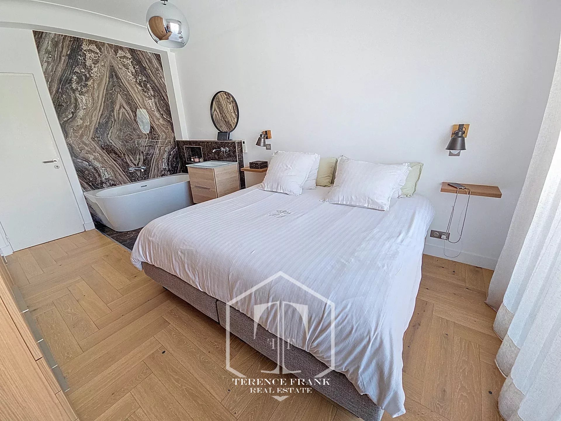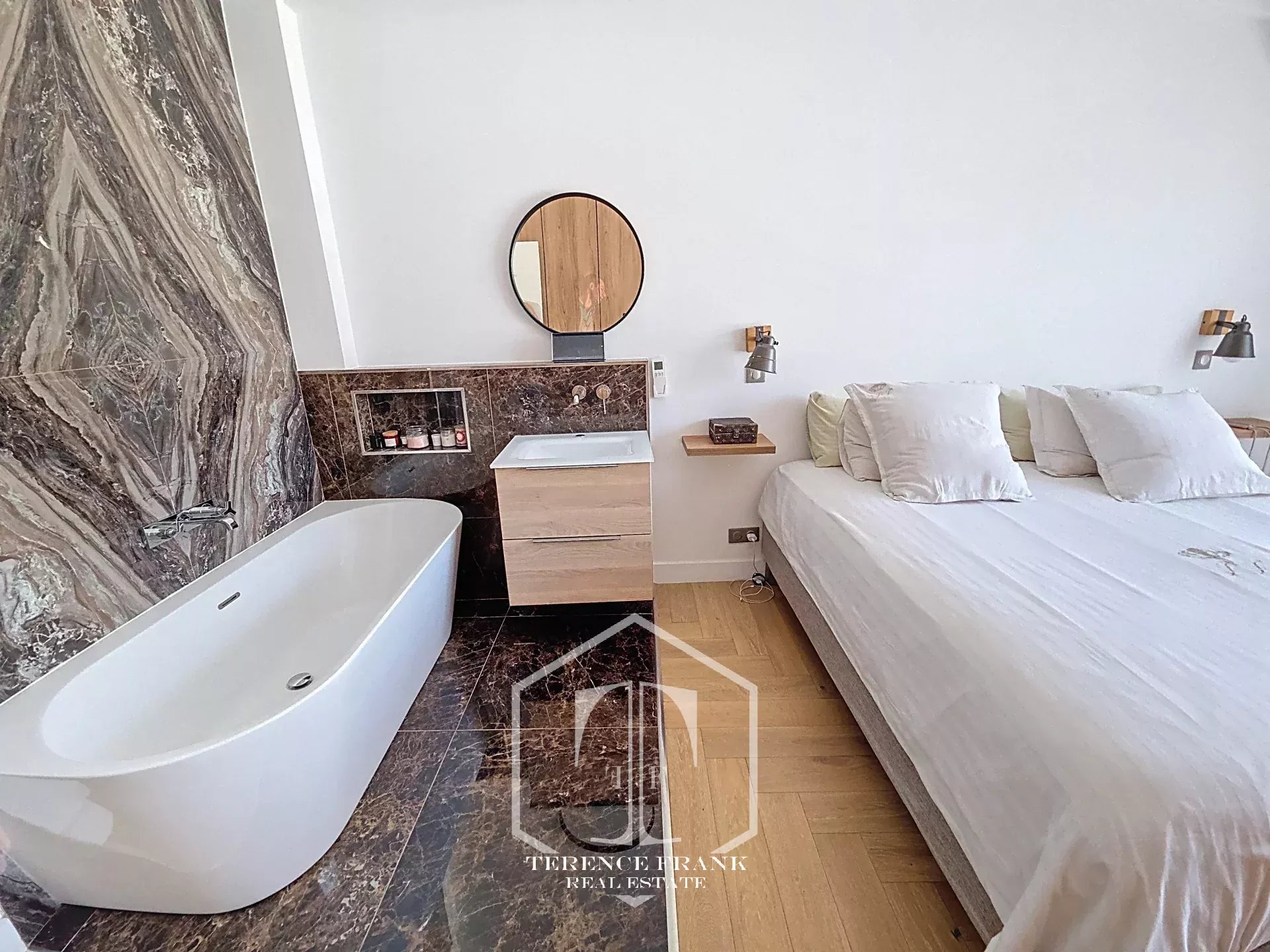 Récemment rénové avec des prestations raffinées, le bien séduit par la qualité de ses matériaux, ses finitions soignées et son atmosphère élégante. La grande chambre parentale de 16m² est conçue en suite avec sa propre salle de bain.