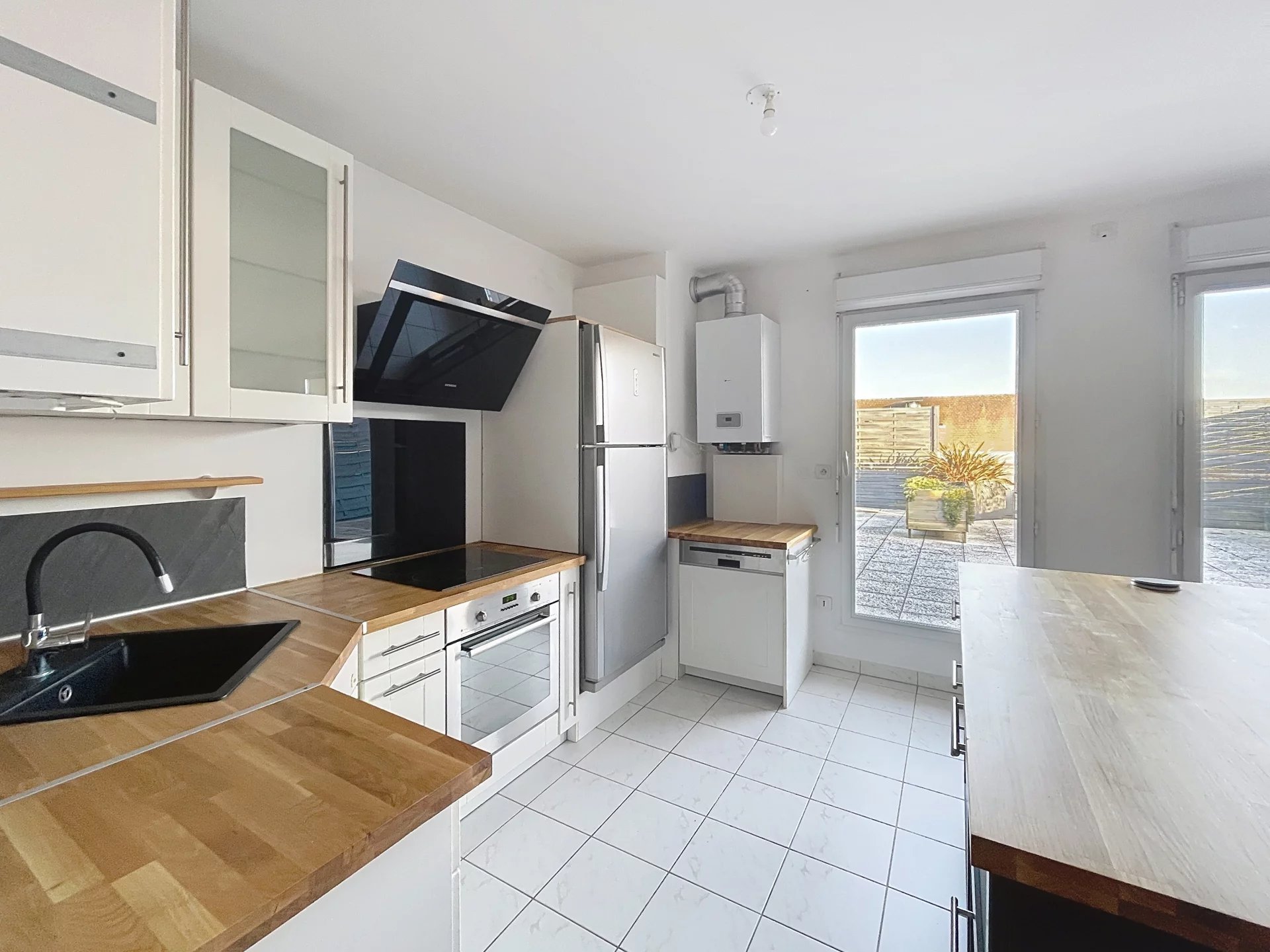 Dans une résidence agréable, venez découvrir ce magnifique appartement en dernier étage. Son atout premier une terrasse de plus de 90 m² idéal pour recevoir famille, amis ou tout simplement en profiter seul. Cet appartement au dernier étage avec ascenseur est composé : d'une entrée avec un rangement et un WC séparé, une pièce de vie avec séjour et cuisine équipée ouverte, le tout donnant sur la grande terrasse, un dégagement dessert une salle de bains avec emplacement pour rangement ou machines, 3 chambres dont une suite parentale avec grand rangement et une salle douche. Vous profiterez aussi au sous-sol d'une cave et 2 places de parkings privatives. La présente annonce immobilière vise 4 lots situés dans une copropriété formant 392 lots au total ne faisant l'objet d'aucune procédure en cours et d'un montant de charges d'environ 230 euros par mois (soit 2760 euros annuel) déclaré par le vendeur. Information d'affichage énergétique sur ce bien : classe ENERGIE C indice 128 et classe CLIMAT C indice 25. Montant estimé des dépenses annuelles d'énergie pour un usage standard : entre 1100 € et 1540 € par an. Prix moyens des énergies indexés sur l'année 2021 (abonnements compris). Les informations sur les risques auxquels ce bien est exposé sont disponibles sur le site Géorisques http://www.georisques.gouv.fr