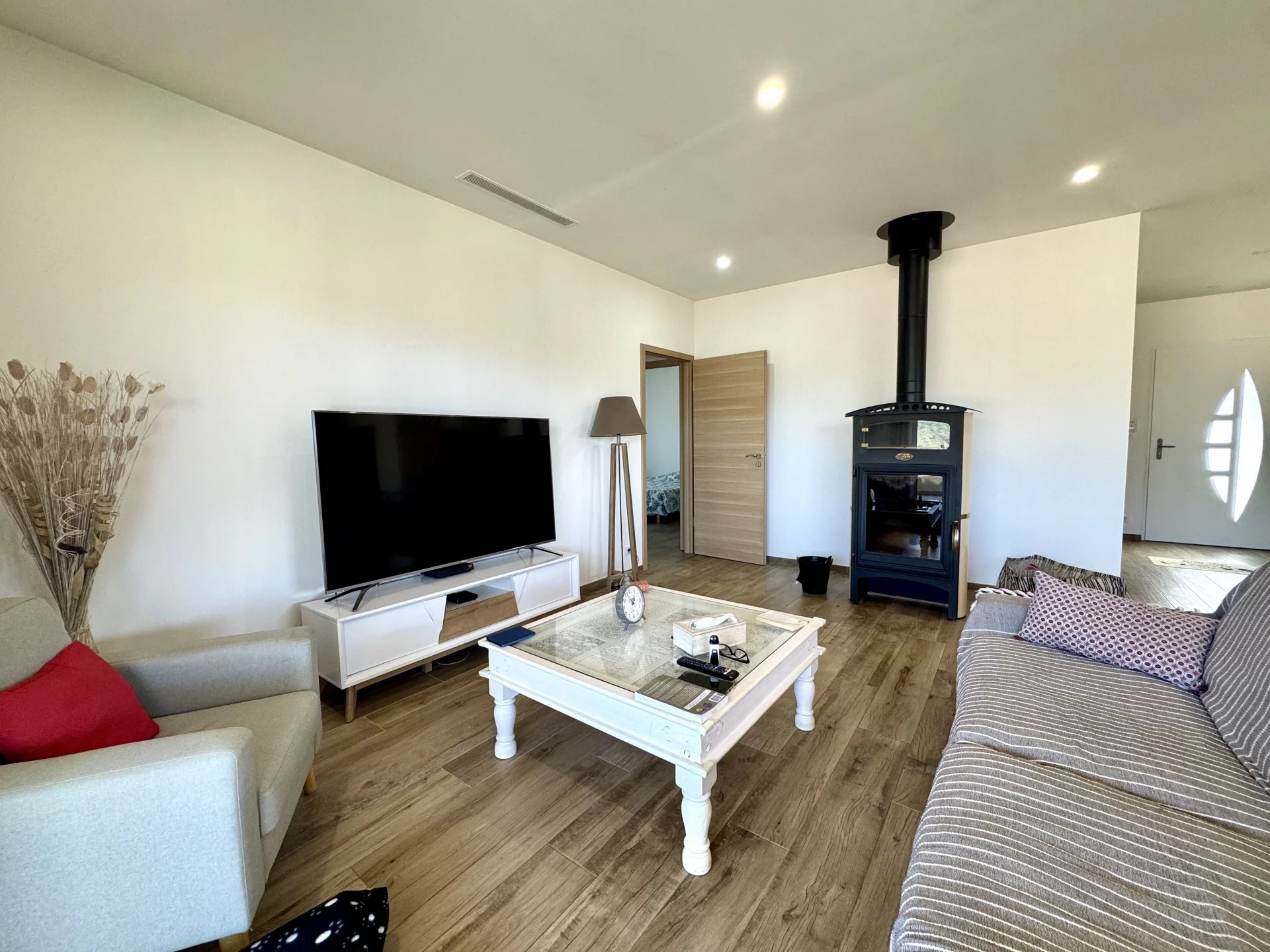 La maison profite d'une vue dégagée sur la campagne environnante, renforçant la sensation d'espace et de calme.