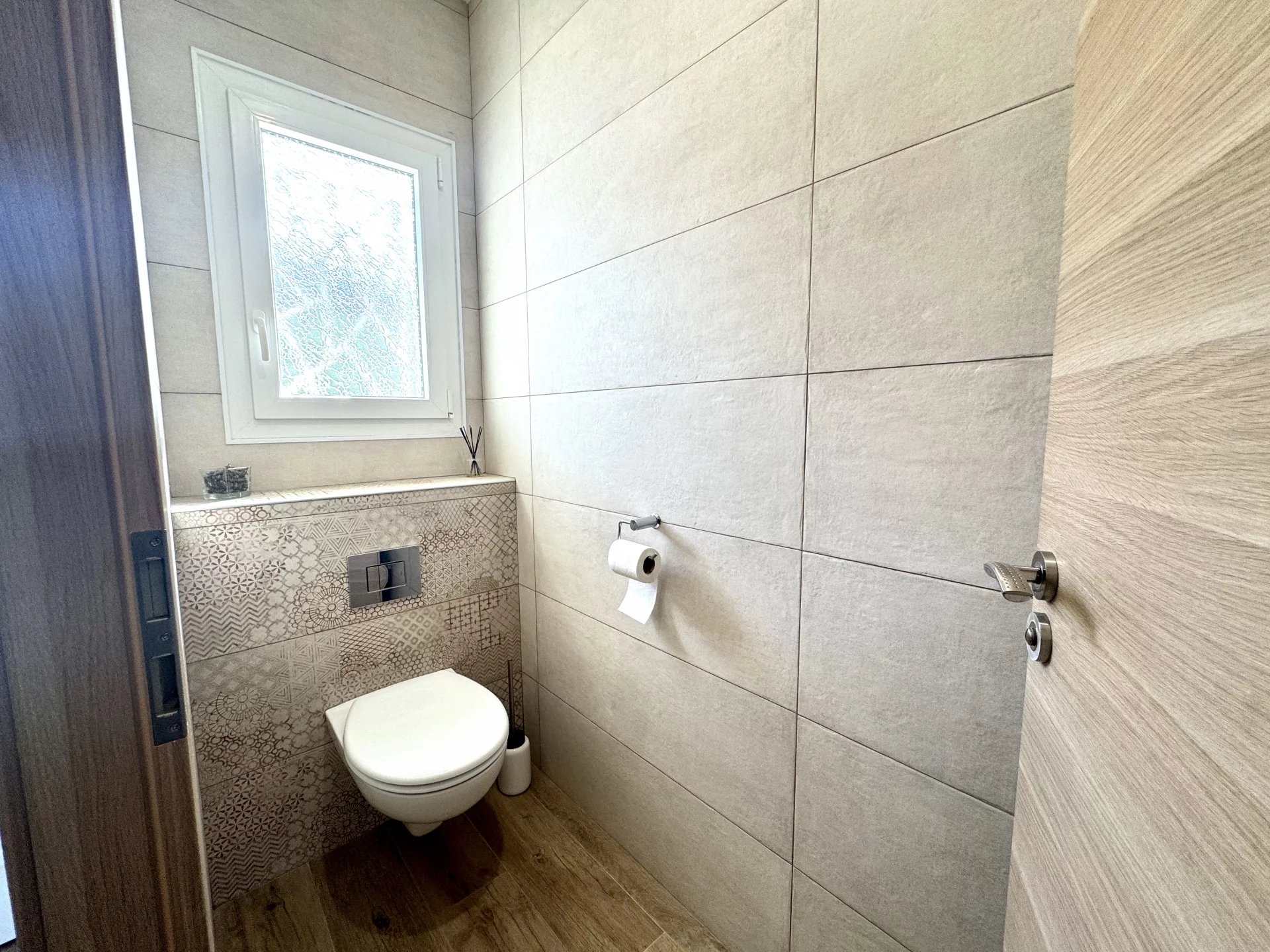De construction récente, elle développe une superficie habitable de 131 m², et se compose de deux appartements indépendants :