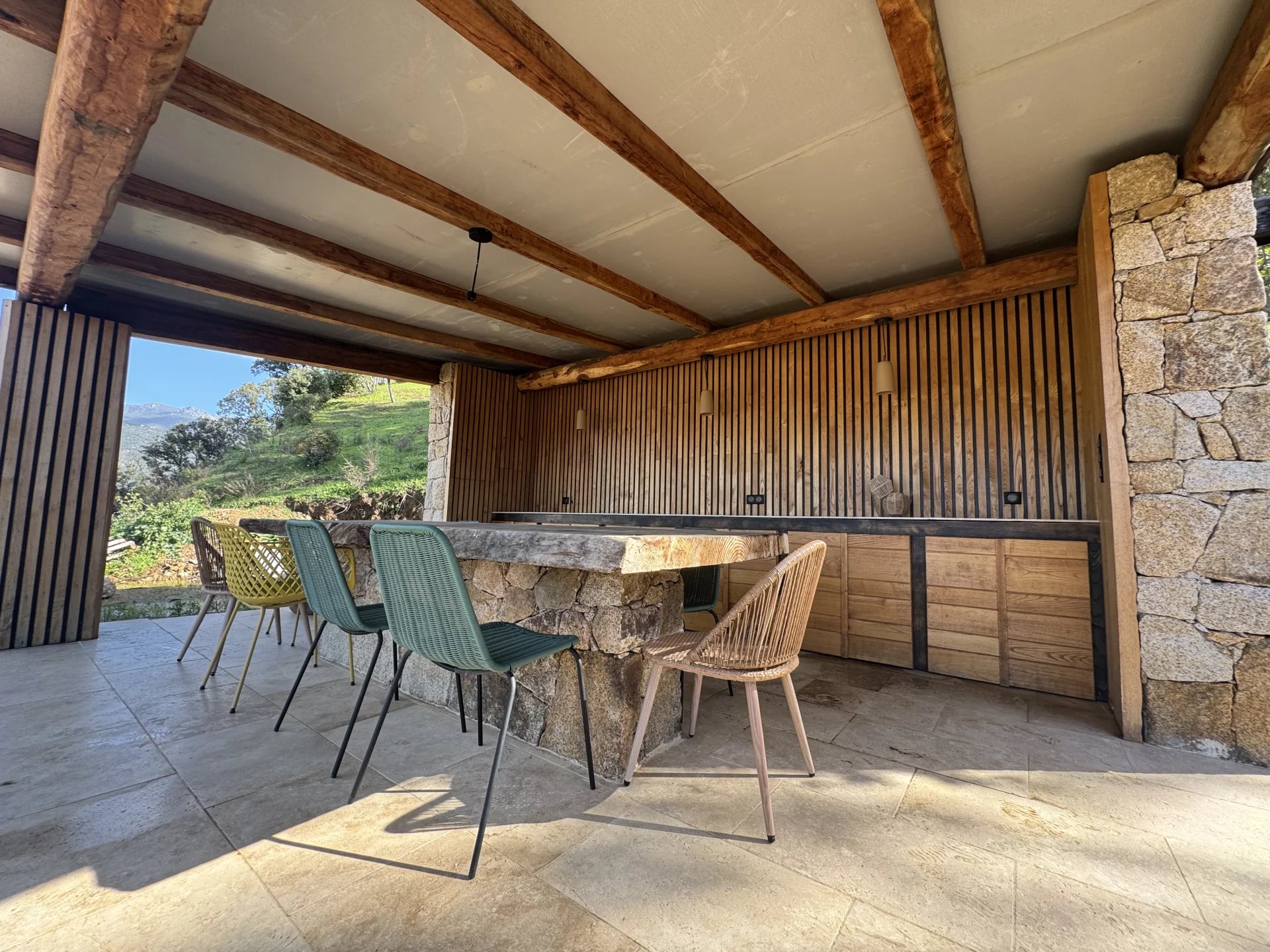 Dans l’un des secteurs les plus recherchés de l’Alta Rocca, au cœur d’un environnement naturel d’exception, cette villa récente en pierre sèche incarne l’élégance corse dans sa version la plus contemporaine.