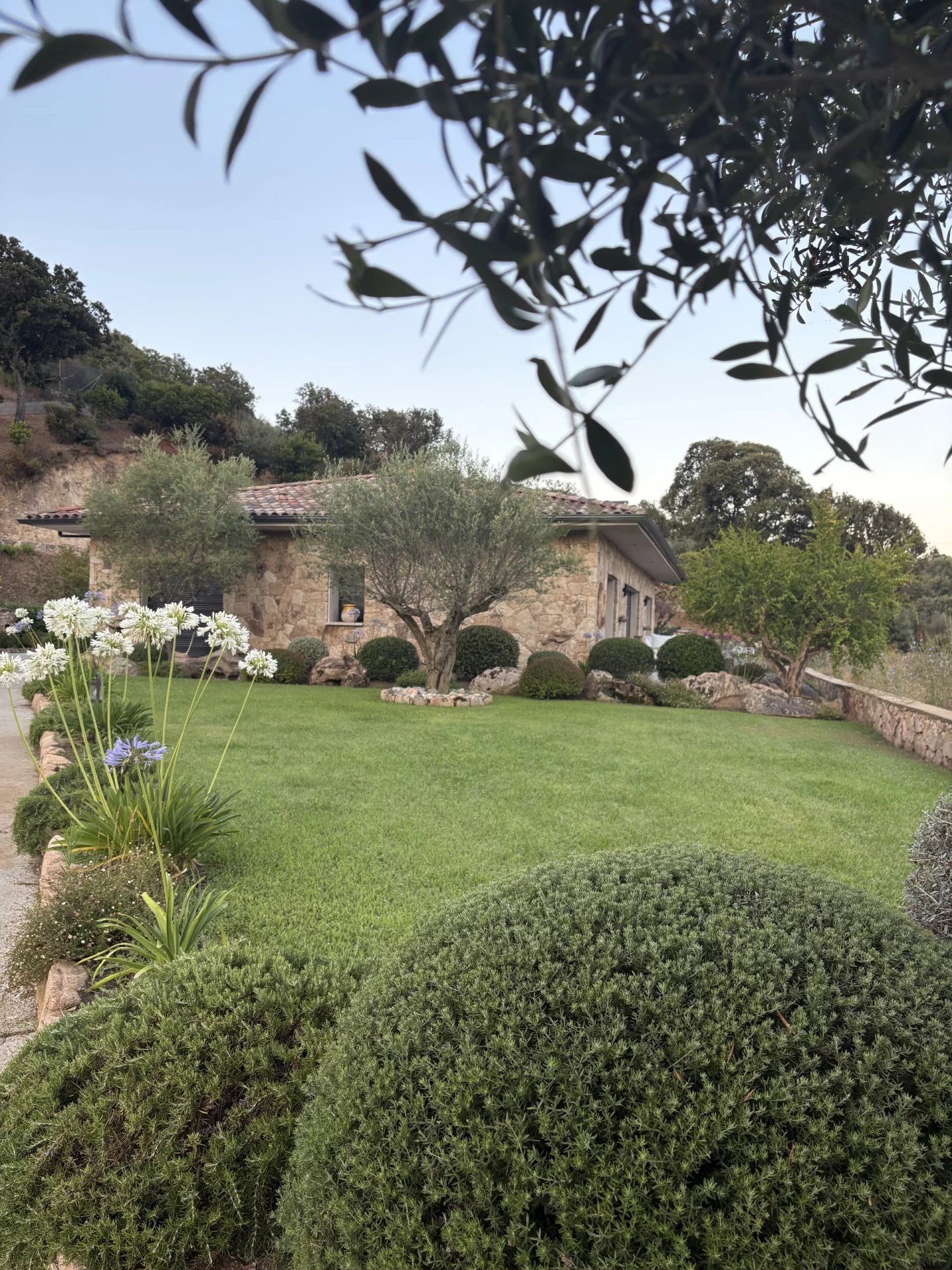 Terrain paysager, oliviers, végétation méditerranéenne, calme absolu.