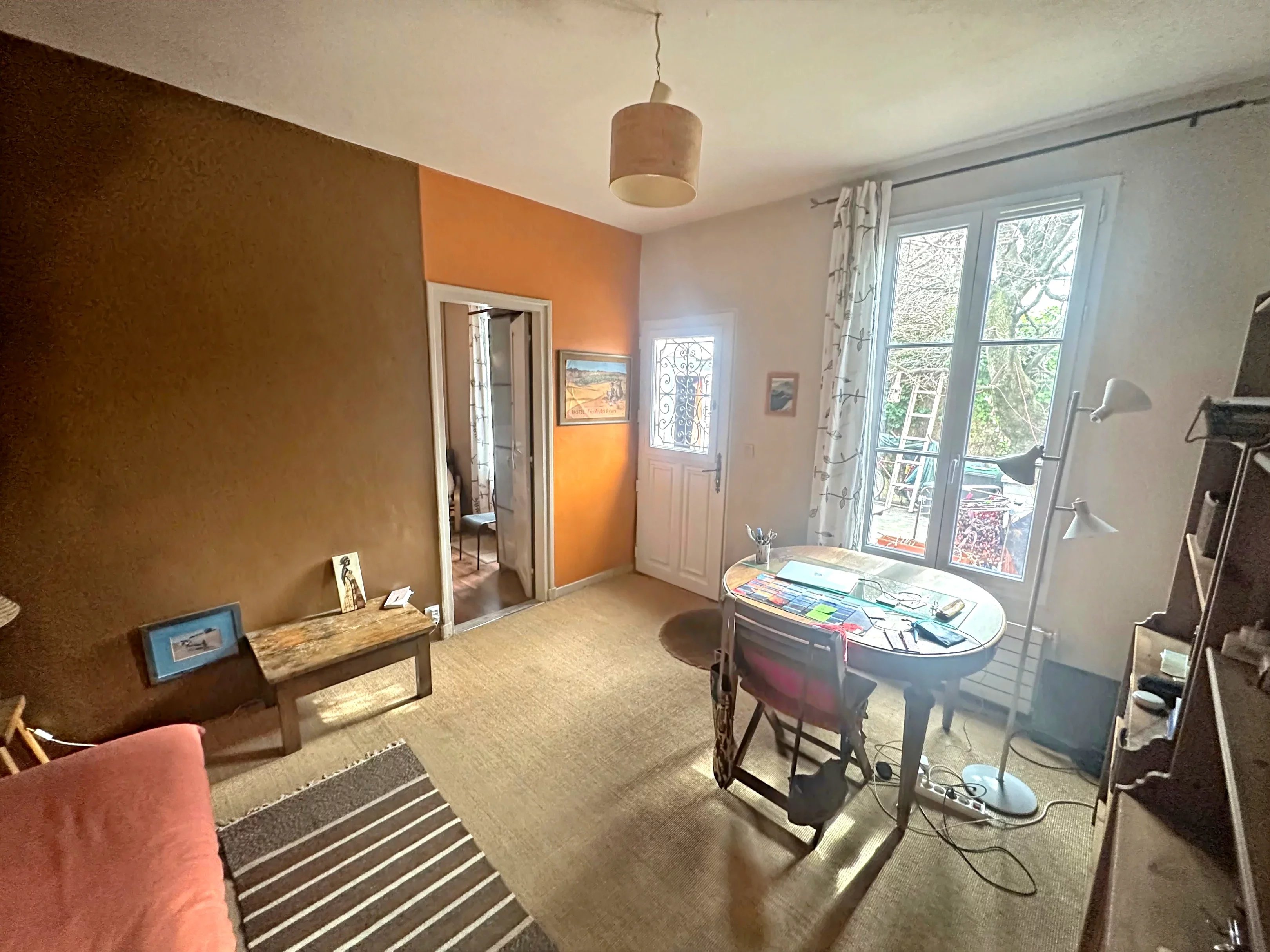 A 2 minutes à pieds du Centre commerciale de la Vache Noire, et 5 minutes du RER B, Maison de 101m² + un atelier de 60m² avec 4.20m d'hauteur sous plafond. La maison se compose d'une entrée, séjour, salon, cuisine aménagée, 2 chambres (dont une en enfilade avec accès direct à la cour), salle d'eau avec wc. A l'étage : 2 chambres en enfilade, wc, grenier. Cave, une chaufferie avec wc et une cour centrale avec possibilité de parking camion. Bien atypique avec plusieurs options d'aménagement. Très rare !