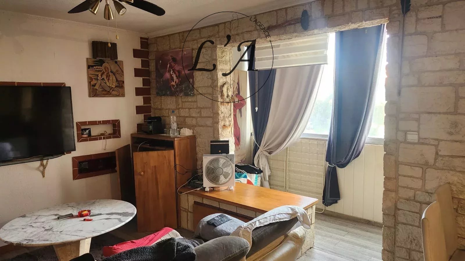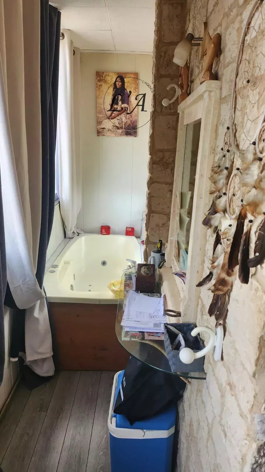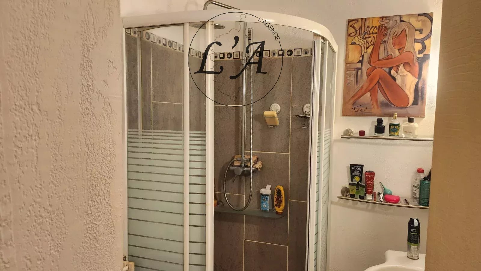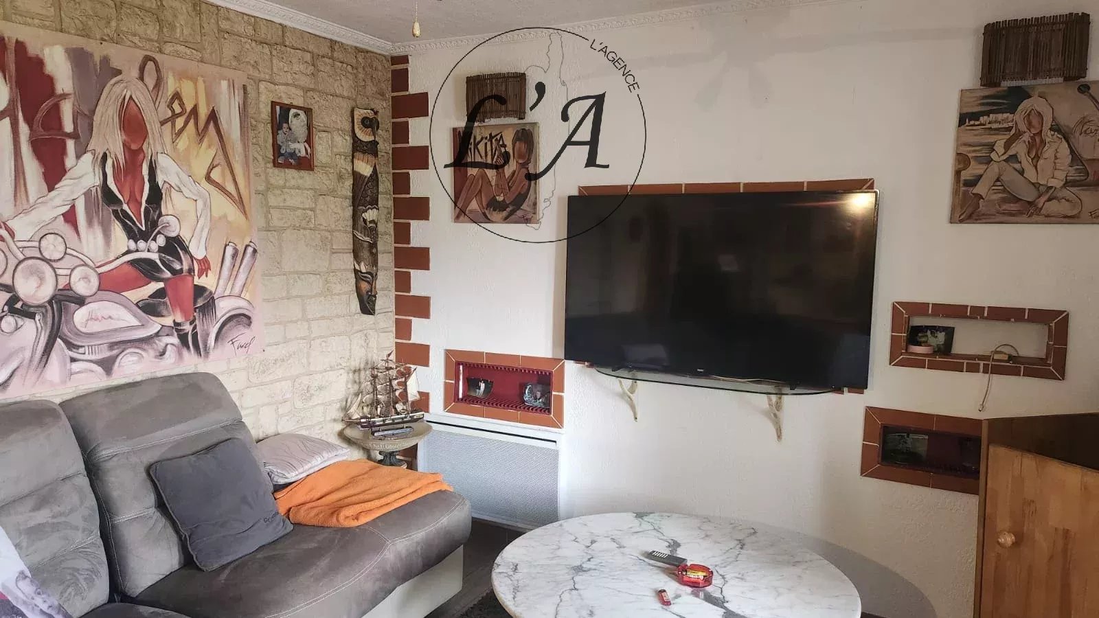 L’appartement se compose d’une entrée avec placards, d’un séjour avec cuisine américaine équipée, d’une chambre avec nombreux rangements intégrés et d’une salle de douches avec WC. Le séjour s’ouvre sur une terrasse fermée par baies coulissantes, véritable pièce supplémentaire exploitable toute l’année. Particularité originale et rare : une baignoire balnéo y a été installée, créant un espace détente atypique et surprenant pour un appartement de cette surface. Un atout différenciant qui donne immédiatement du caractère au bien. L’ambiance intérieure, marquée par des parements pierre, offre chaleur et personnalité. L’ensemble est sain et fonctionnel ; une remise au goût du jour permettra simplement d’actualiser les volumes et de révéler tout le potentiel contemporain de l’appartement. Une belle opportunité de valorisation pour un acquéreur souhaitant personnaliser son intérieur sans engager de travaux lourds.