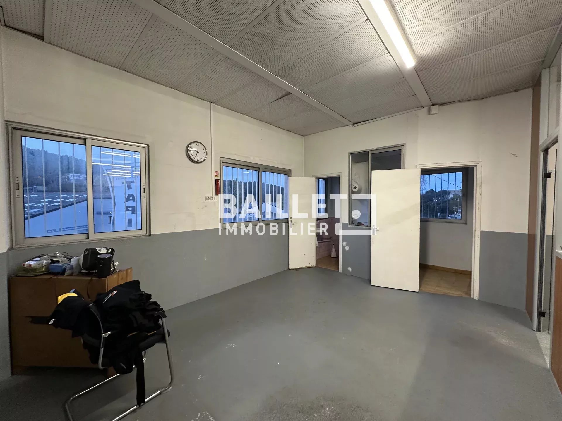 BAILLET IMMOBILIER vous propose à la location, à 5 minutes de la sortie A8 d'Antibes, un local de 78 m² avec zone de déchargement en façade et parkings privés. Accessible de plain-pied, 78 m² accessibles par un rideau métallique plus une porte piéton. À l'intérieur : un bureau, un WC avec lave-mains, une réserve. L'ensemble est très lumineux et en bon état. - Loyer : 1200 € mensuels non soumis à la TVA - Charges : 0 - Taxe foncière : 250 € mensuels - Dépôt de garantie : 3 mois de loyer - Honoraires : 2888 € HT soit 3376 € TTC - Loyer payable par trimestre - Participation à la rédaction du bail soit 825 € HT - BAILLET IMMOBILIER, Louis Baillet, 06 09 06 39 31 Email : louis@baillet.immo