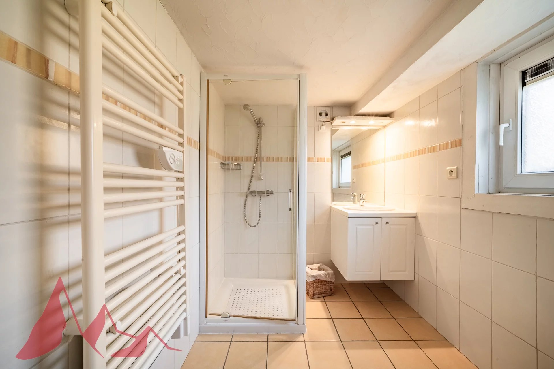 La salle de bains peut être réaménagée pour devenir attenante à la chambre parentale (en suite).